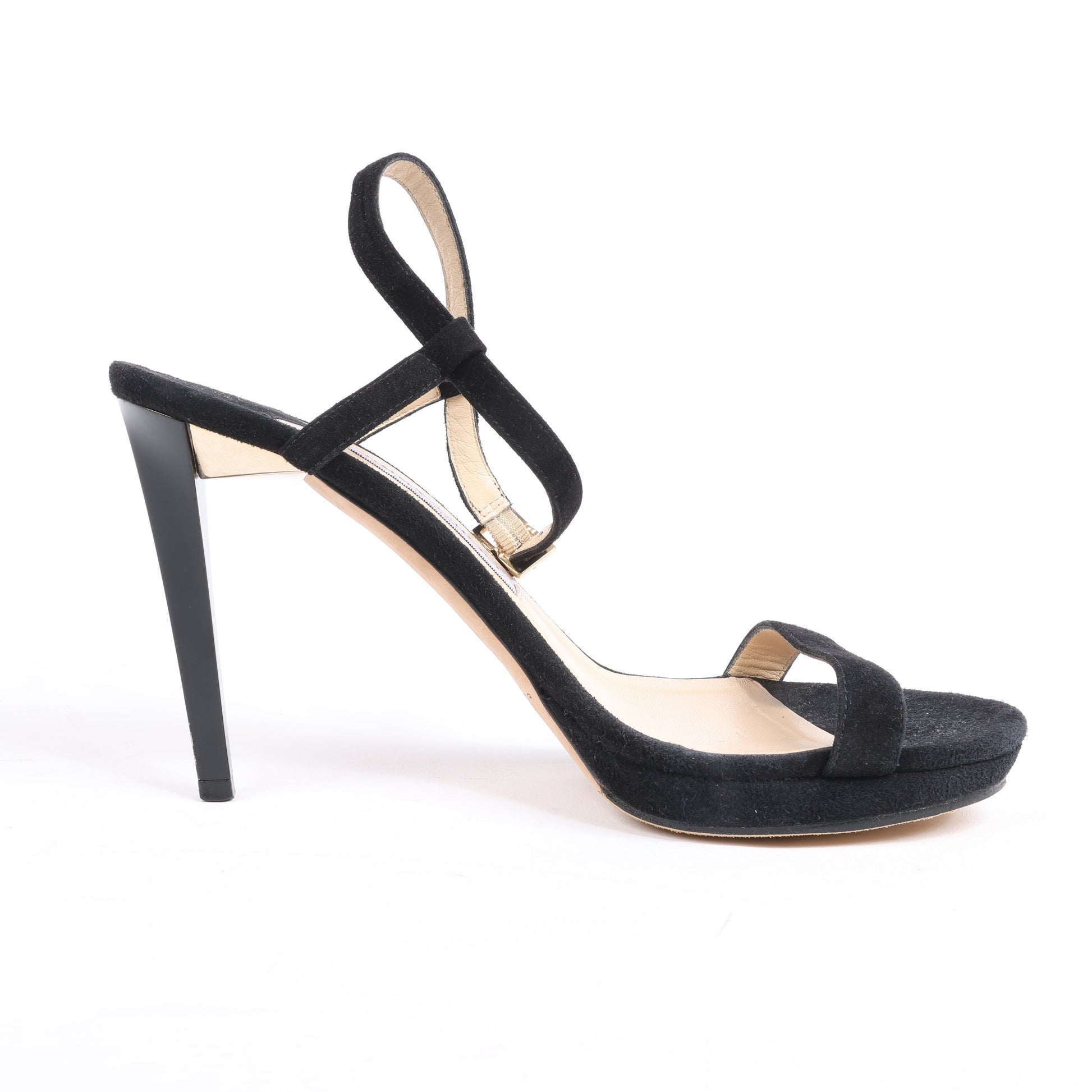 Sandales Jimmy Choo en satin Minny à bride cheville, noires, pointure 38,5