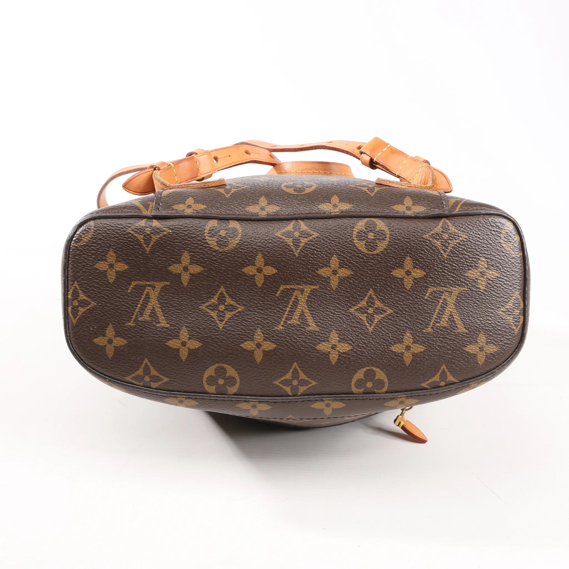 Le sac à dos Louis Vuitton Monsley M43431 en toile Monogram marron allie l'élégance classique à une praticité mains libres, avec des finitions en cuir naturel et un design spacieux et structuré.