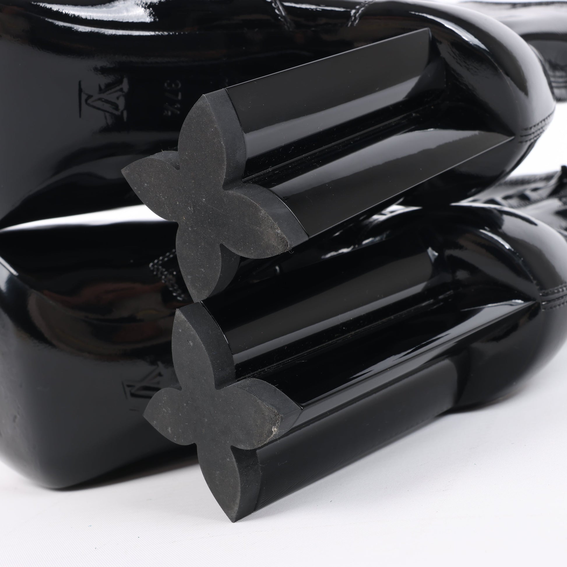 Bottines Louis Vuitton Silhouette Lines en cuir verni noir BR0137, pointure 37,5 EU