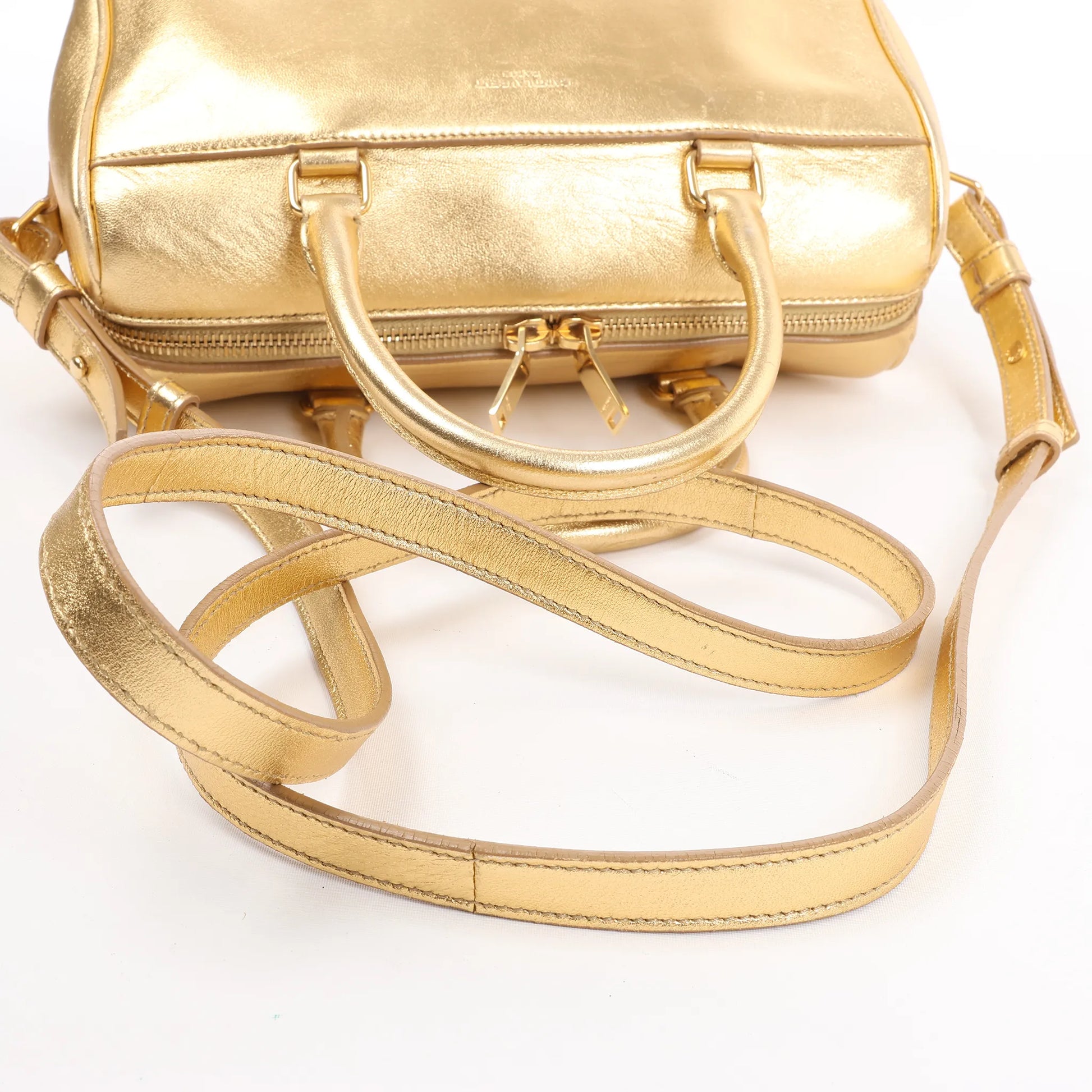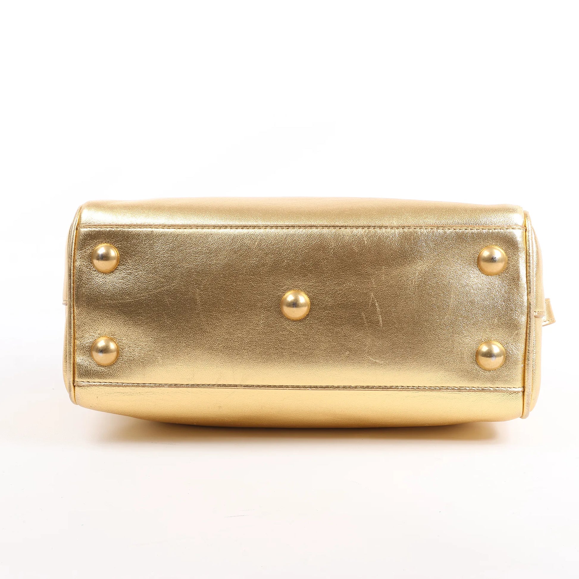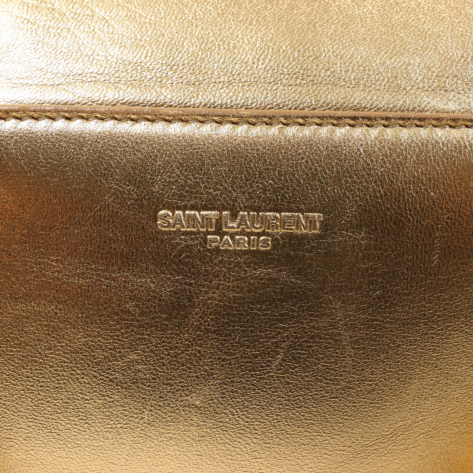 Le sac à main Baby Duffle 2-Way Saint Laurent Paris 330958 en cuir doré métallisé est une pièce glamour et affirmée. Doté de deux anses, d'une bandoulière amovible et d'une silhouette élégante, il est parfait pour un look chic de jour comme de nuit.