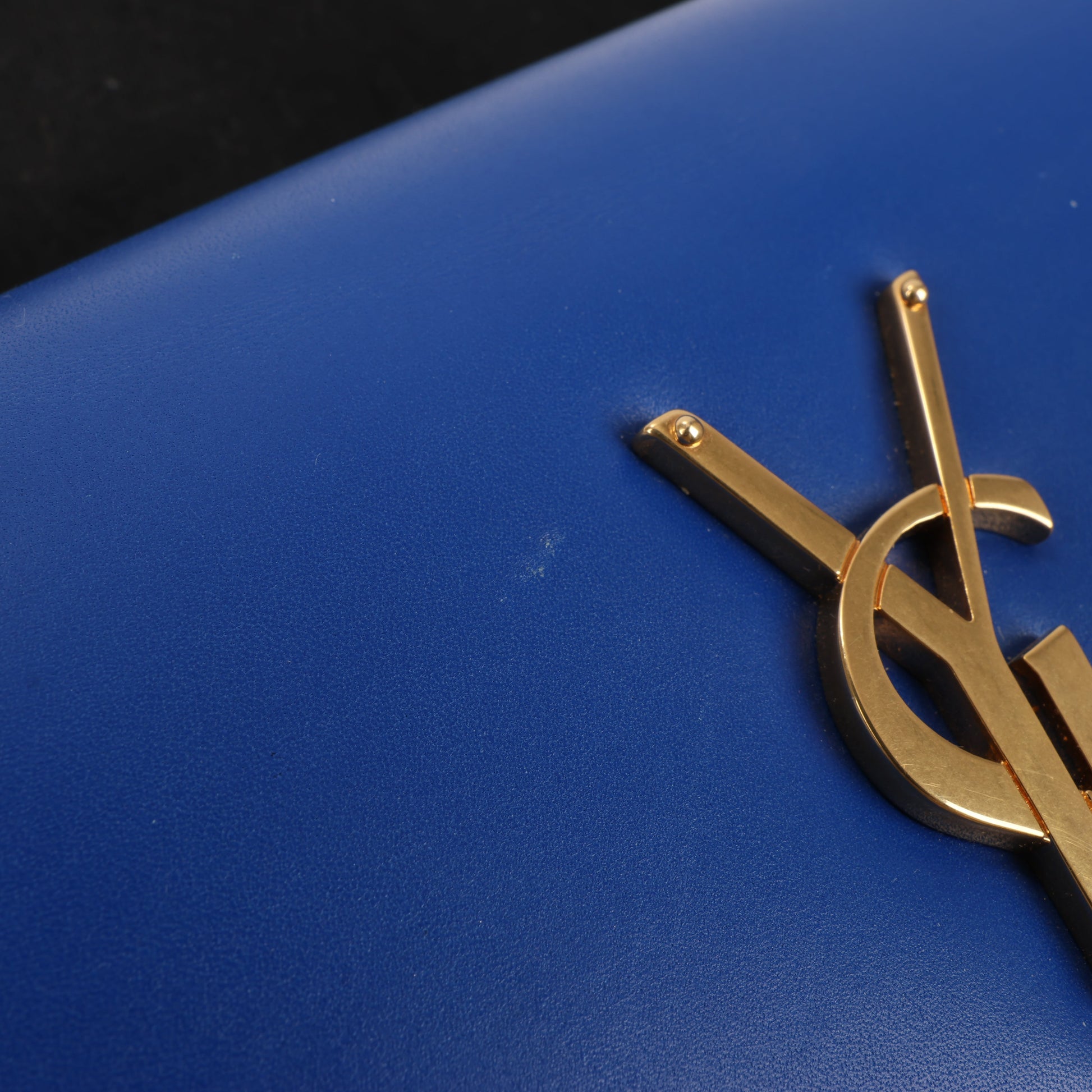 Saint Laurent Paris Pochette Kate Monogramme en cuir lisse bleu Majorelle