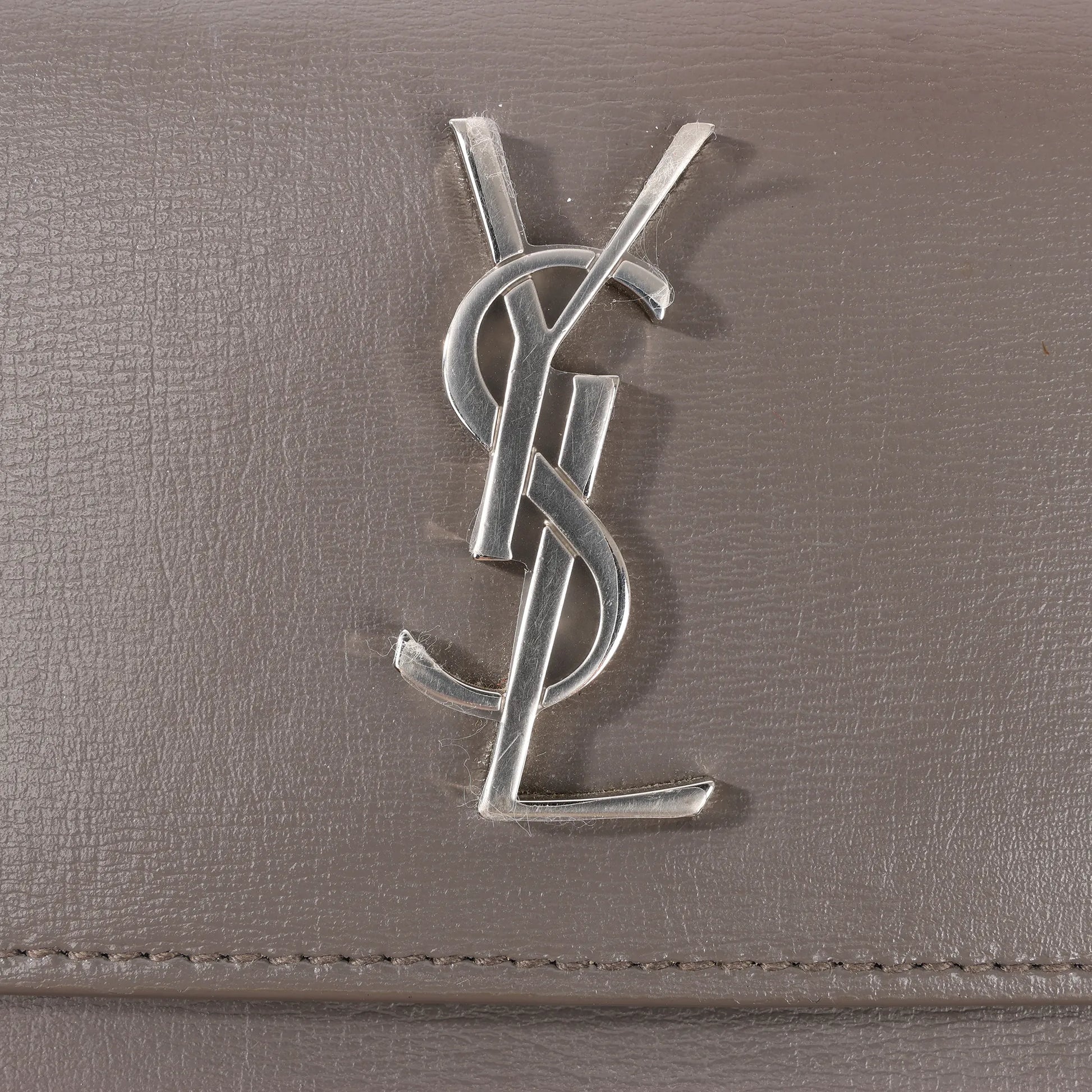 Le sac bandoulière Saint Laurent Paris Sunset Chain en cuir gris (452157) allie élégance moderne et style iconique. Orné du logo YSL signature et d'une chaîne argentée, il est idéal pour toutes les occasions, du matin au soir.