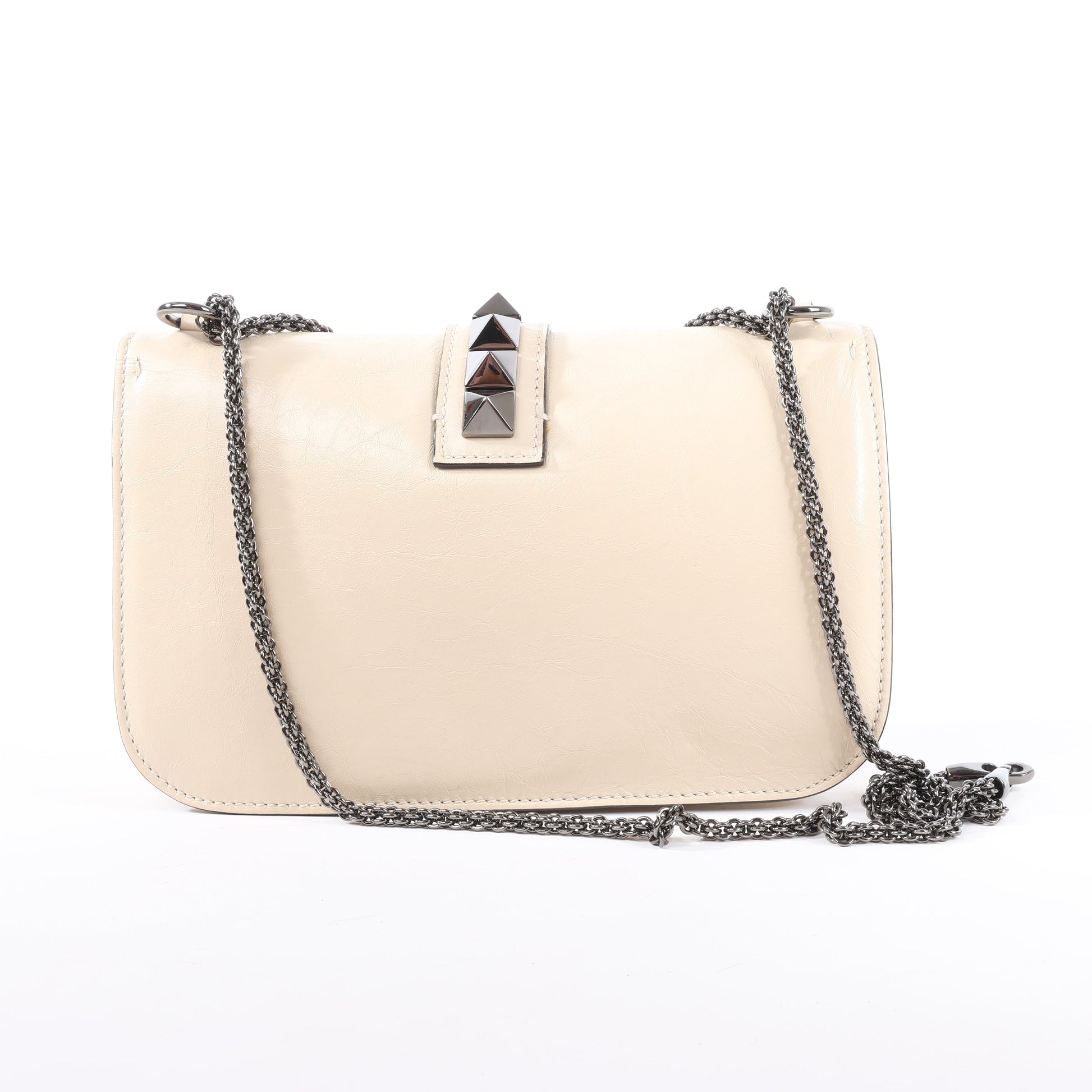 Sac à bandoulière en cuir Valentino Rockstud Glam Lock beige