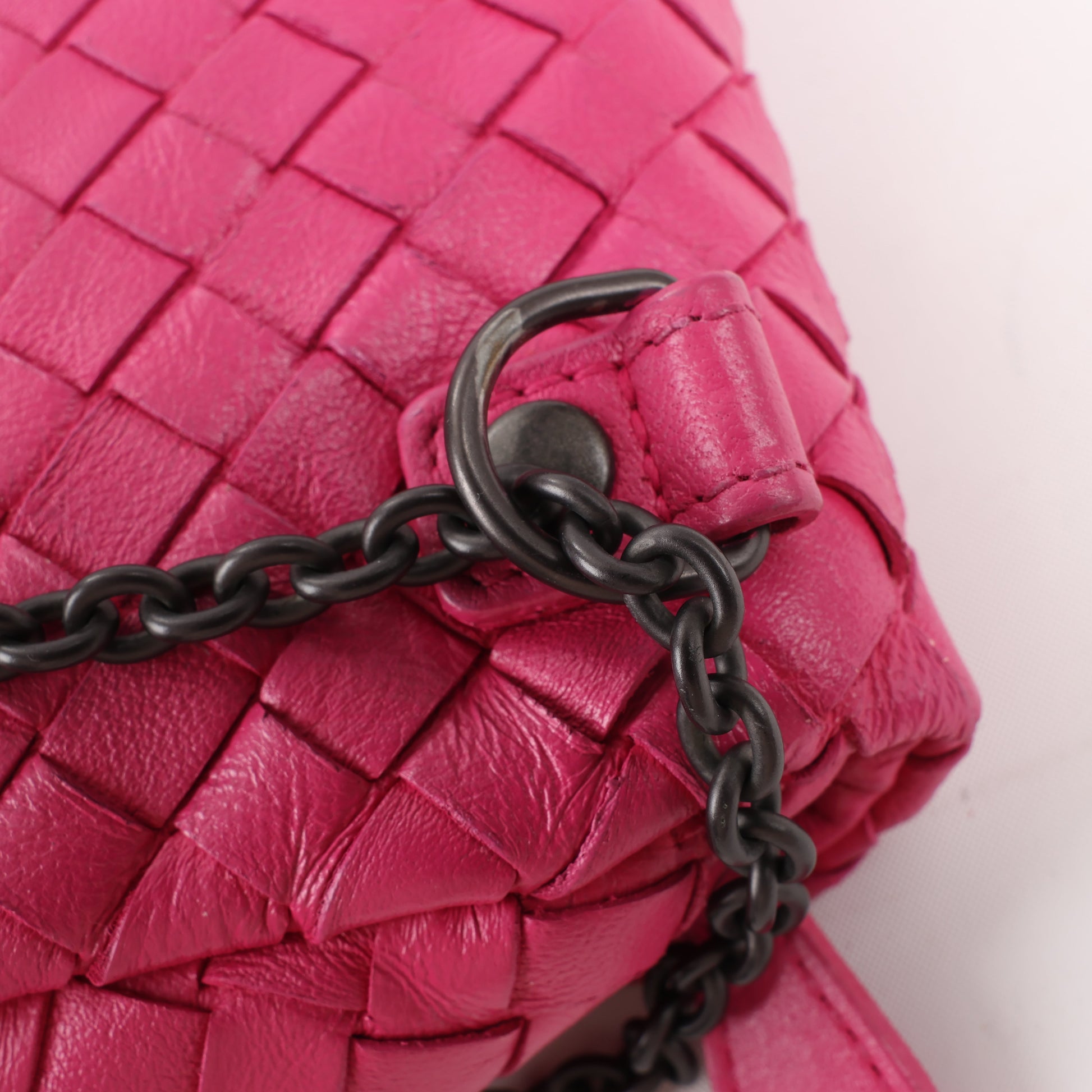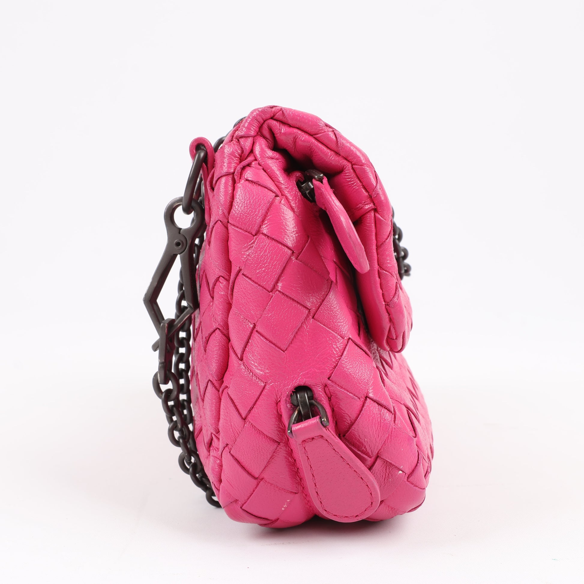 BOTTEGA VENETA Intrecciato Leather Chain Shoulder Bag in Hot Pink