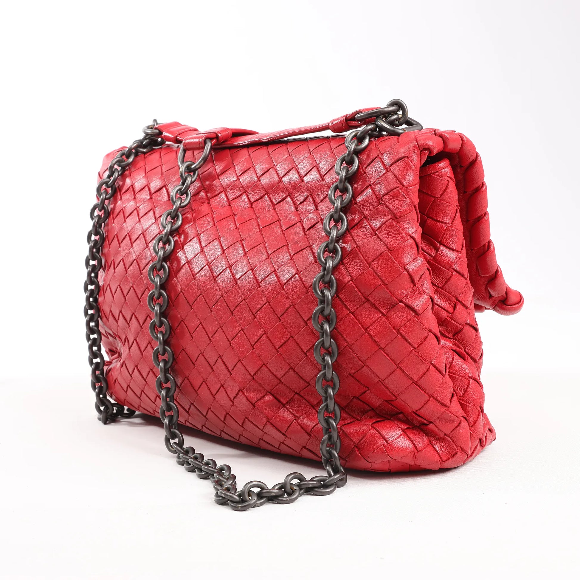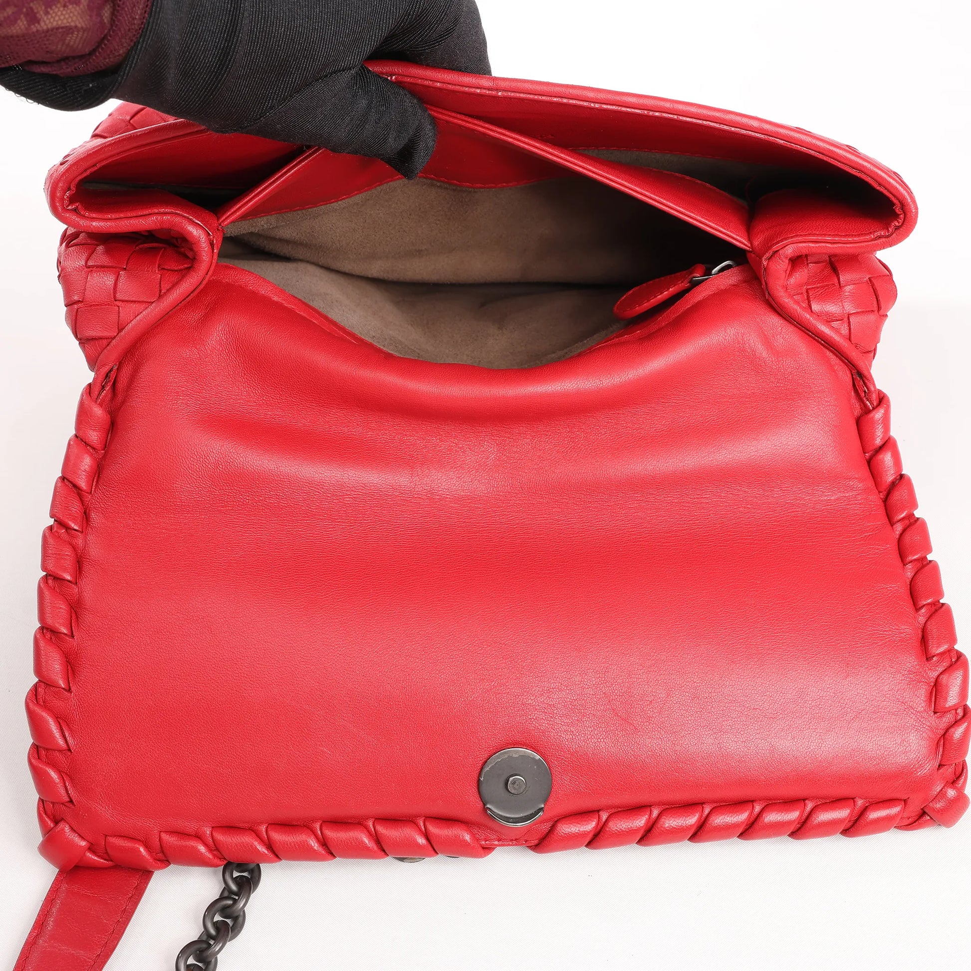 Bottega Veneta Intrecciato Leather Shoulder Bag in Red