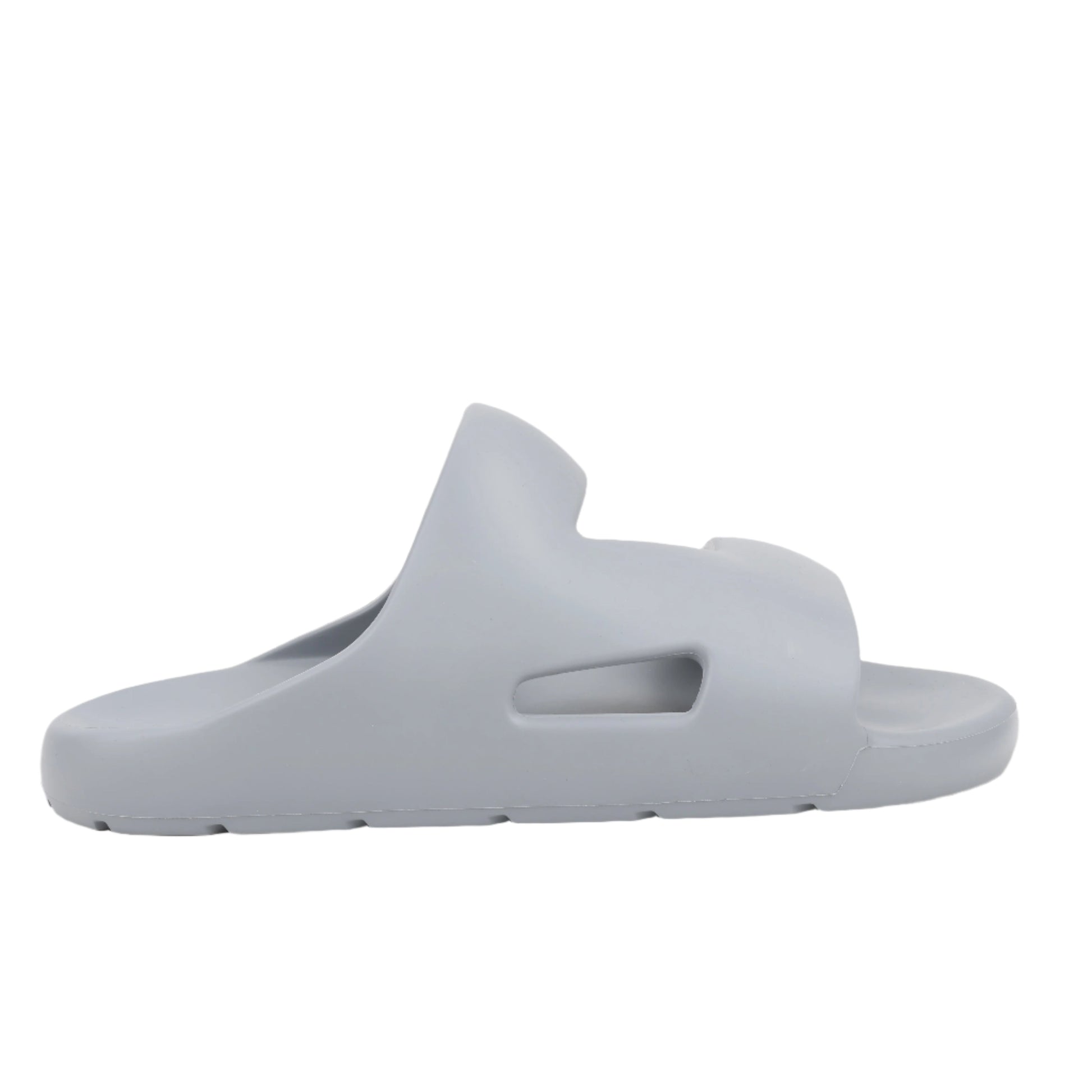 Bottega Veneta Rubber Band sandals in Grey, size 43 EU. Crafted from lightweight rubber, these slip-on sandals feature a bold, modern design with cut-out details for breathability. A stylish and comfortable choice for effortless everyday wear.