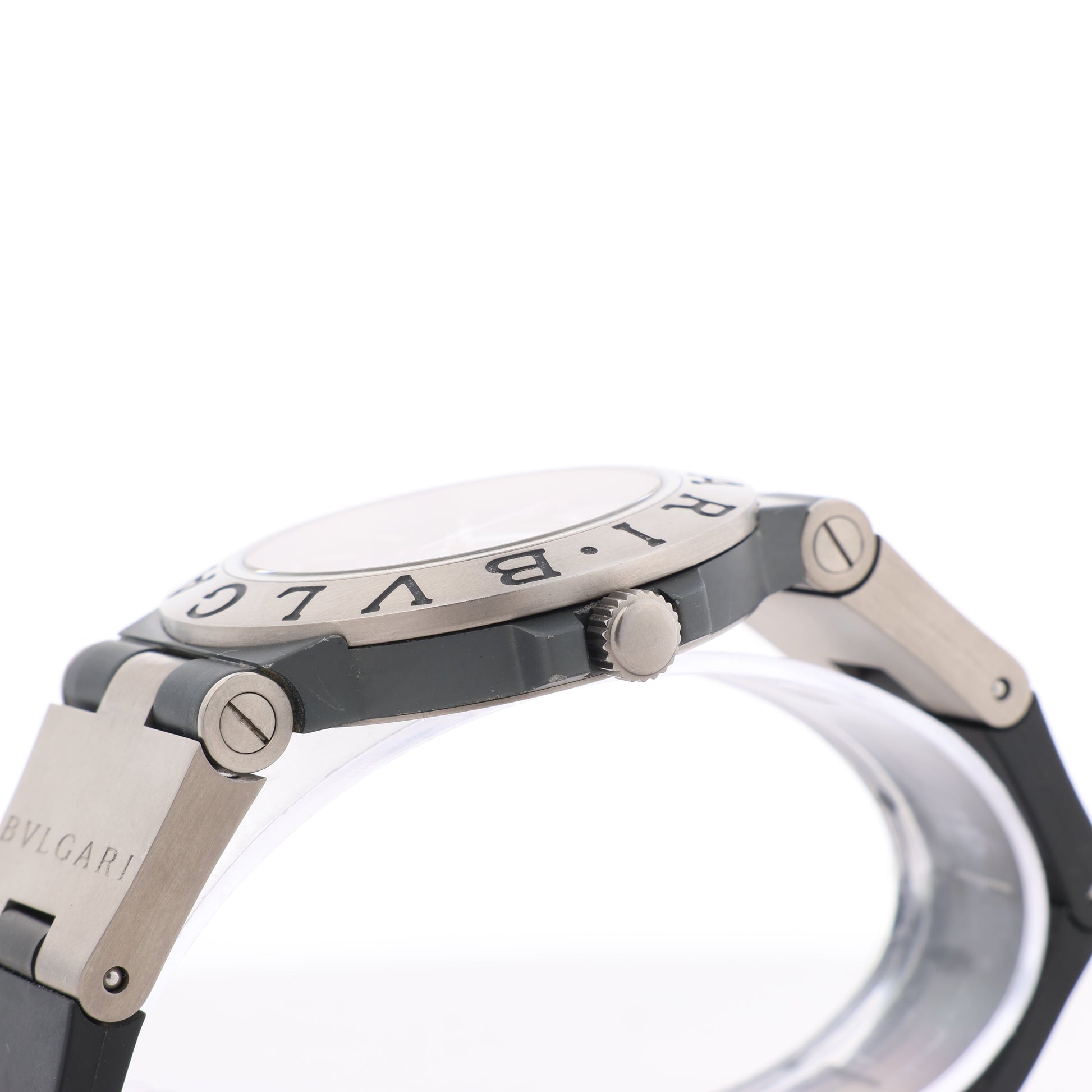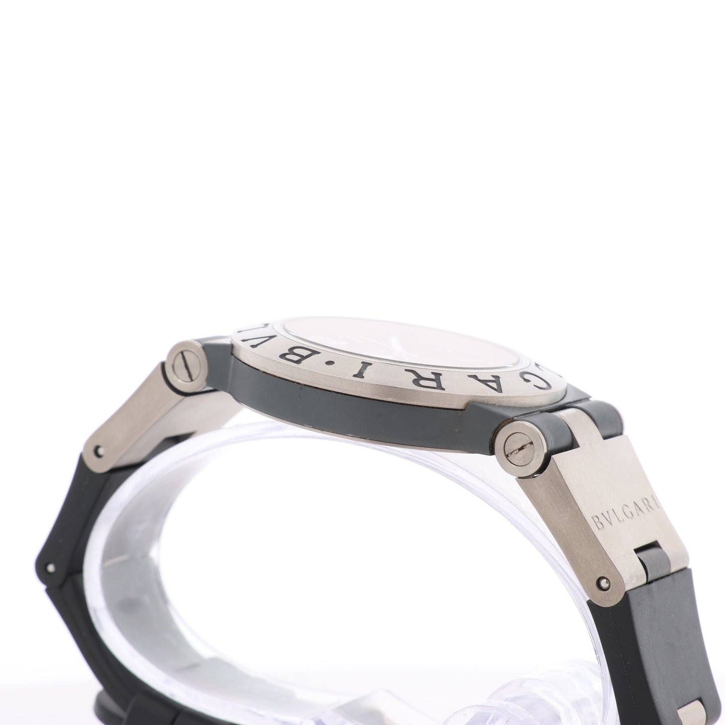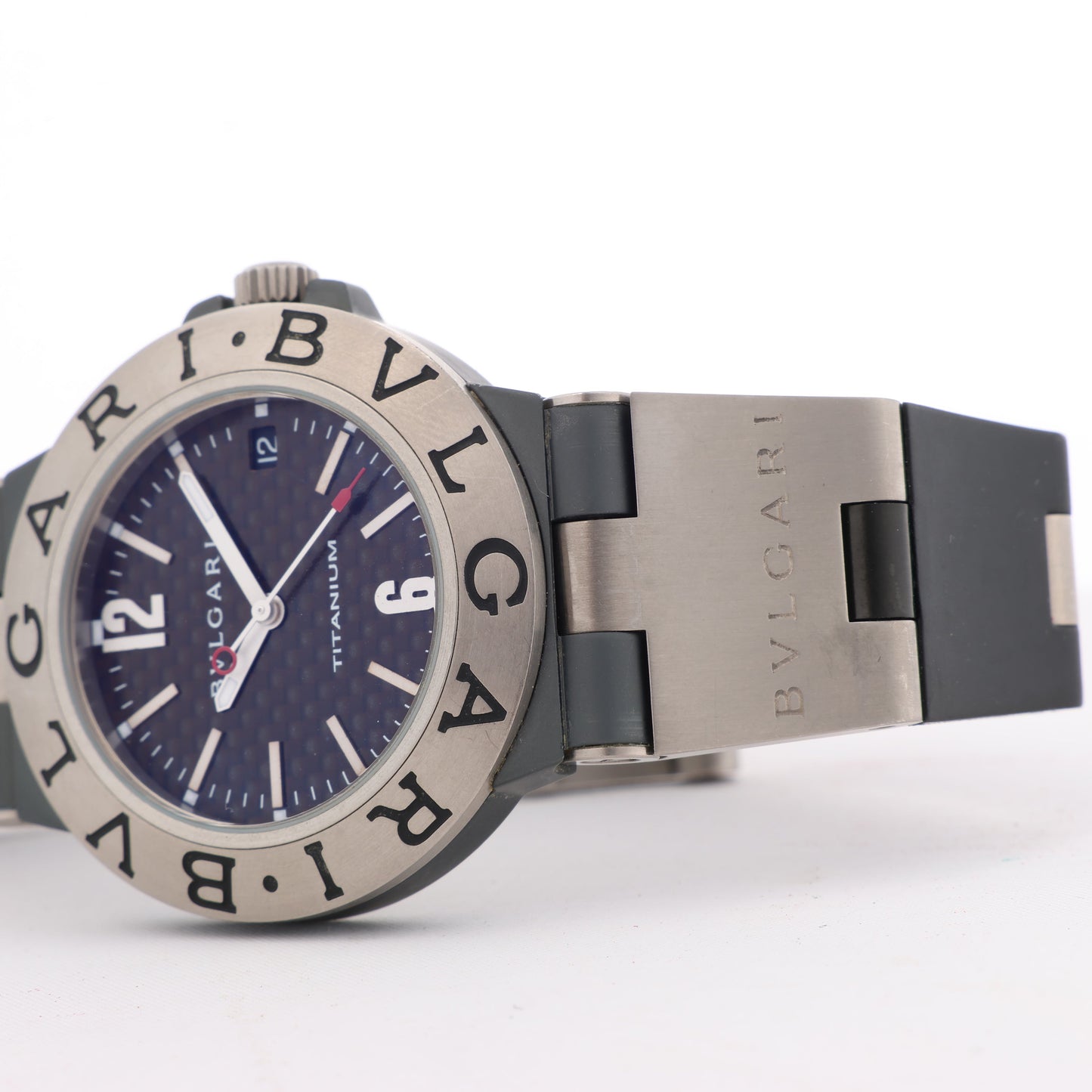 BVLGARI Diagono TI38TA L8213 in titanium and rubber with a rich brown dial. Bold and sporty with signature branding, automatic movement, and date display—precision meets Italian sophistication.