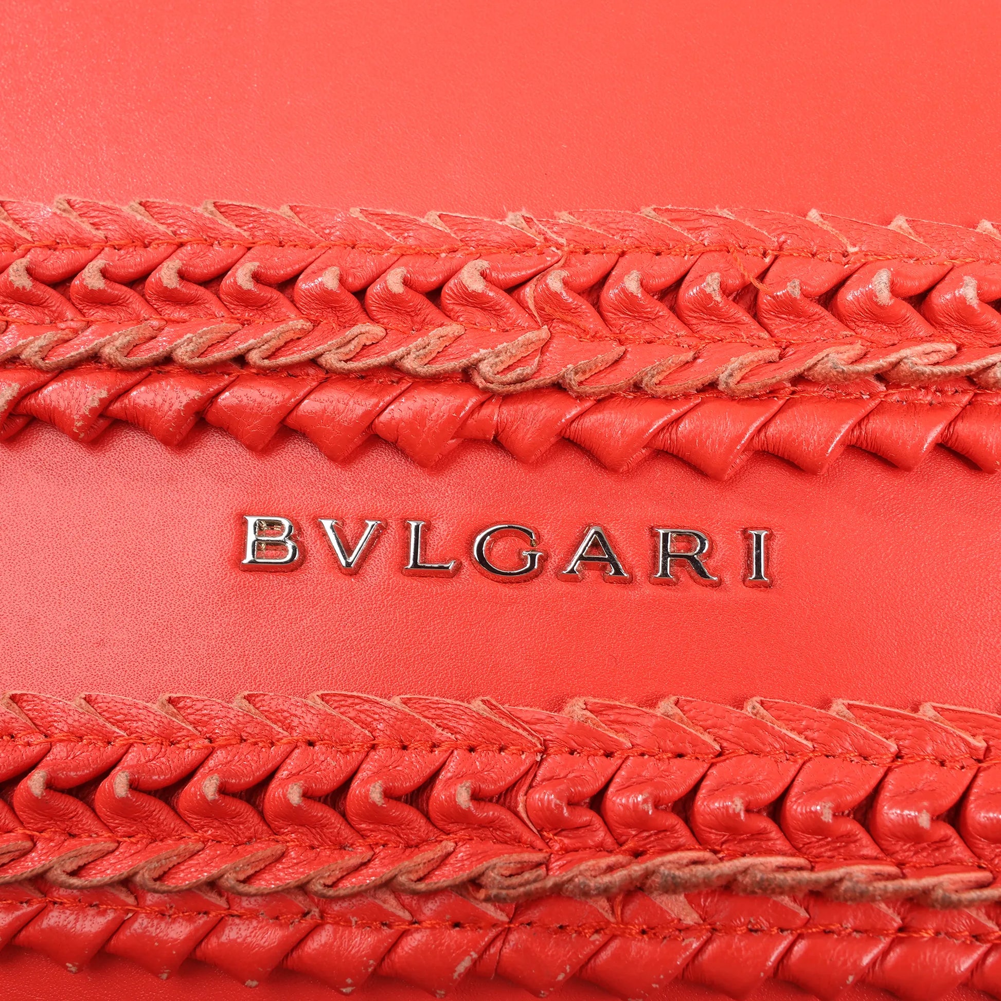 Make a bold statement with the BVLGARI Serpenti Forever shoulder bag in glossy red patent leather, featuring braided detailing and the iconic snakehead closure in enamel and onyx.
