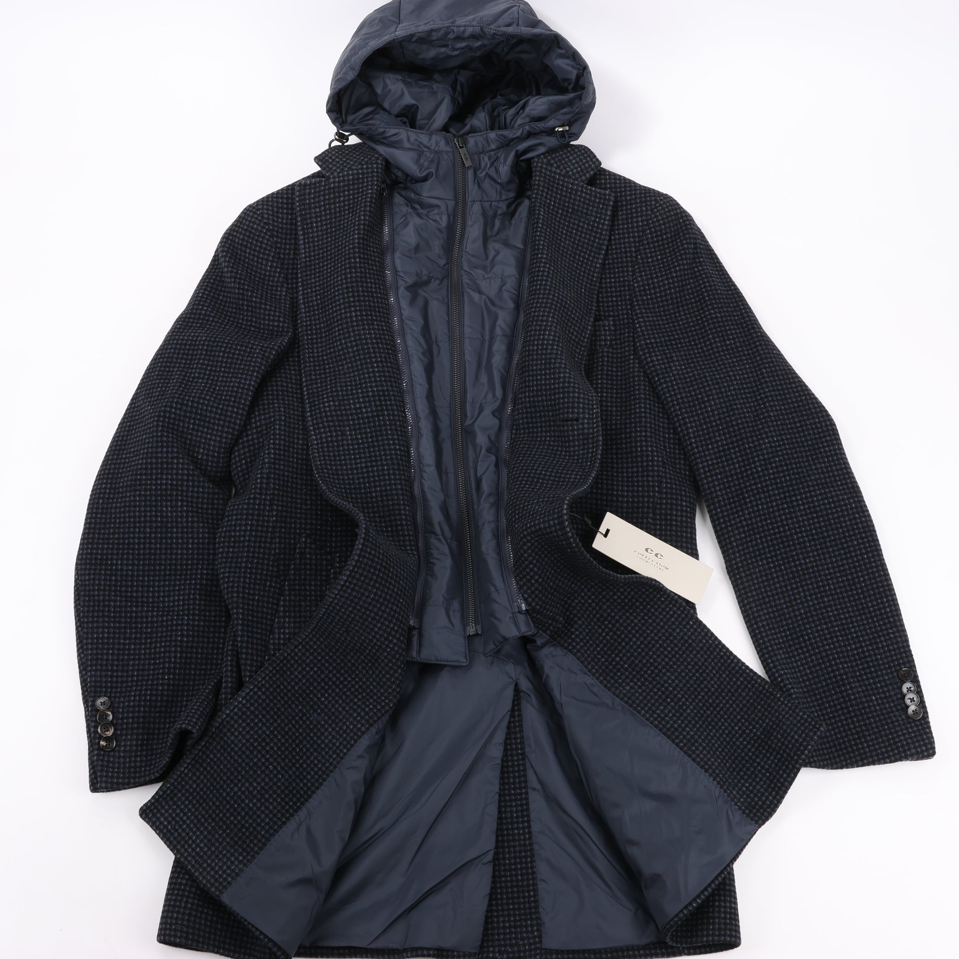 CC Collection Corneliani Wool Coat with Removable Hooded Liner, Size 50