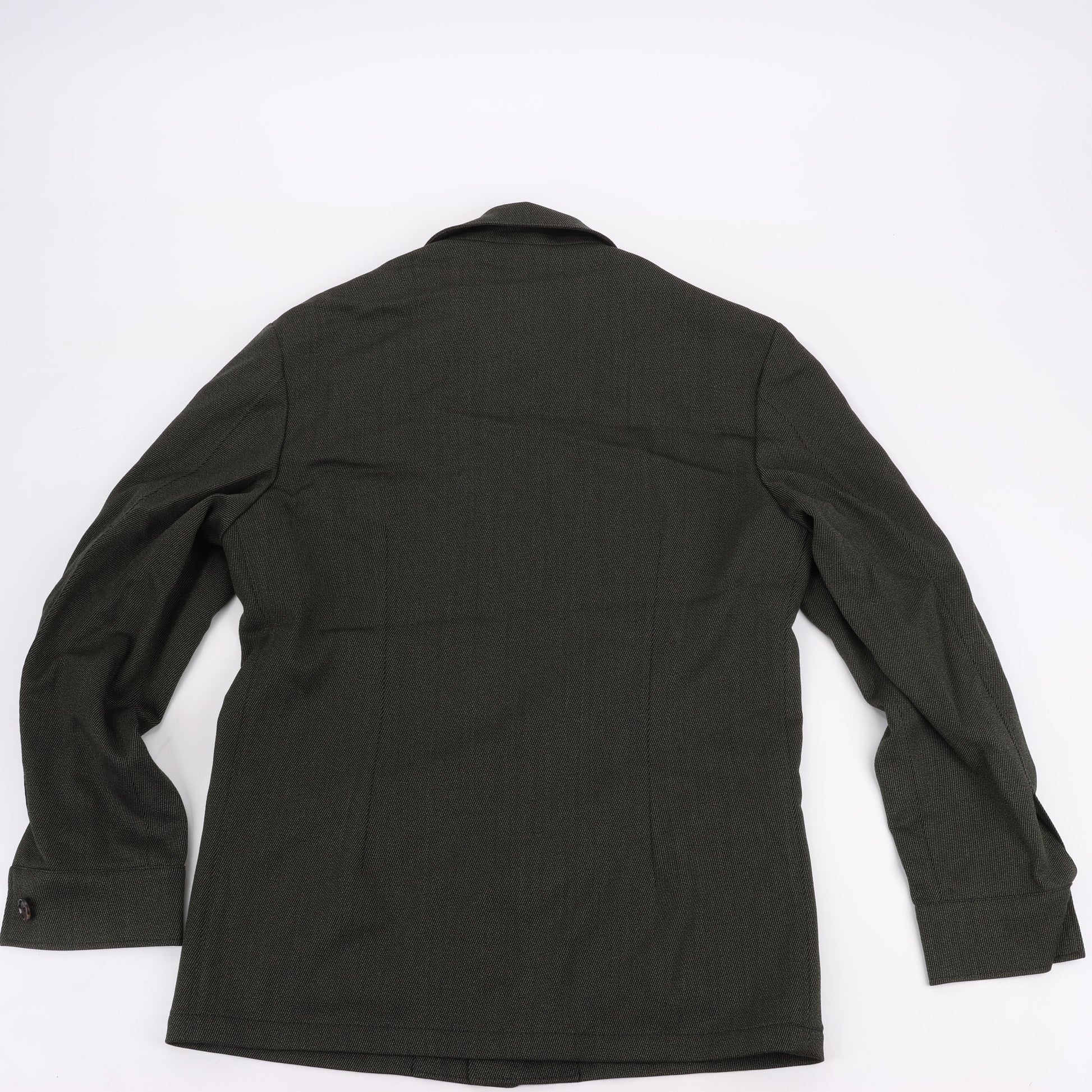 This versatile Corneliani jacket, size 50, features a structured wool design in dark green, complemented by a detachable hooded puffer vest in brown. The jacket offers functional front pockets, a button closure, and the signature quality craftsmanship of Corneliani's CC Collection, making it a stylish and practical piece for transitional weather.