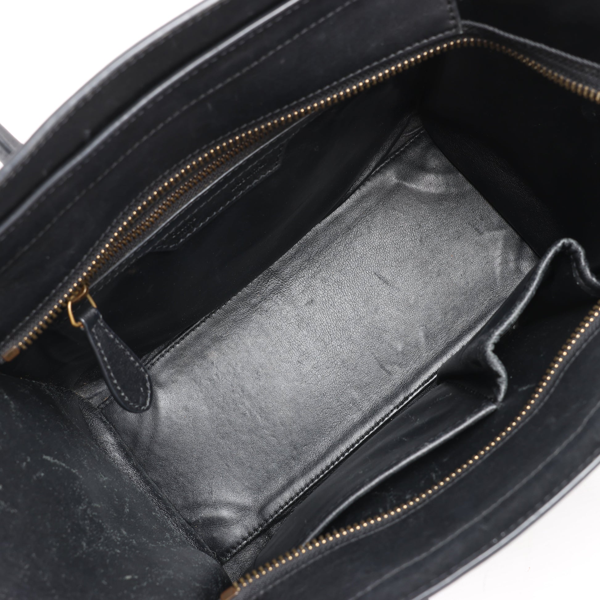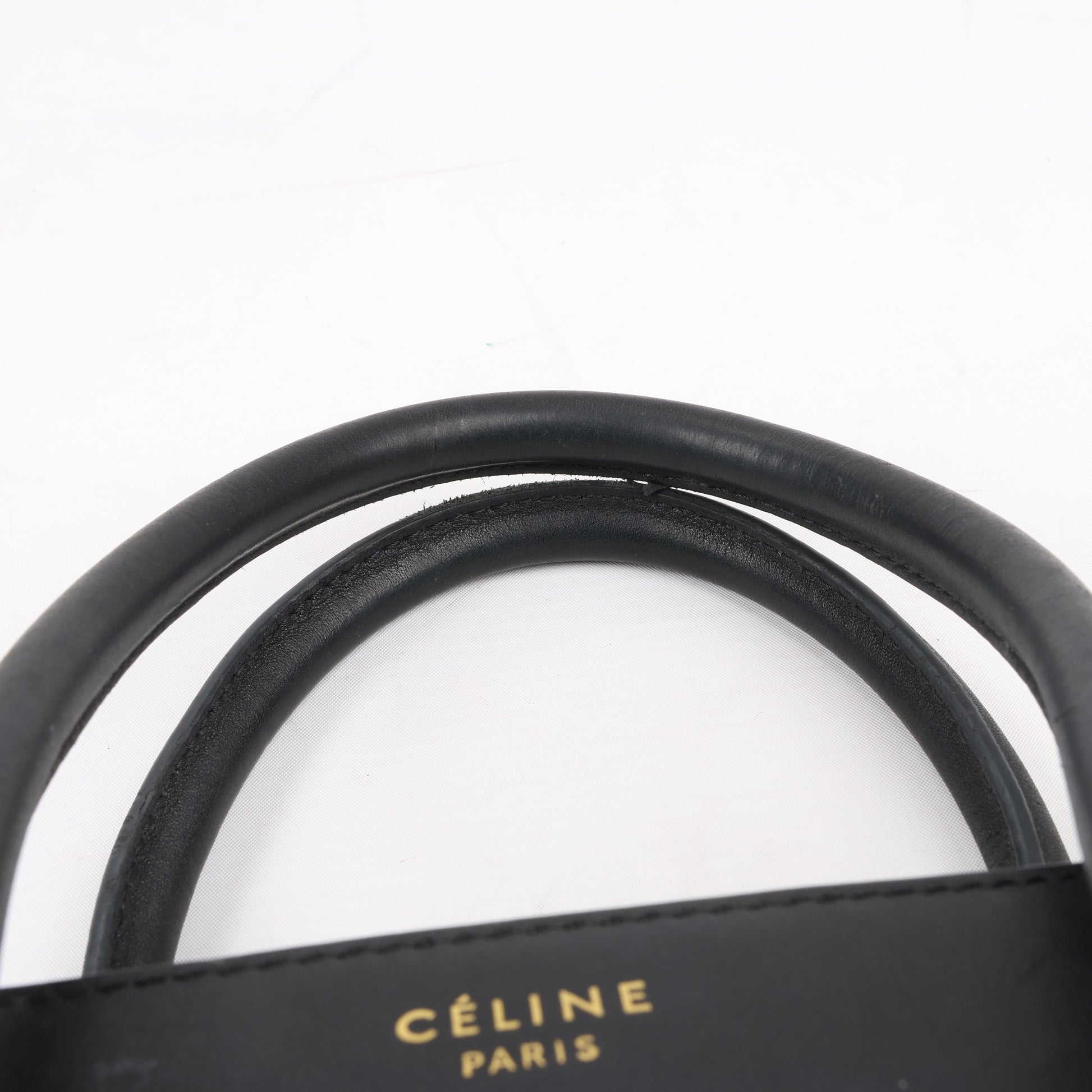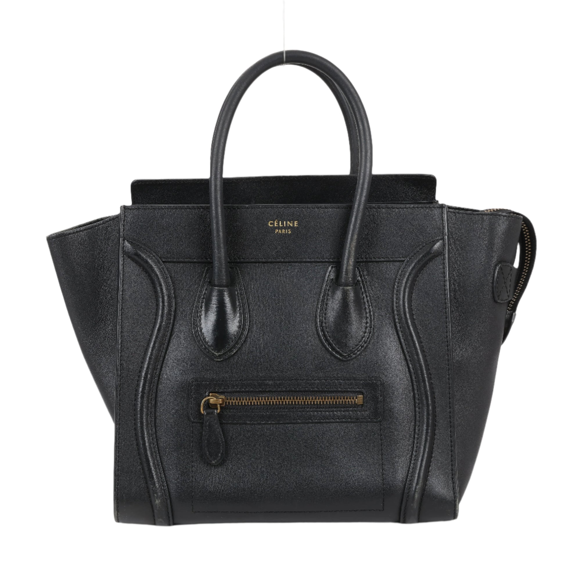 The CELINE Luggage Micro Leather Handbag in Black is a timeless icon, featuring smooth, high-quality leather with the brand's signature winged sides. Its spacious interior and distinctive front zip pocket make it both stylish and practical for everyday use.