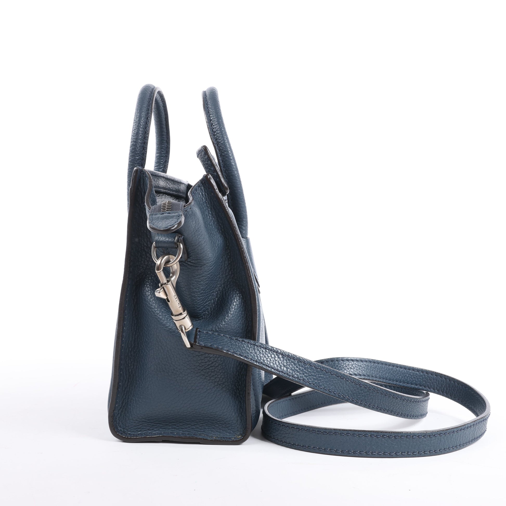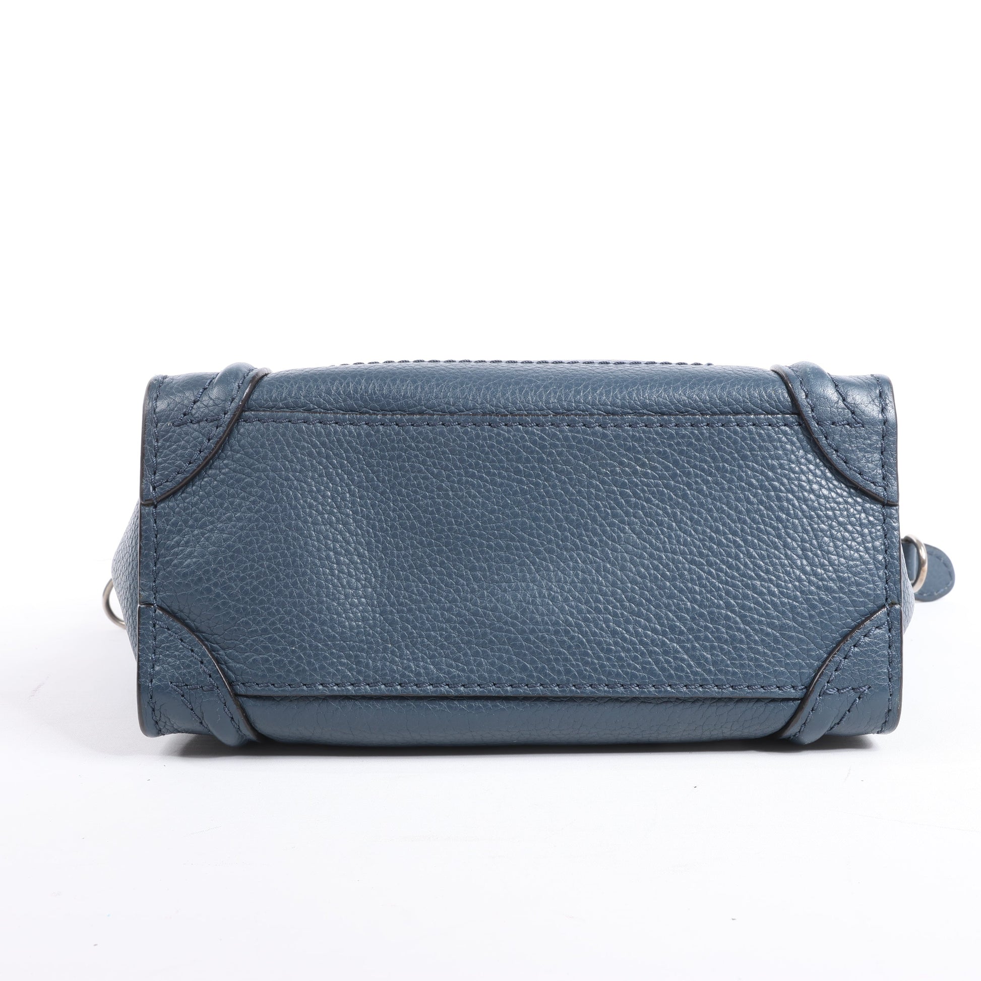 CELINE Nano Luggage Leather 2Way Handbag in Navy Blue
