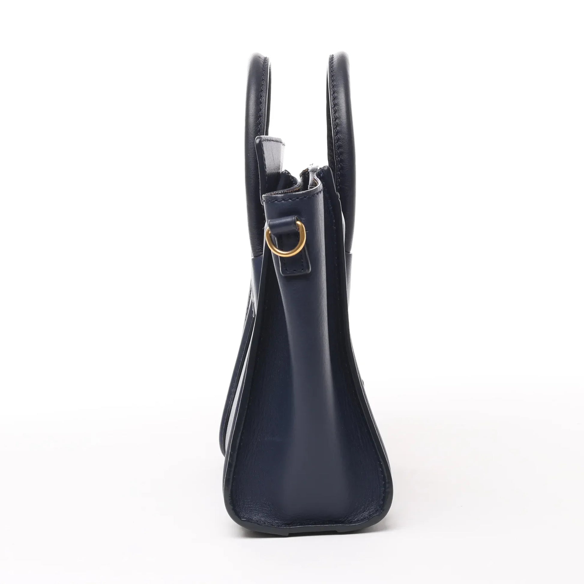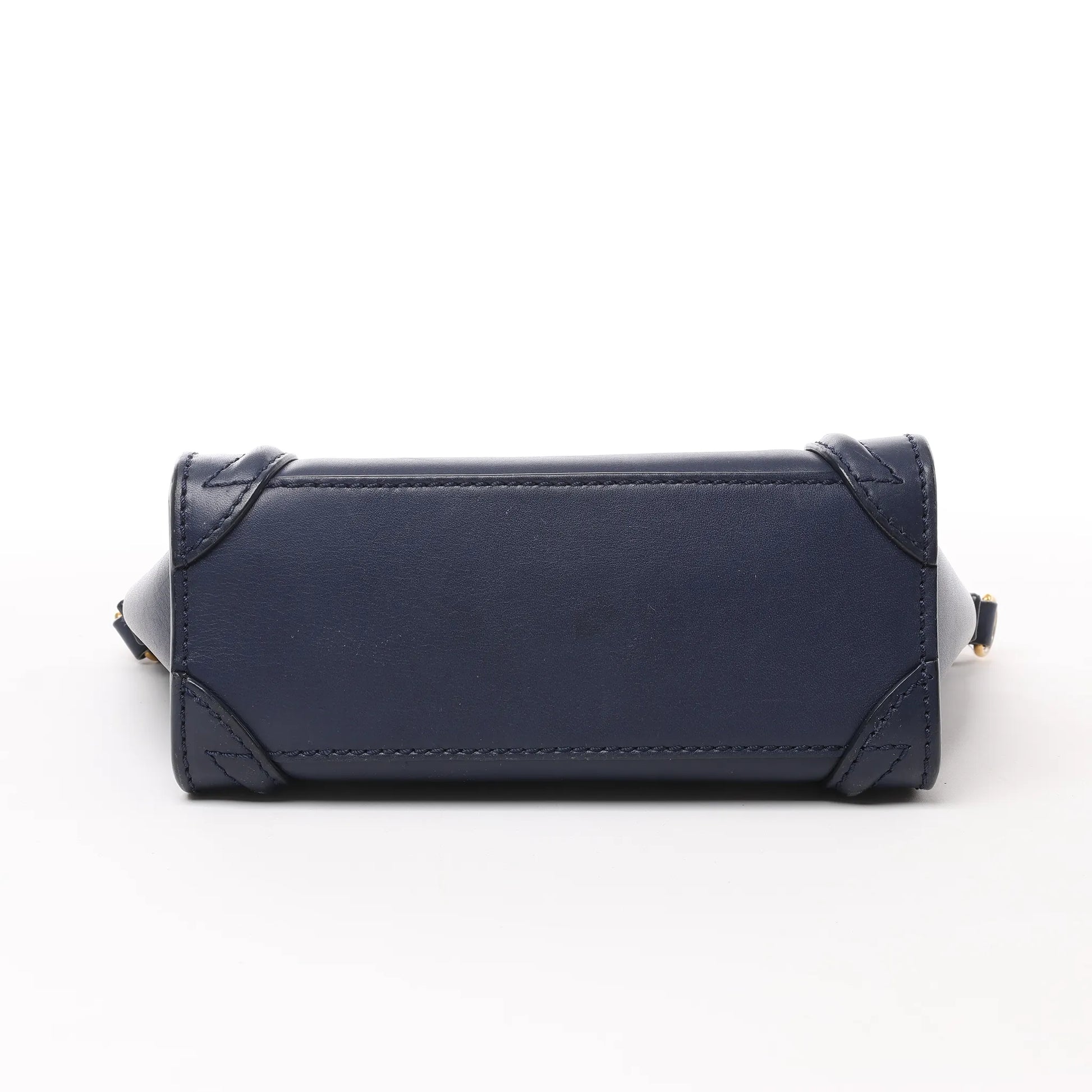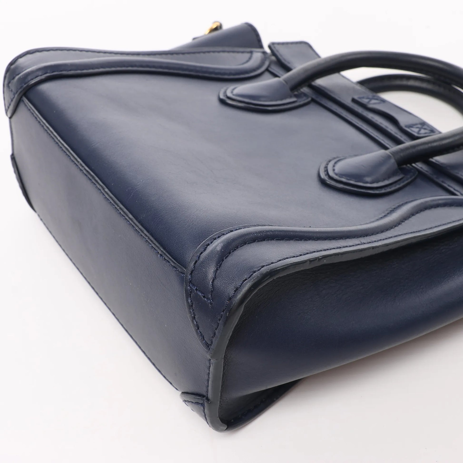 CELINE Nano Luggage Leather 2Way Handbag in Navy Blue
