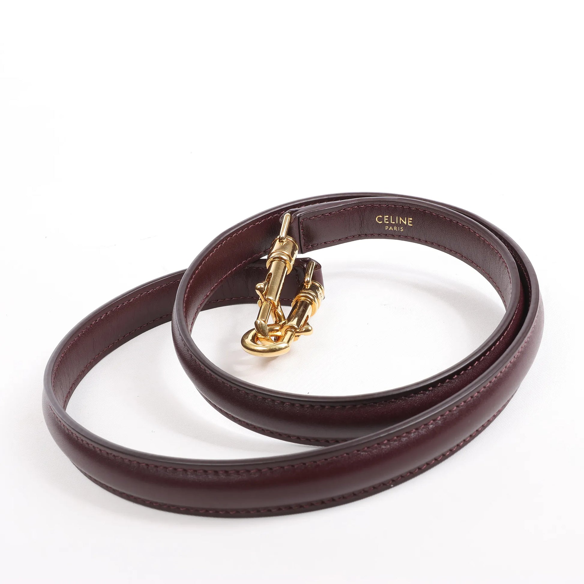 Elevate your wardrobe with the Celine Sac 16 Medium 2Way Handbag in smooth burgundy leather. Timeless and structured, this luxurious piece features gold-tone hardware, a signature padlock, and versatile top handle and shoulder strap for refined everyday wear.