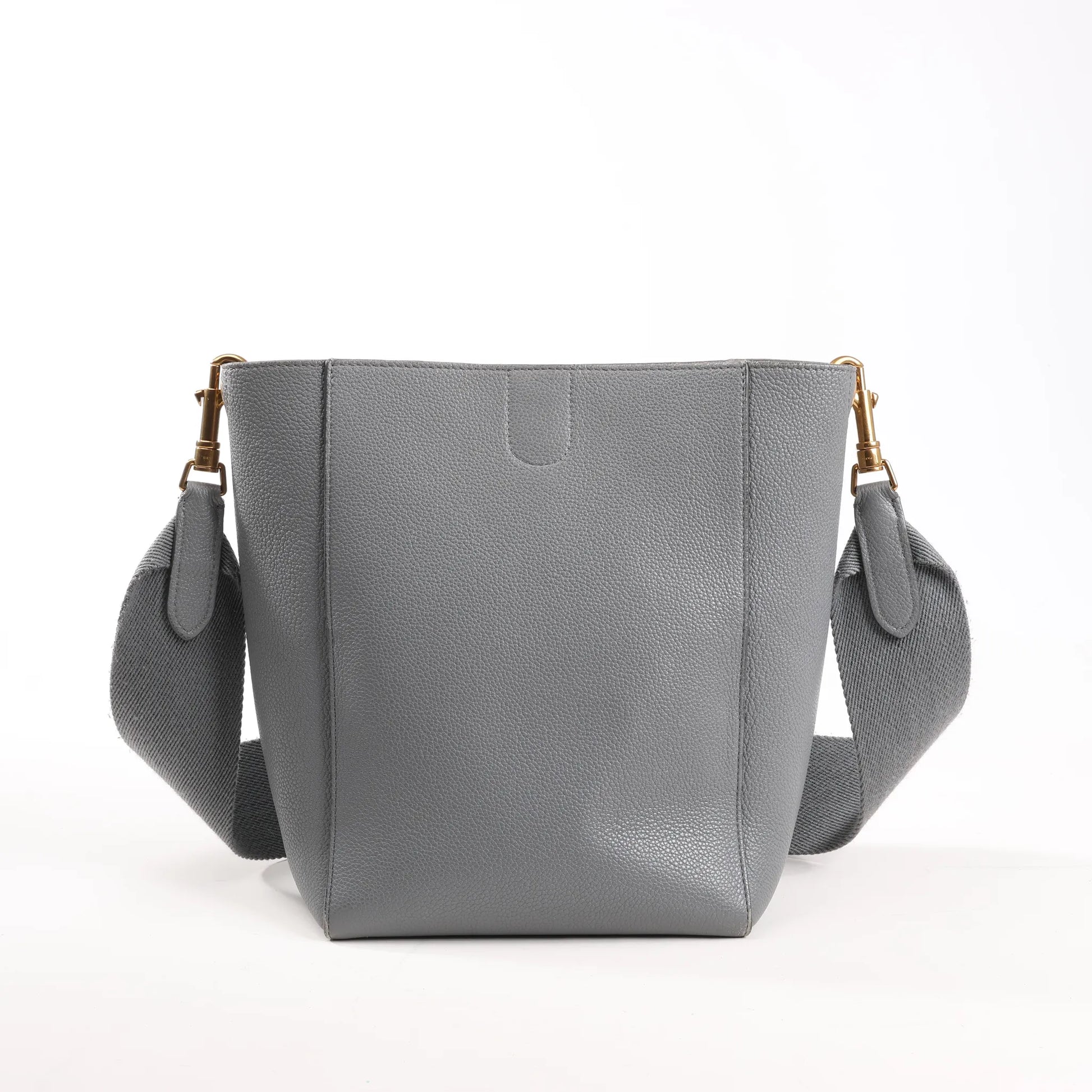CELINE Seau Sangle Bucket Mini Leather Shoulder Bag in Gray
