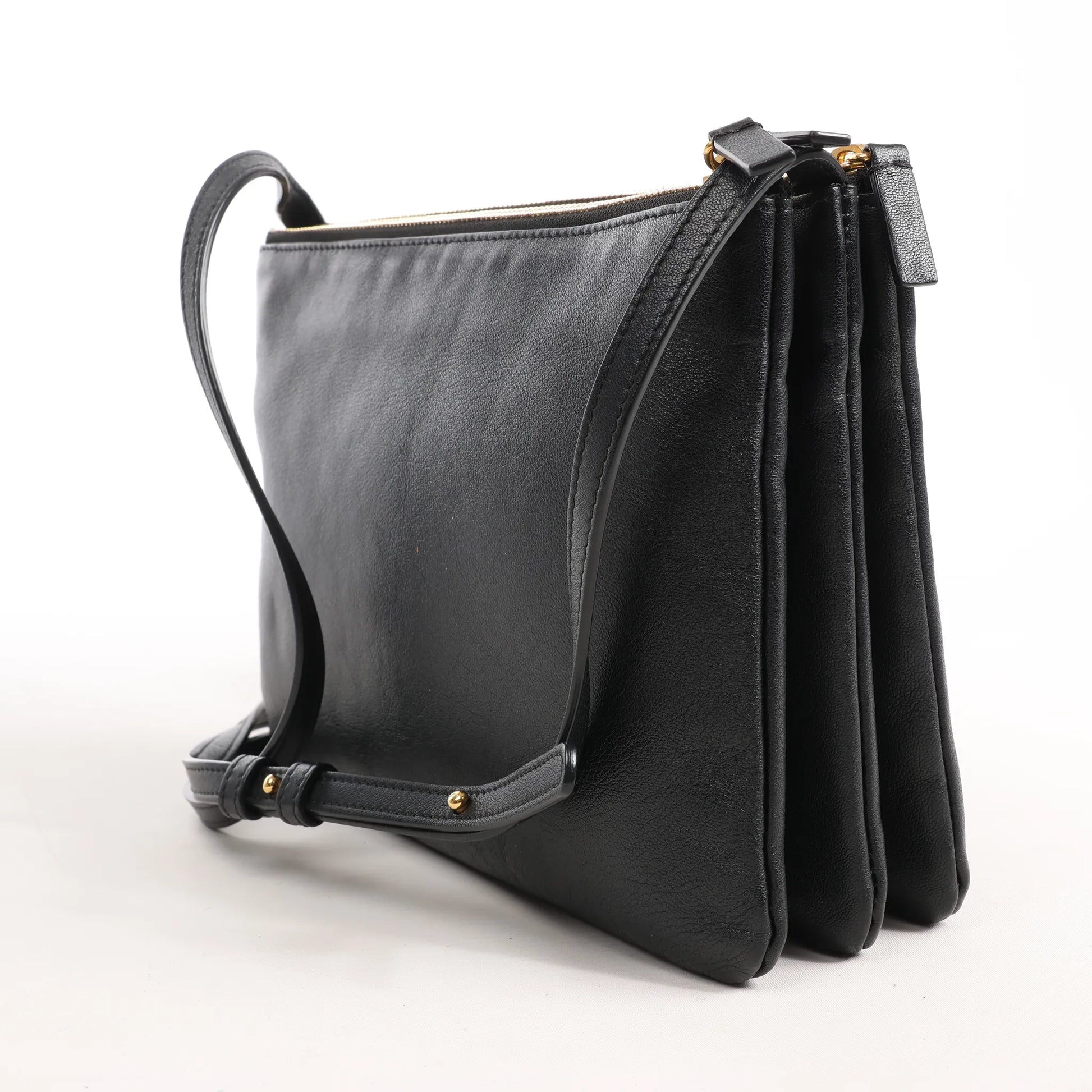 Celine Trio Large Leather Crossbody bag in Black