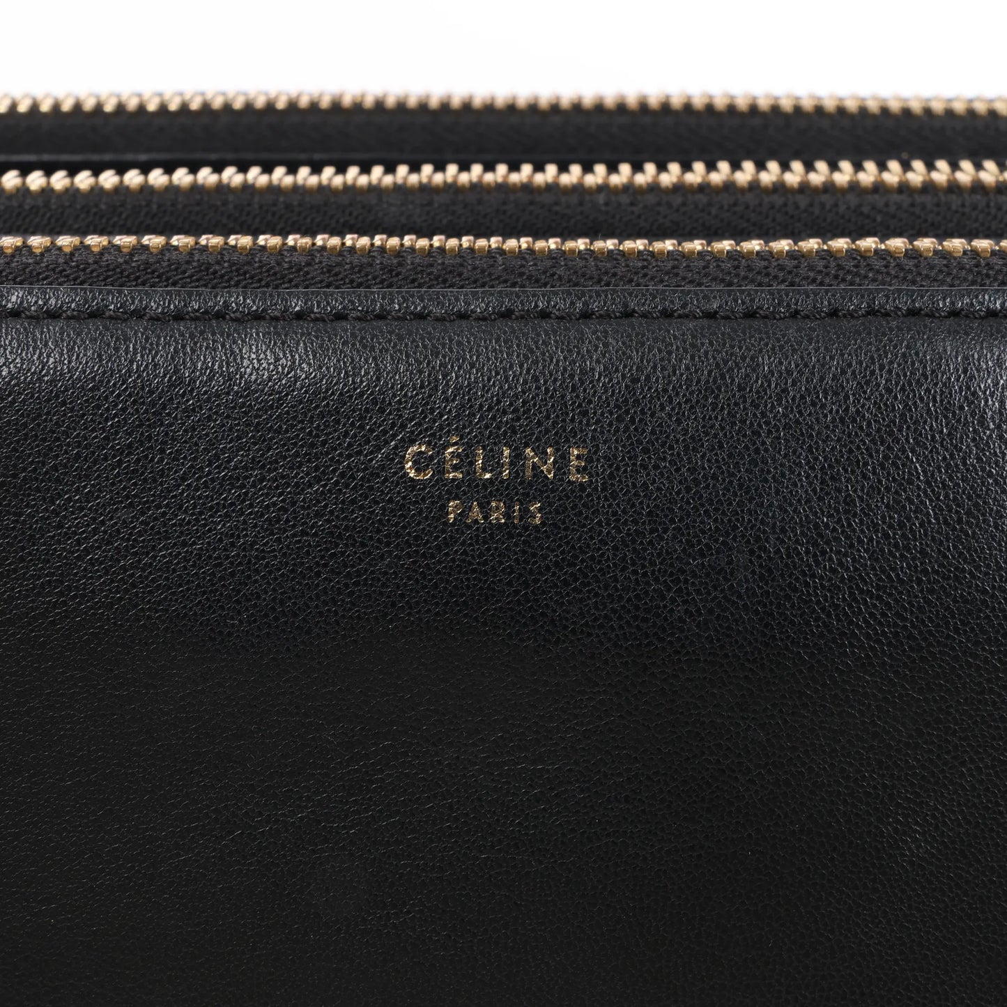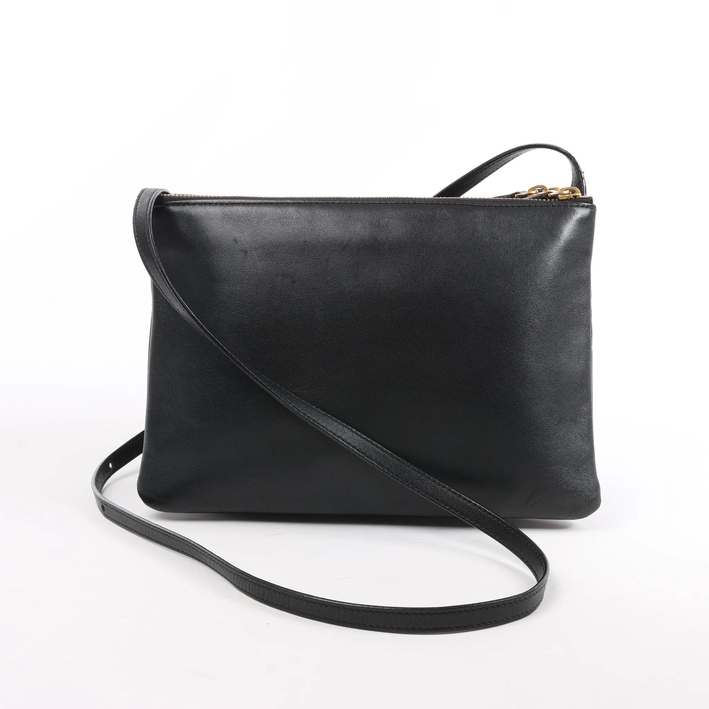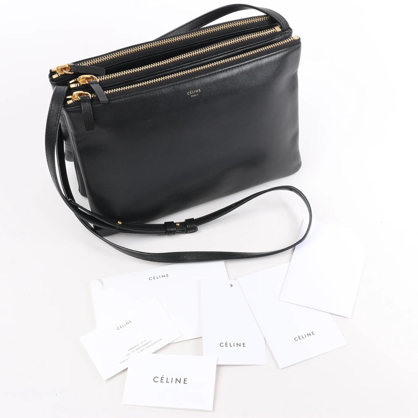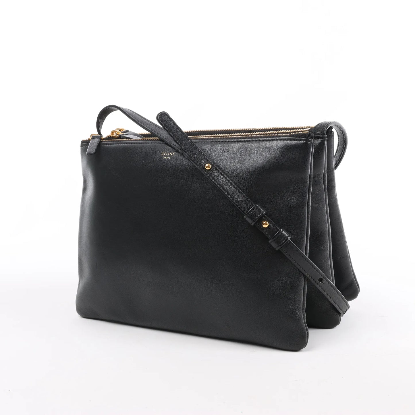 Discover timeless minimalism with the Celine Trio Large Leather Crossbody Bag in Black. Crafted from smooth calfskin leather, this sleek and versatile piece features three zip compartments—perfect for everyday chic and hands-free elegance.