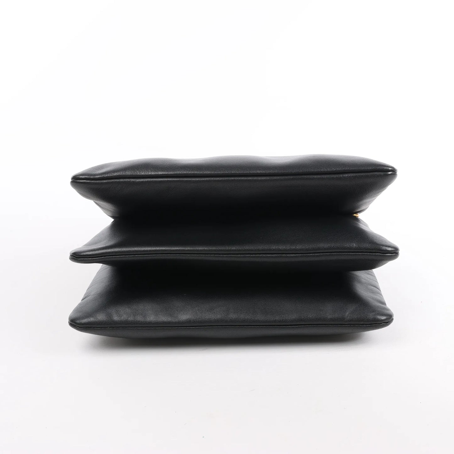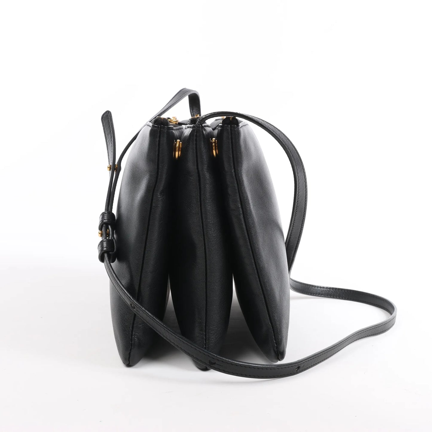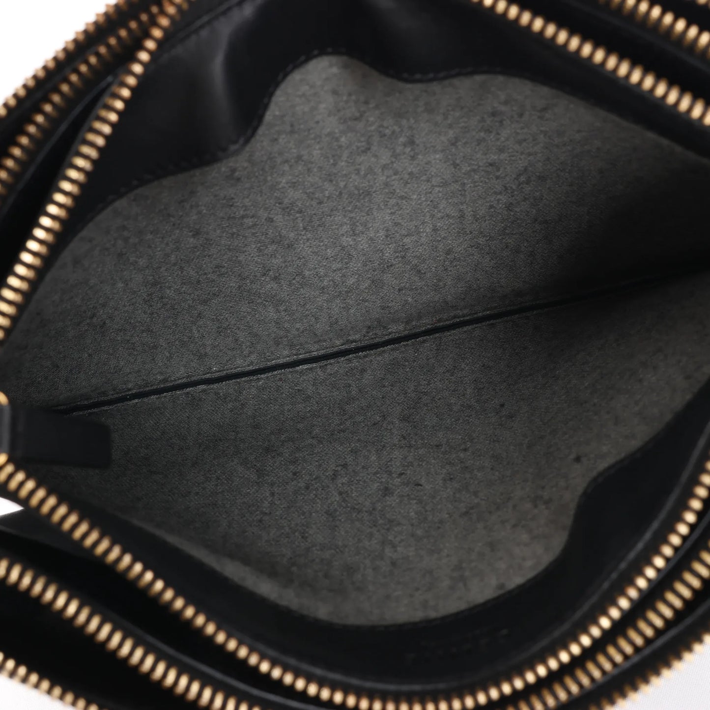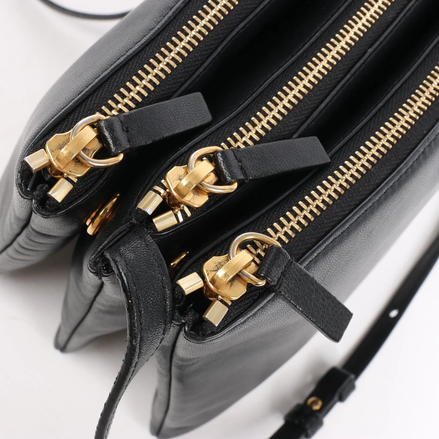 Discover timeless minimalism with the Celine Trio Large Leather Crossbody Bag in Black. Crafted from smooth calfskin leather, this sleek and versatile piece features three zip compartments—perfect for everyday chic and hands-free elegance.