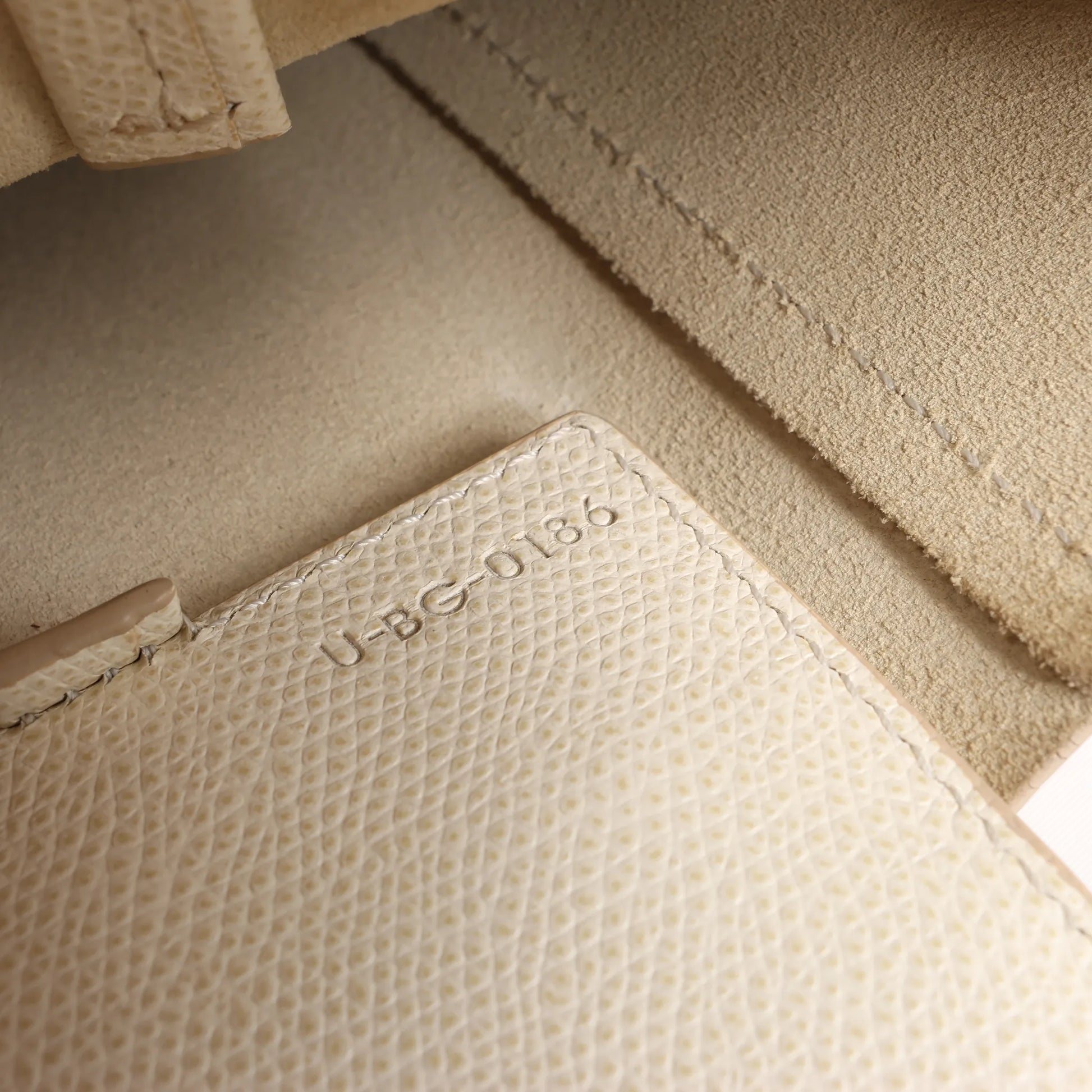 The Celine Vertical Cabas Phantom Small bag in white grained leather offers a minimalist 2-way carry design with sleek structure—ideal for everyday luxury versatility.