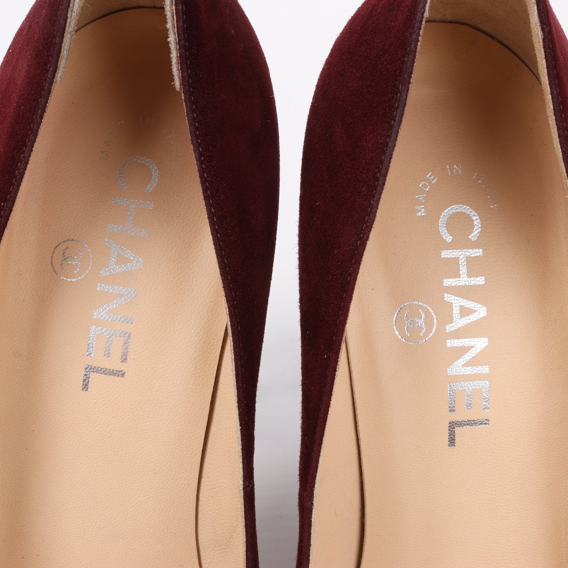 Chanel Burgundy/Brown Suede CC Cap Toe Platform Heel Pumps, Size 40.5 EU