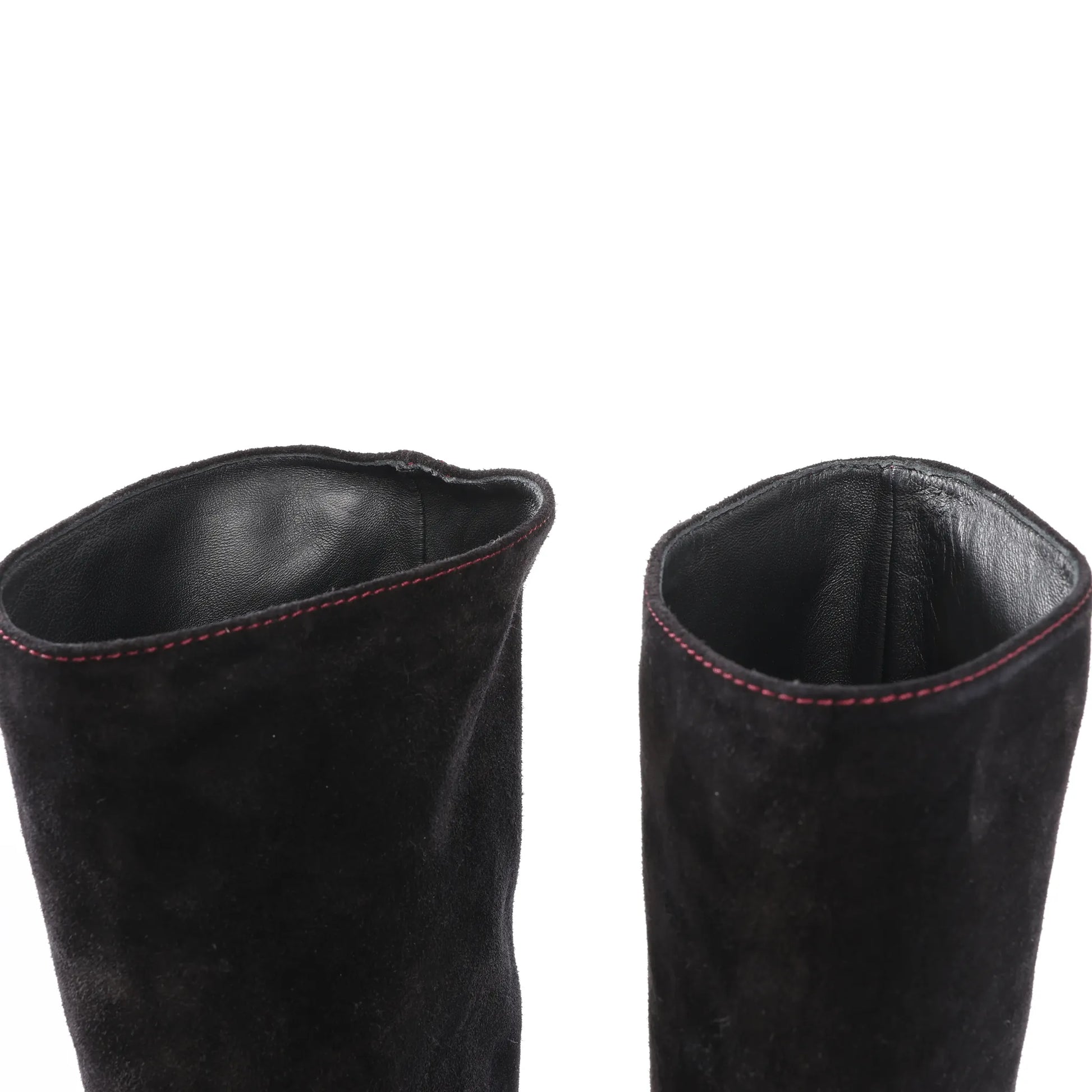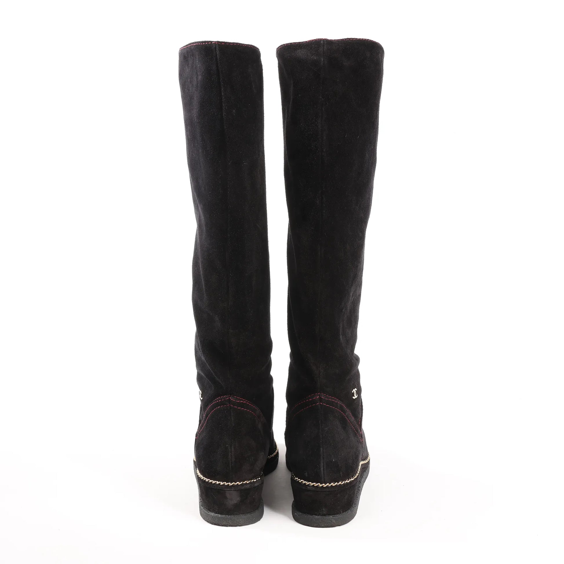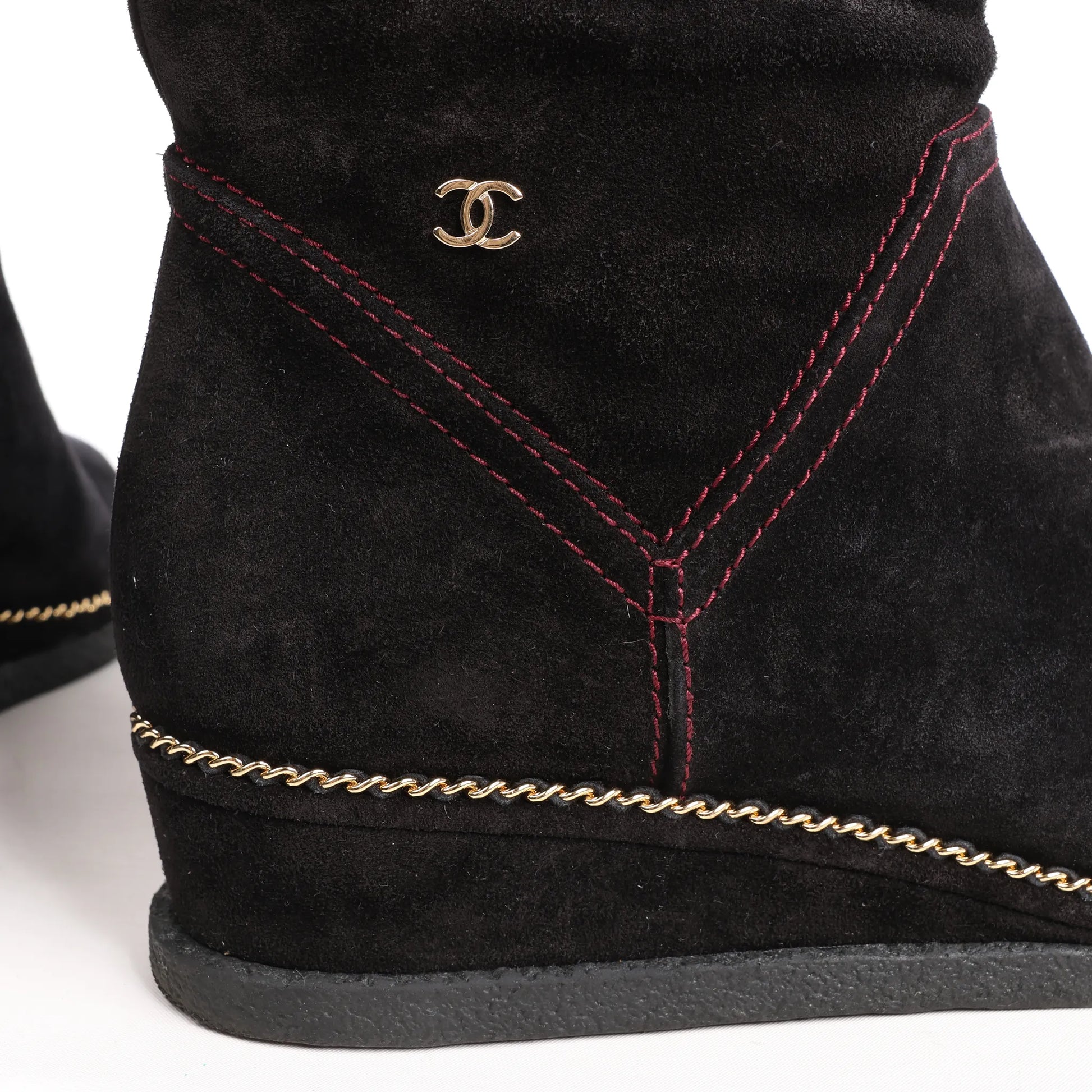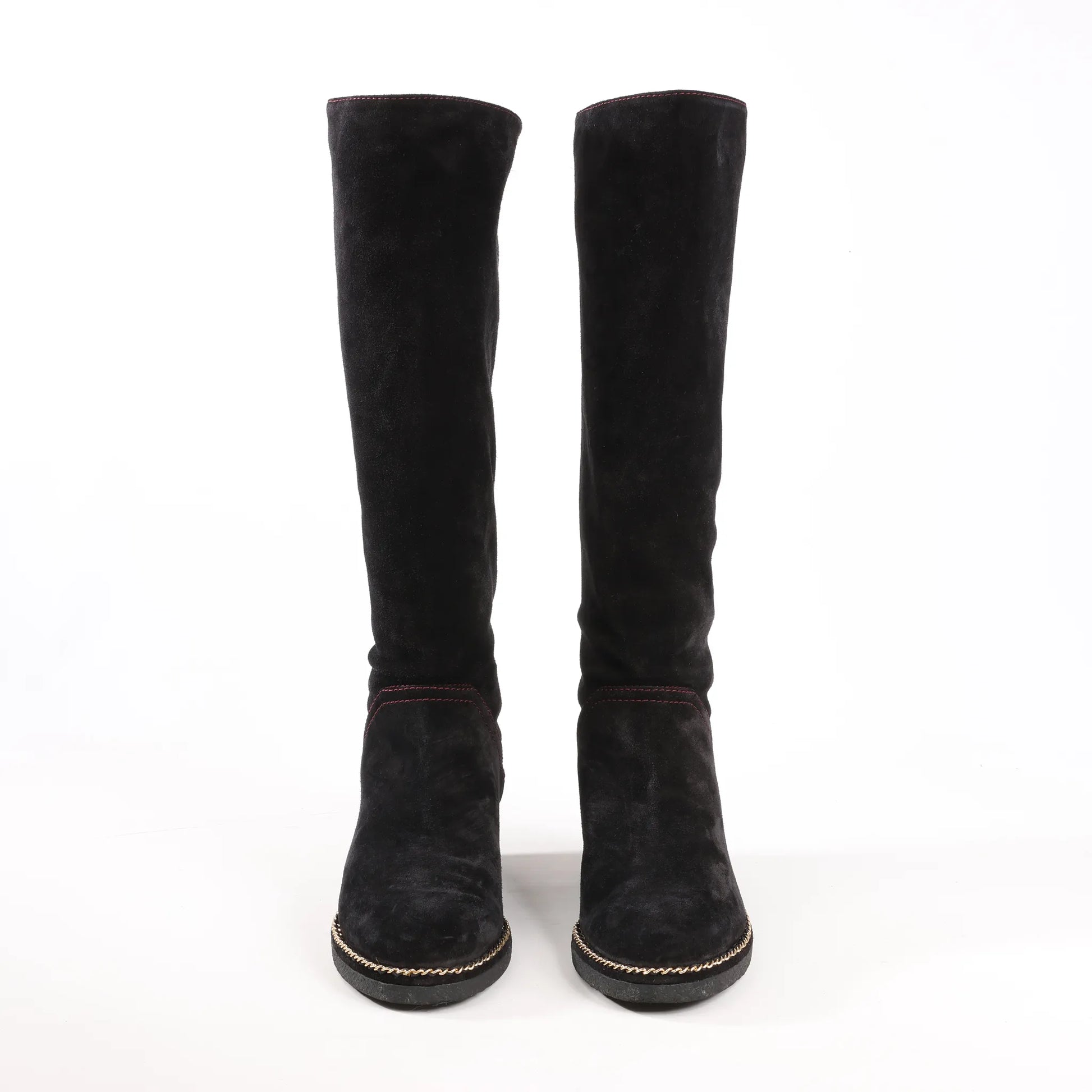 Chanel Coco Mark Chain 15B Suede Long Boots in Black G31295, Size 36 EU