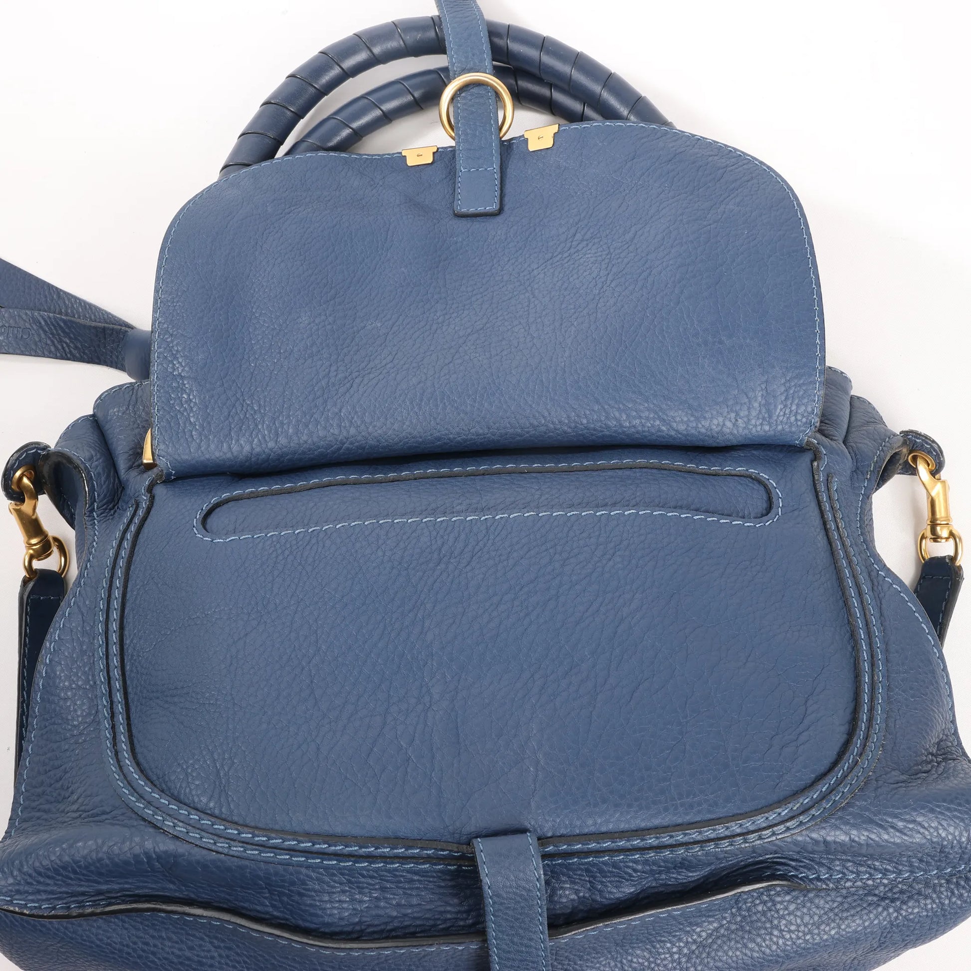 Chloe Marcie Leather Medium 2Way Handbag in Navy Blue