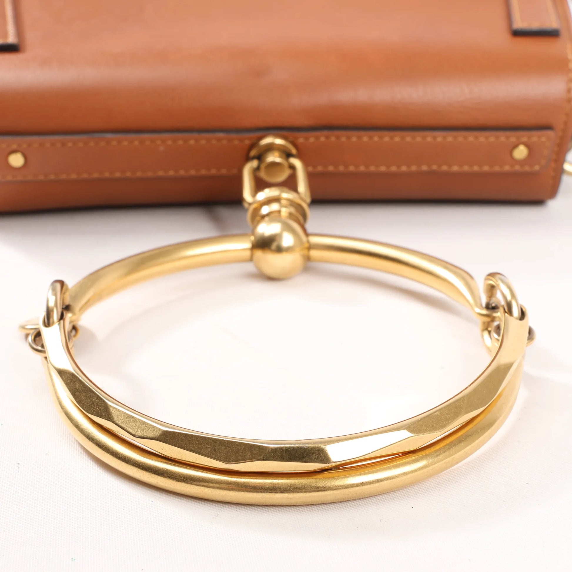 The Chloé Nile Small 2Way Bag in brown leather is a signature piece known for its unique bracelet handle and saddle silhouette. With gold-tone hardware and crossbody strap, this bag blends Parisian flair with boho sophistication.