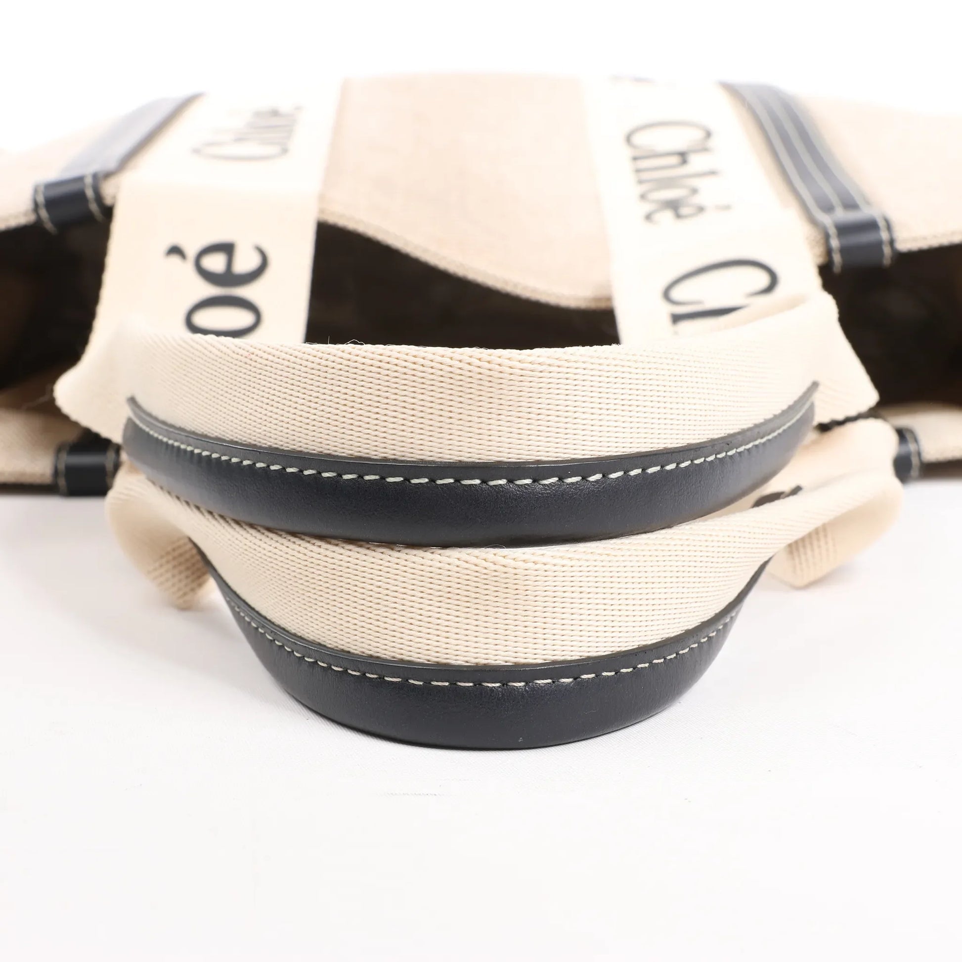 CHLOE Woody Large Canvas & Leather Tote Shoulder bag in Black x Beige