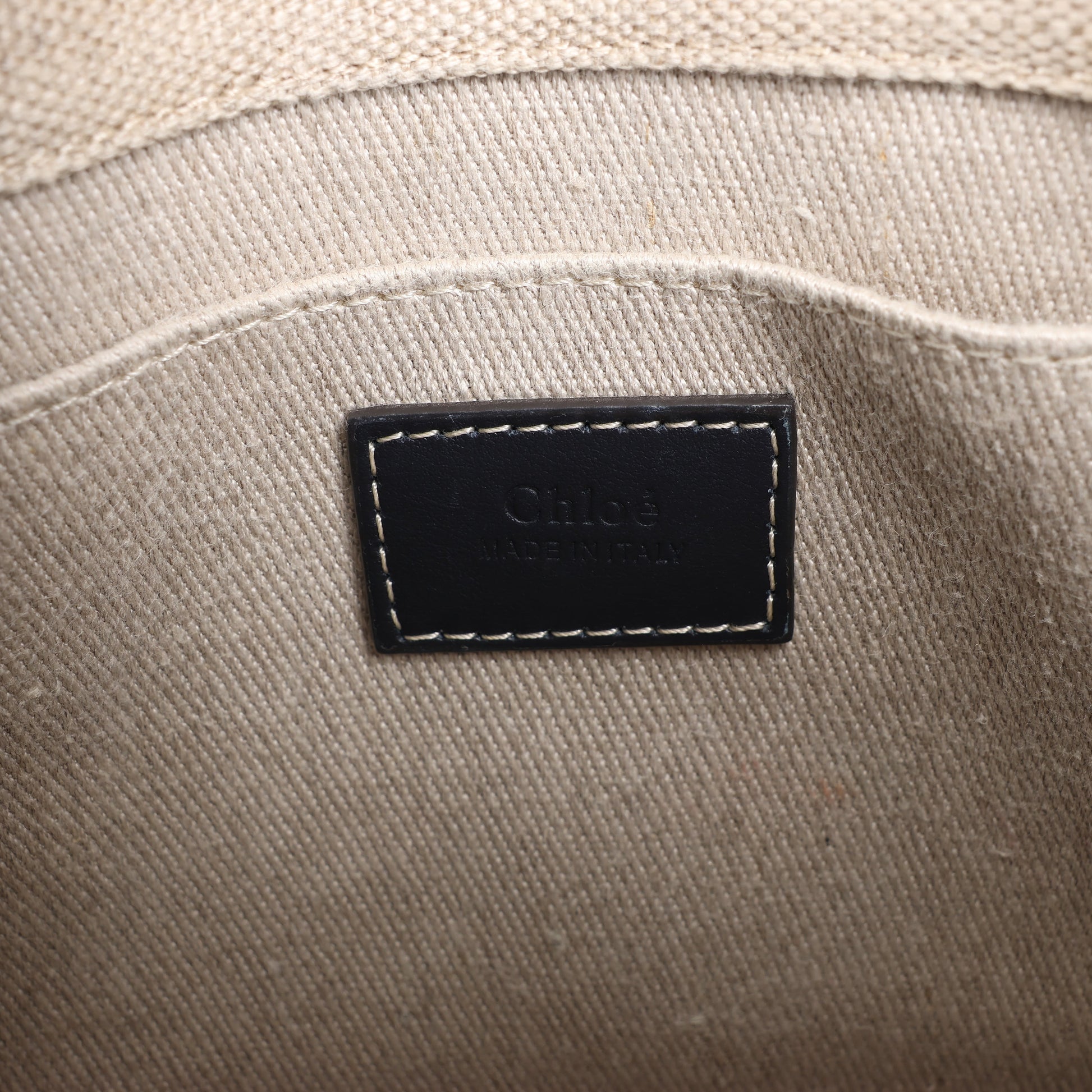 Chloé Woody Small Canvas & Leather 2Way Handbag in Beige x Black