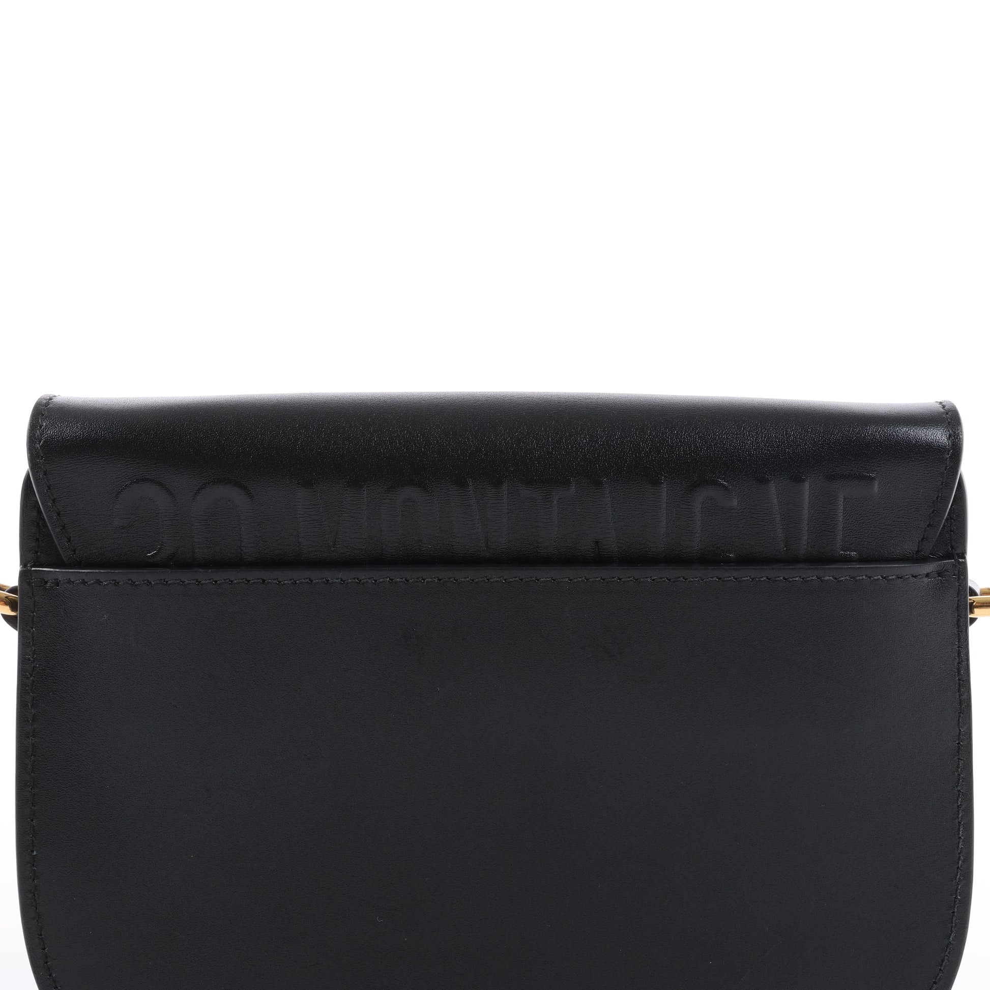 Dior Bobby Small Calfskin Flap Shoulder Bag in Black features a sleek calfskin exterior with gold-tone 'CD' logo hardware on the front flap. This elegant, structured design comes with an adjustable leather shoulder strap for versatile wear.
