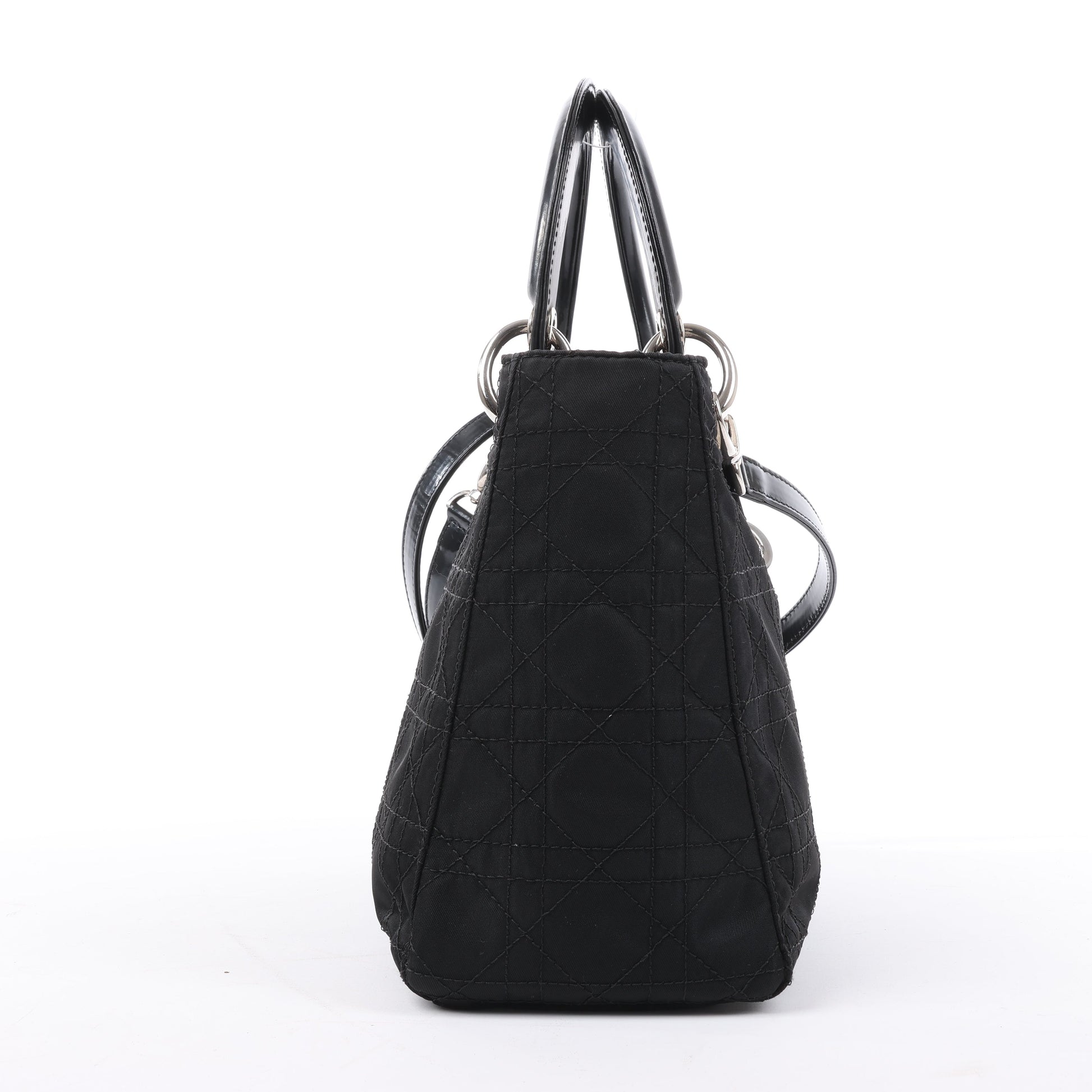 Dior Lady Dior Cannage Nylon Handbag in Black