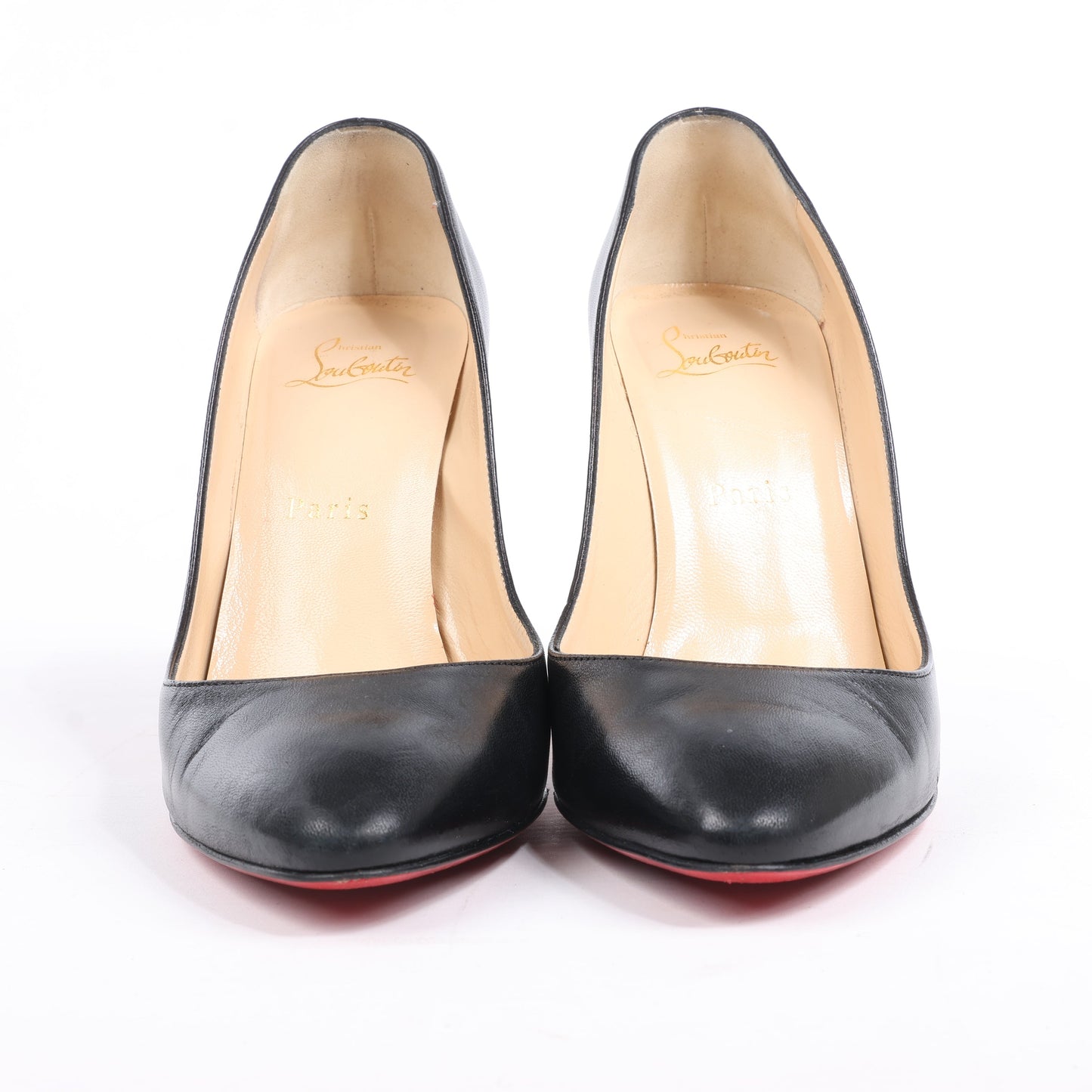 Christian Louboutin Eloise 100 pumps in black Nappa leather, size 38 EU. Timeless pointed-toe silhouette with sleek stiletto heel and signature red soles—sophisticated elegance with iconic allure.