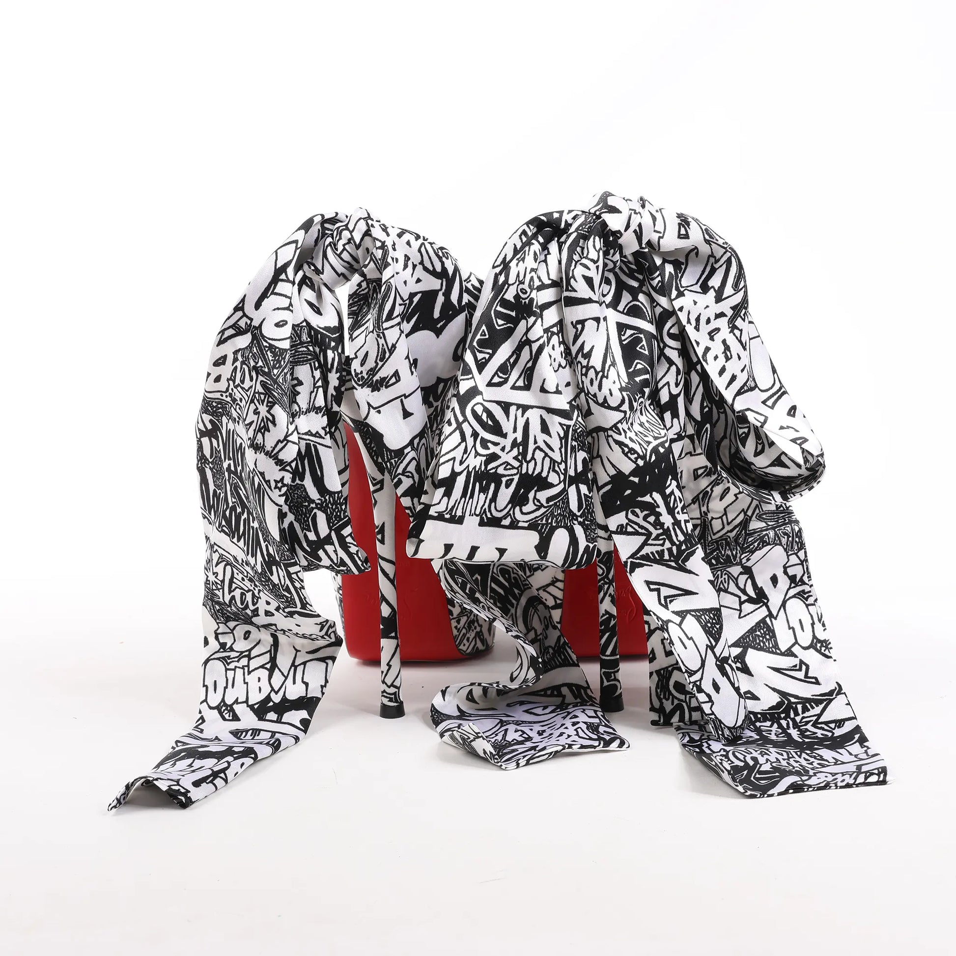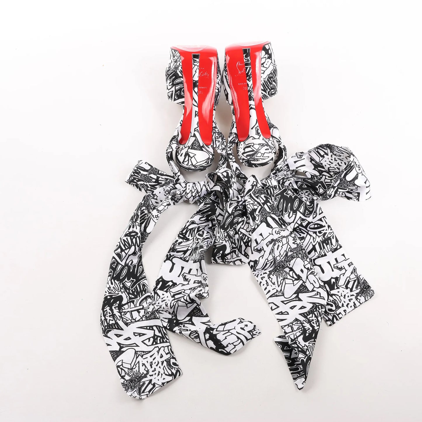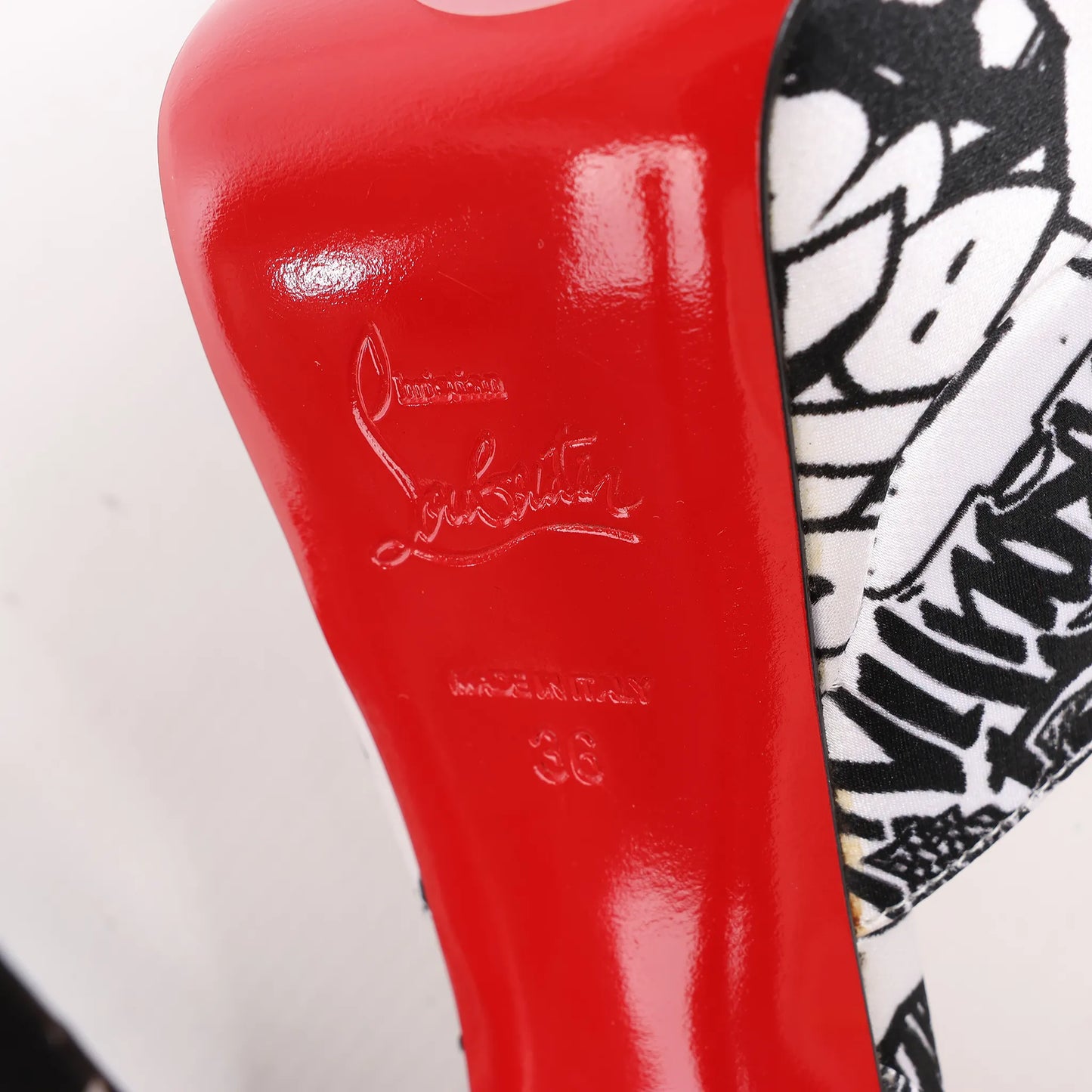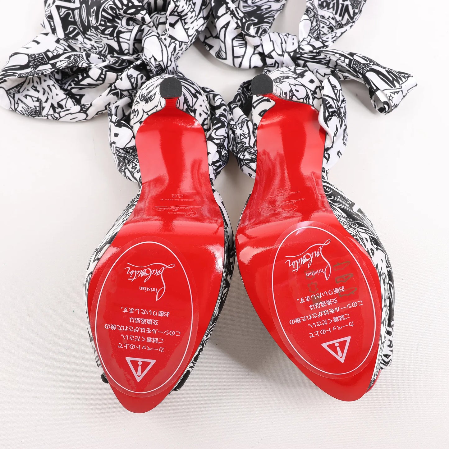Christian Louboutin ERSEY VAMP 150 Satin Heels in White Jwall Graphic, Size 36 EU