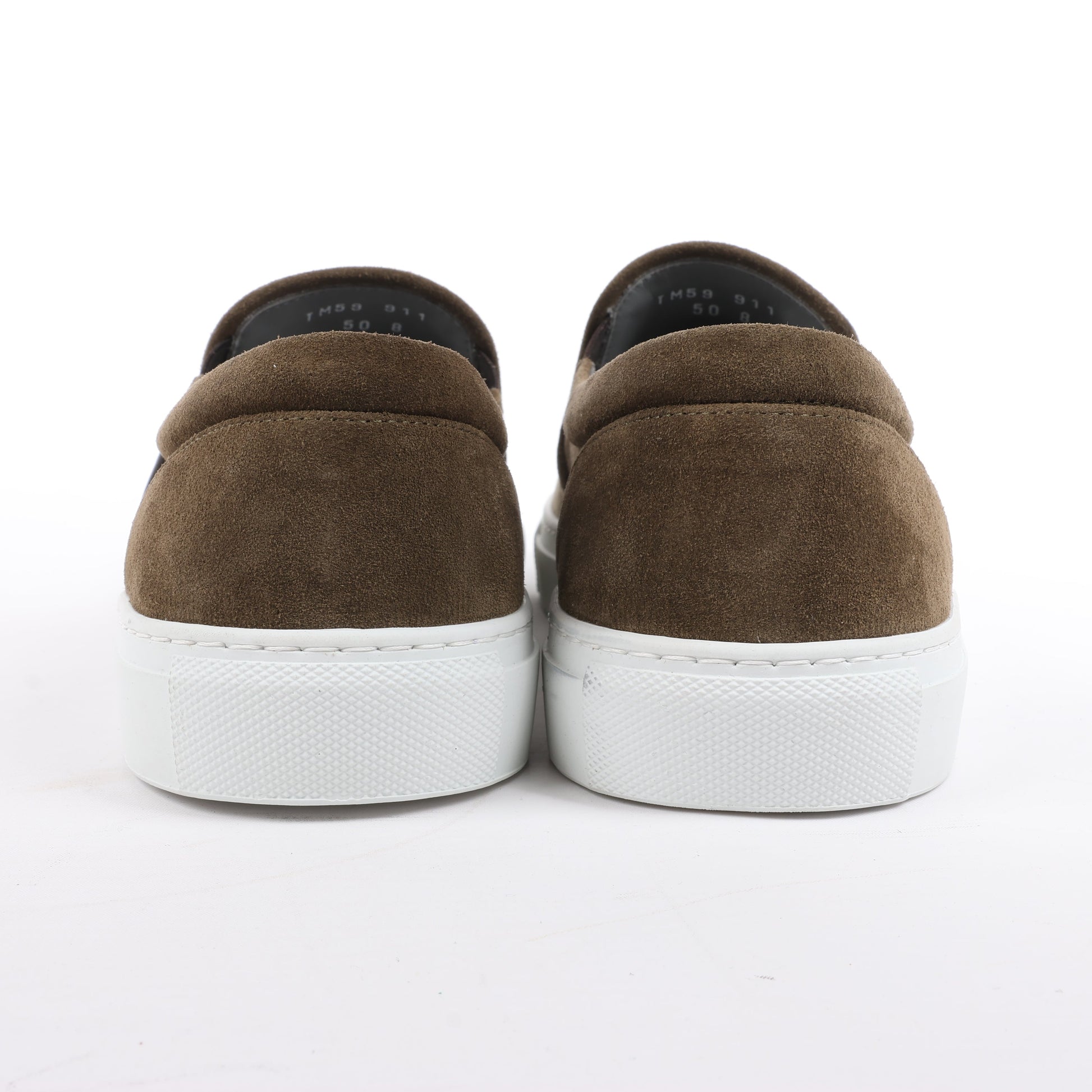 CORNELIANI Suede and Cloth Slip-On Sneakers in Brown, Size 42.5 EU