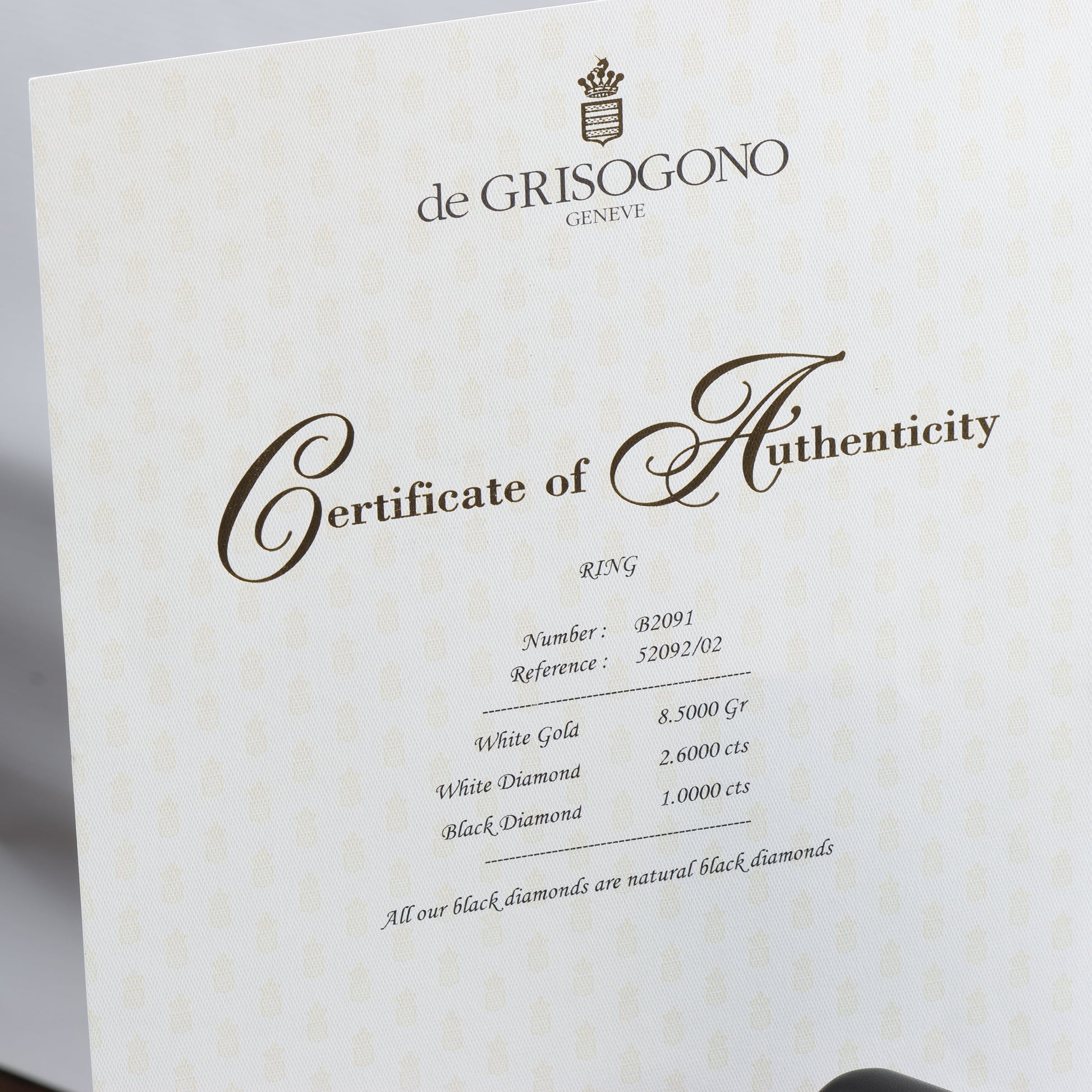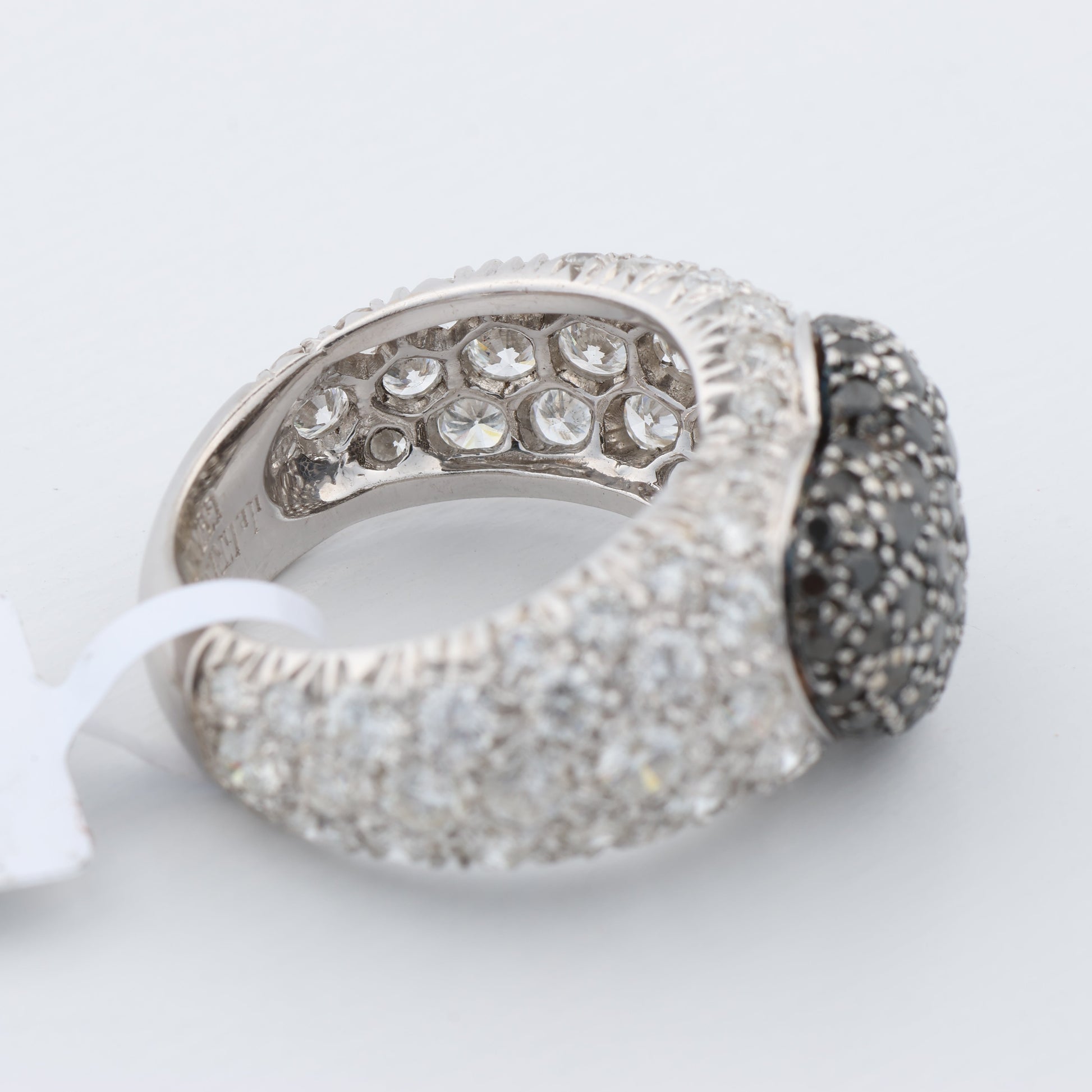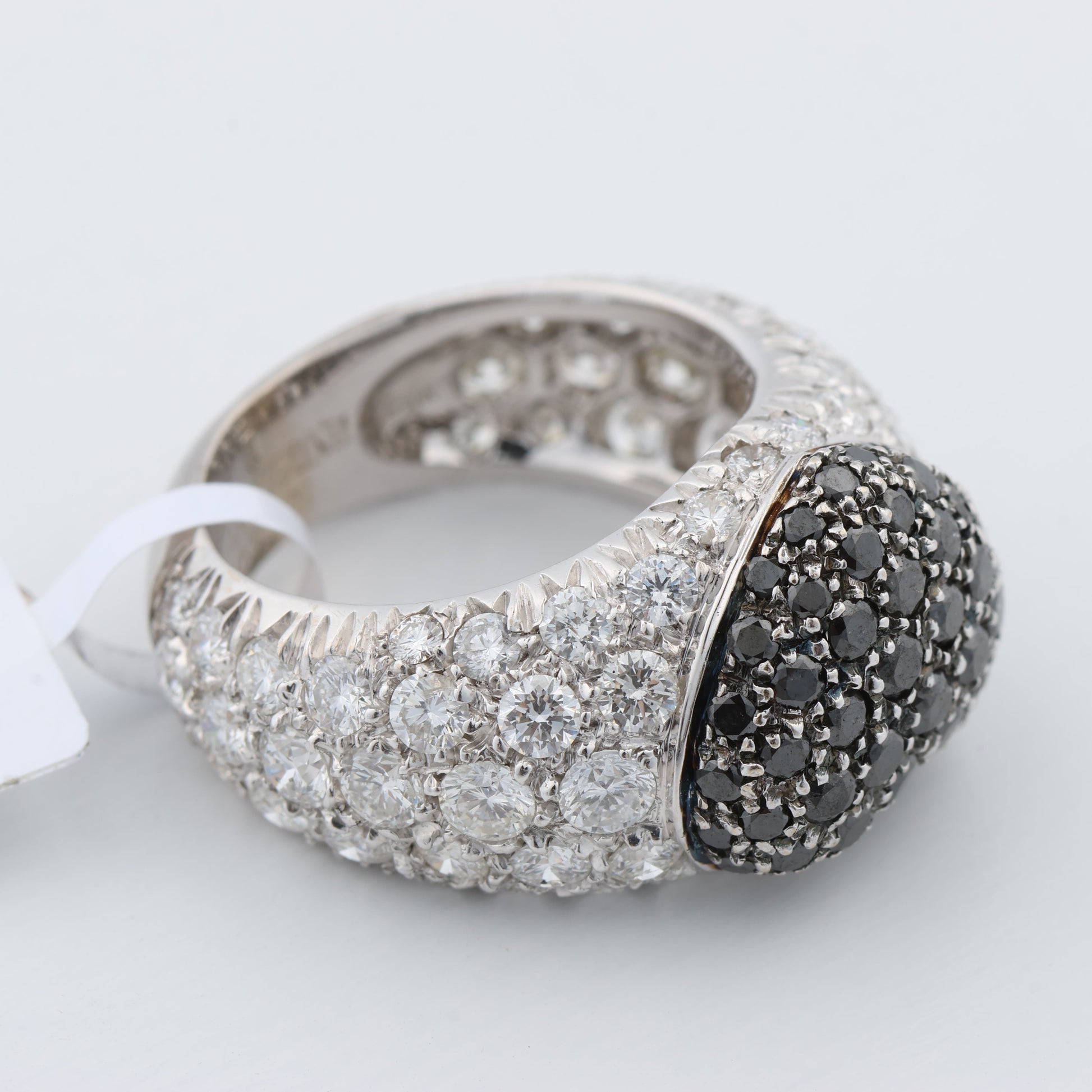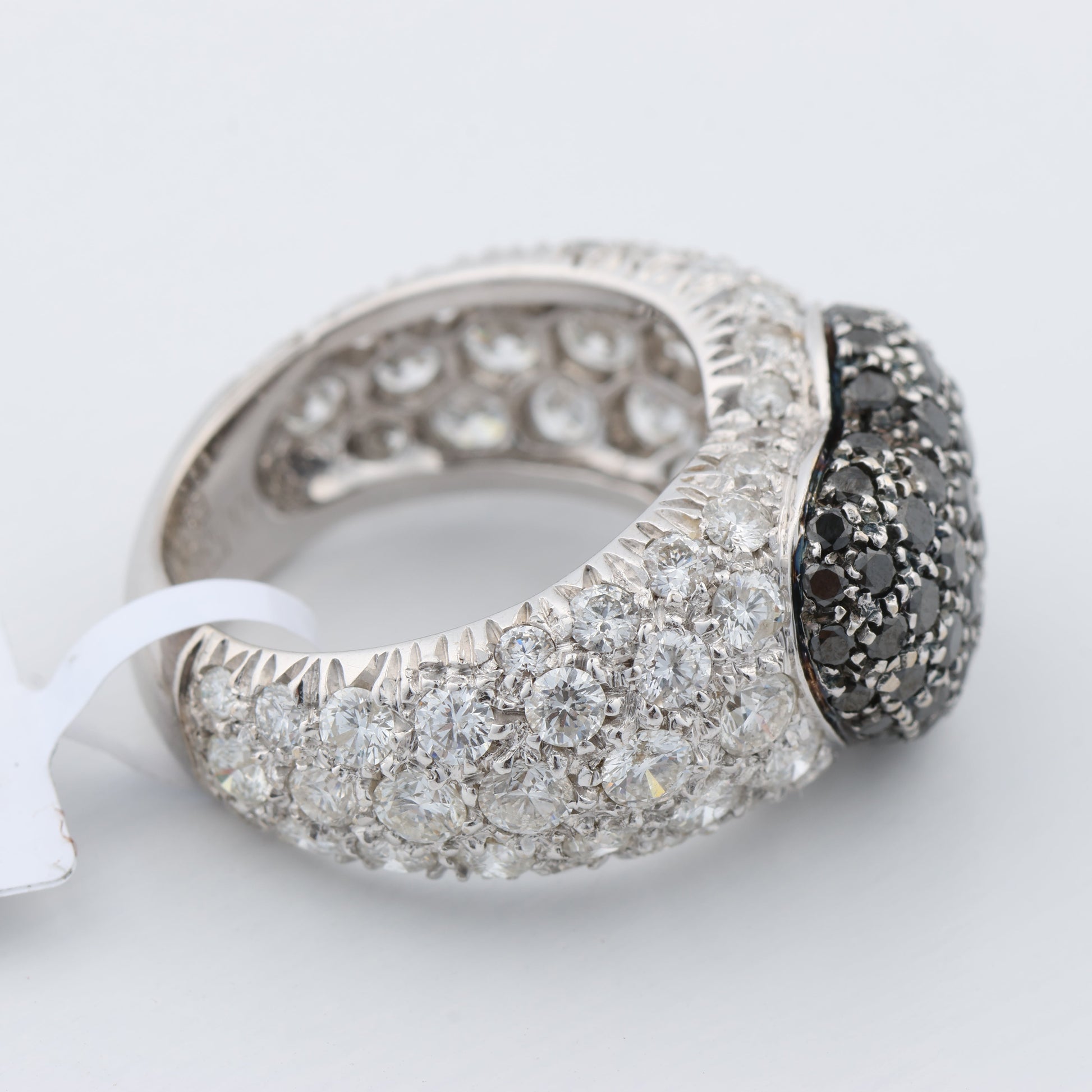 De Grisogono black diamond heart ring in 18K white gold, size 51. Featuring a dazzling pavé of 63 near-colorless diamonds and 49 black diamonds, totaling approximately 3.6 carats. A bold yet elegant statement piece with certified authenticity and expert craftsmanship.