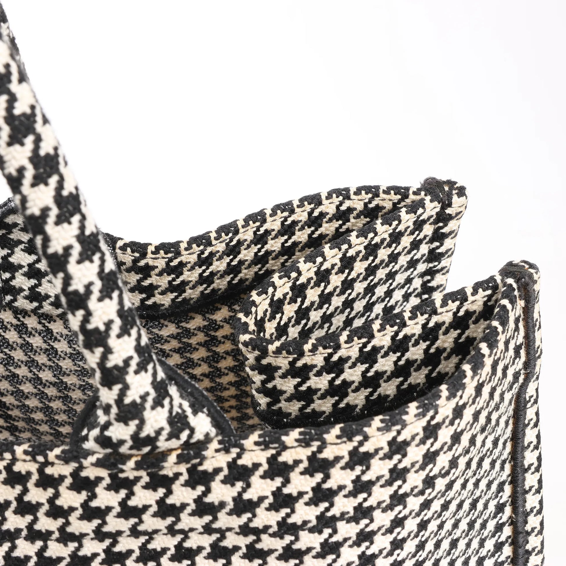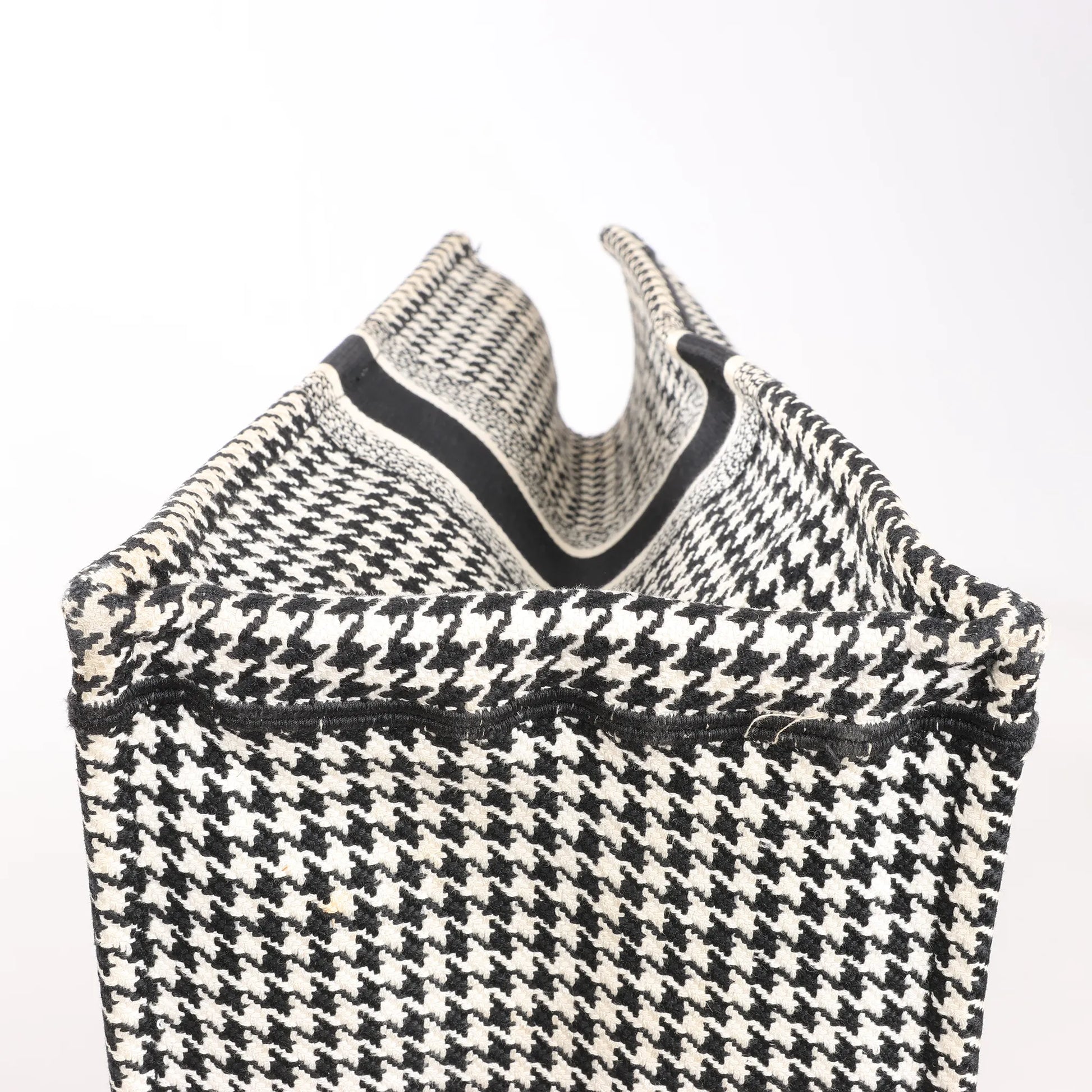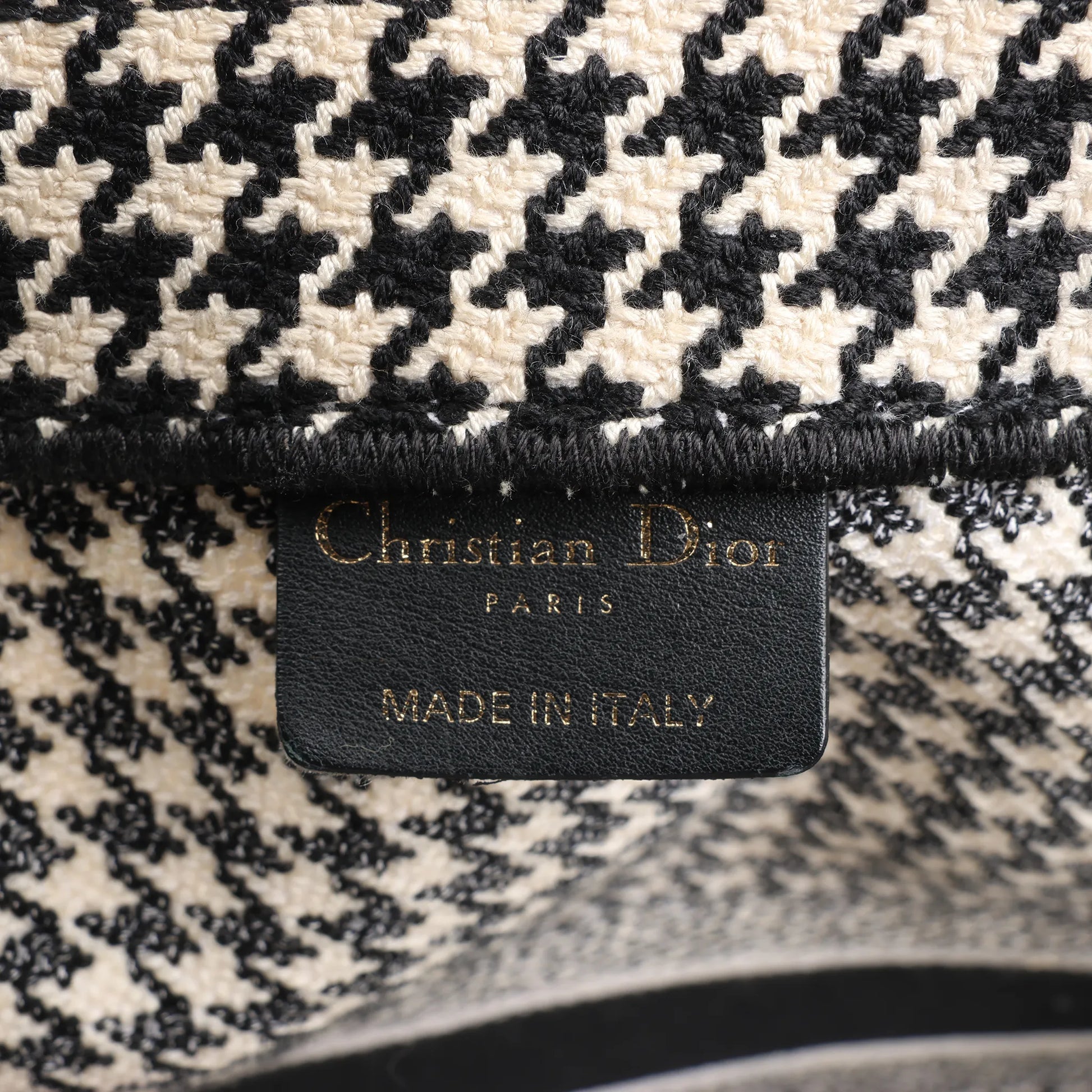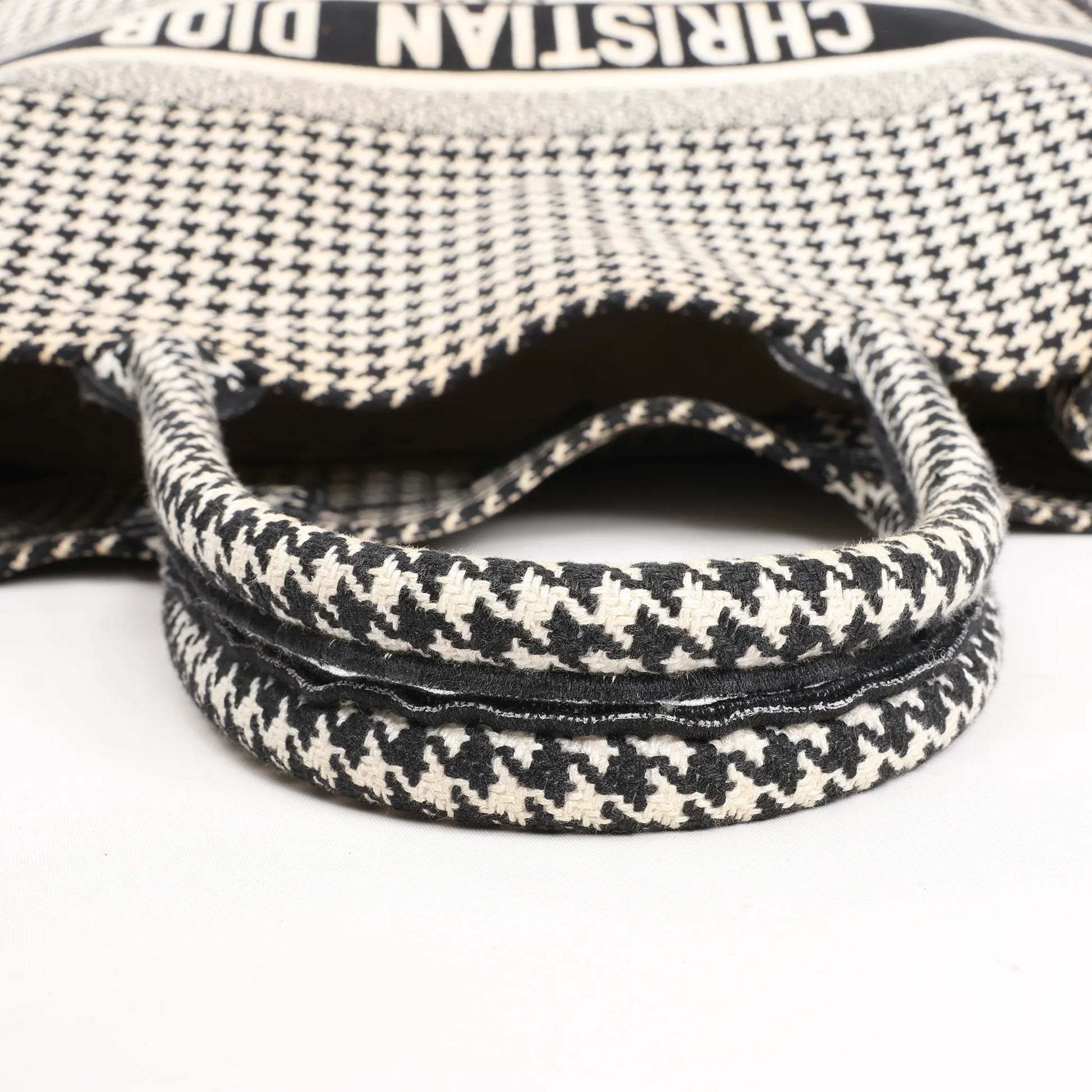 The Dior Book Tote Large in Black x White is a standout piece crafted from embroidered canvas in a timeless houndstooth pattern. Featuring the signature Christian Dior logo, this spacious bag blends elegance with everyday practicality and iconic Parisian flair.