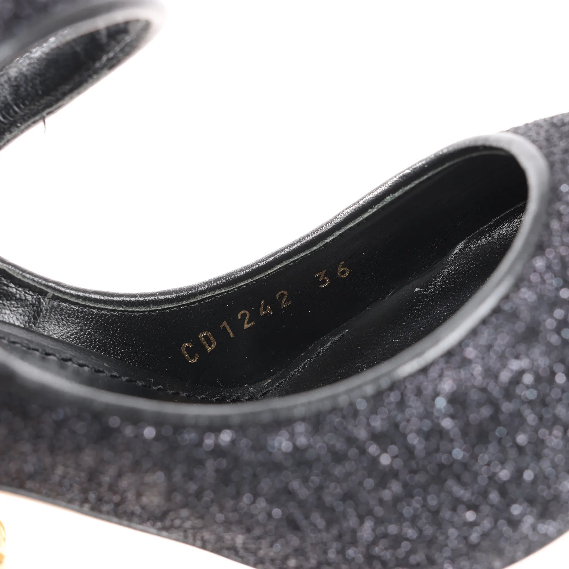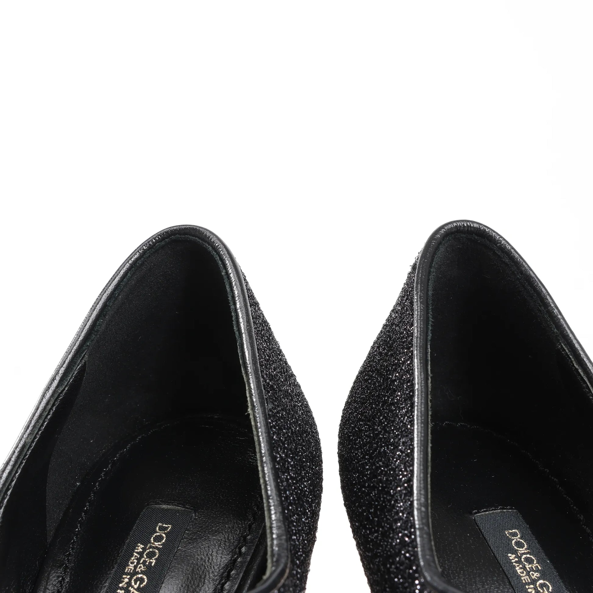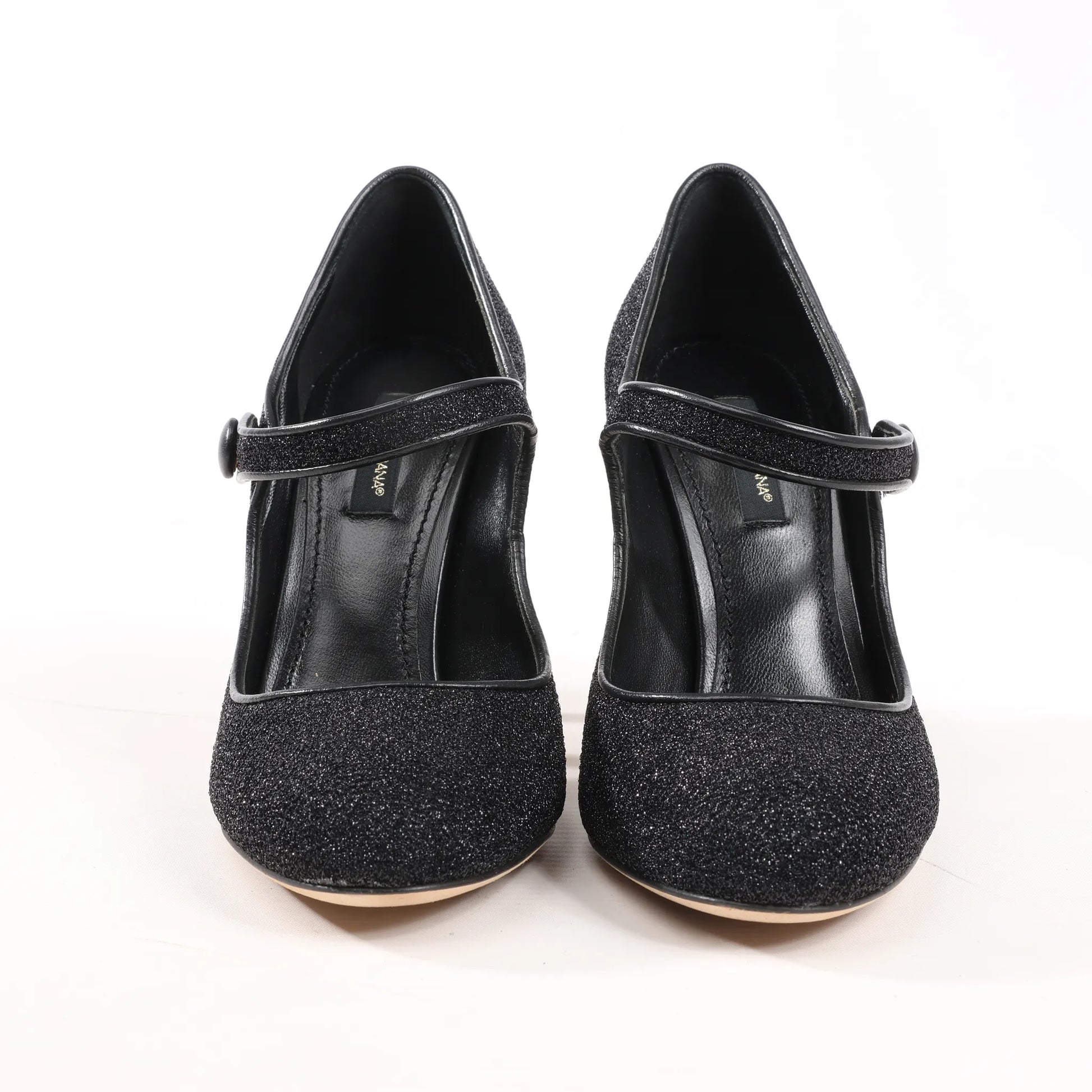 Dolce & Gabbana Cloth x Glitter DG logo Mary Jane Heels Baroque in Black, Size 36 EU