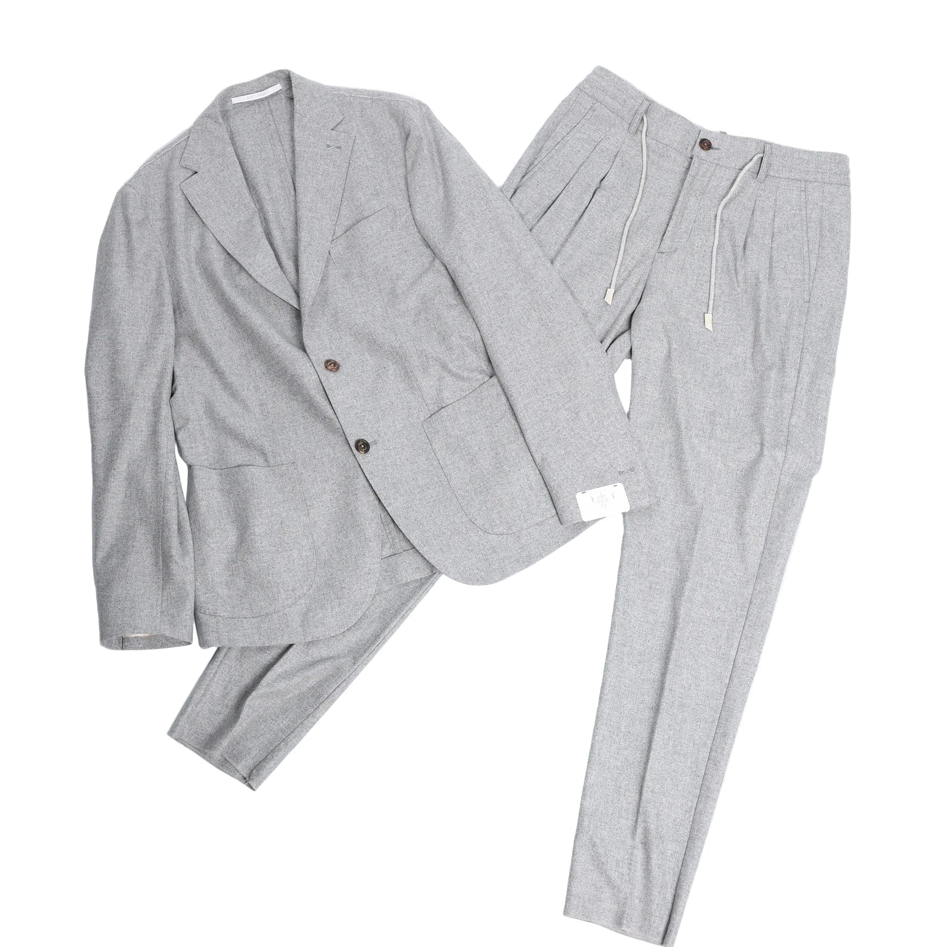 This Single-Breasted Suit in Gray, Size 50 IT, offers a modern blend of comfort and refinement. Tailored from premium wool-blend fabric, it features a two-button jacket with patch pockets and drawstring trousers—perfect for smart-casual sophistication.