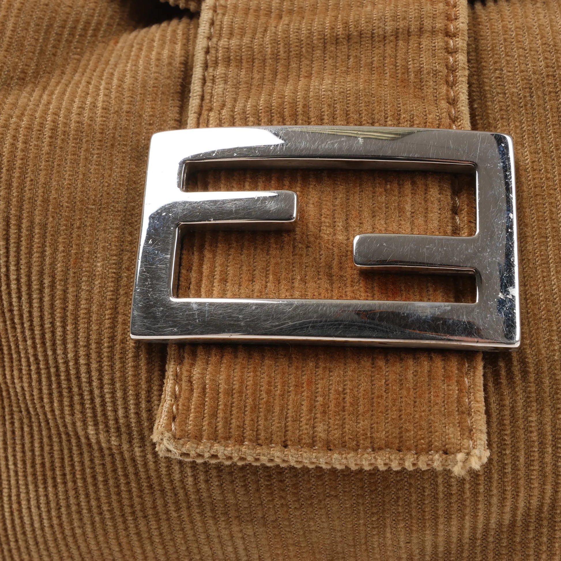 FENDI Corduroy Double Flap Baguette Shoulder Bag in Camel 26426