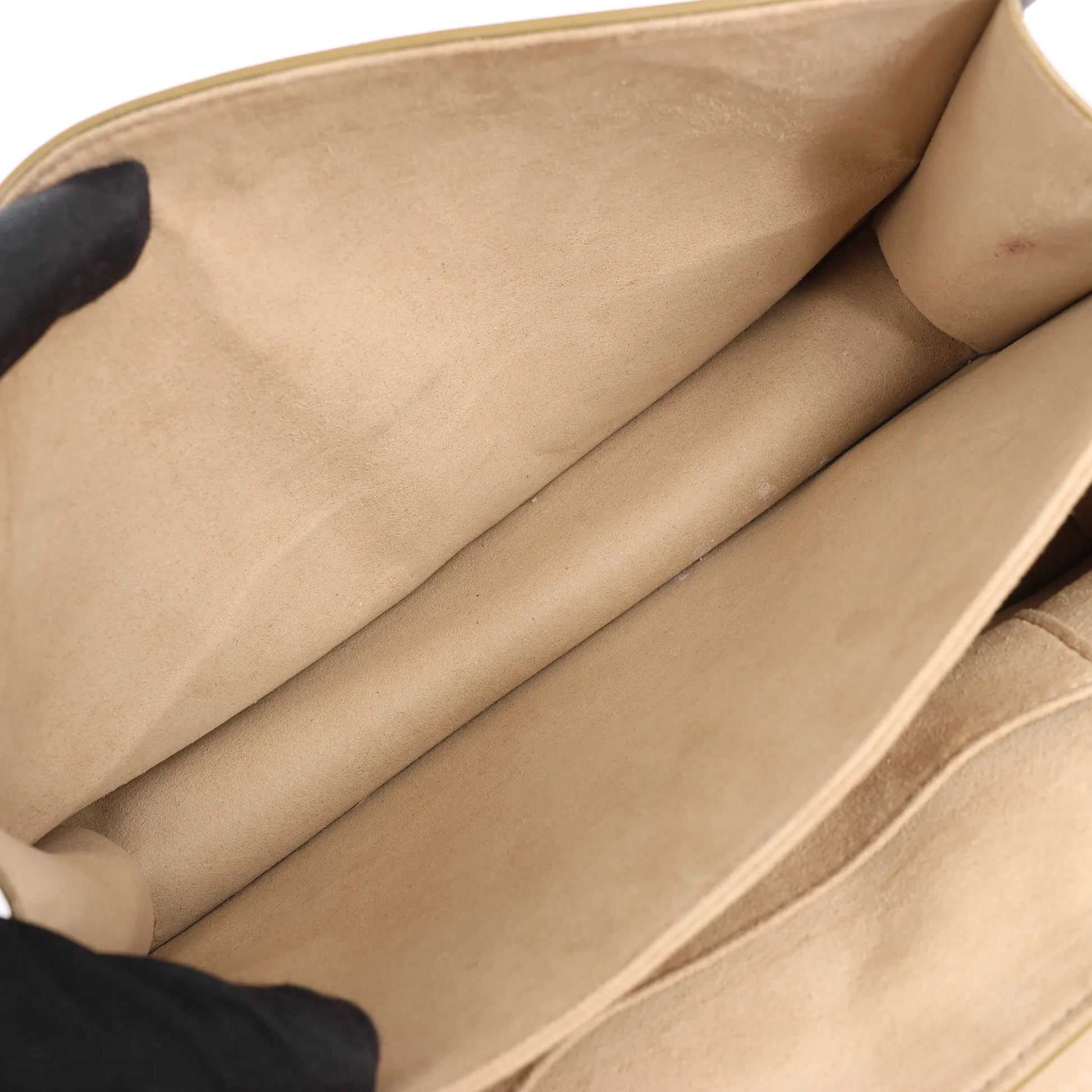 Condition Details: The exterior leather is clean and beautiful in excellent condition with light scratches. The hardware and clasp is crisp and bright, have some scratches and fading. The interior remains good condition, but has stains and rubbings.