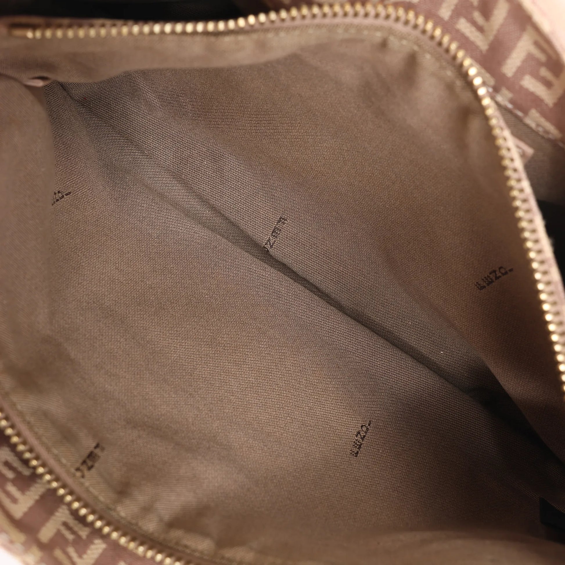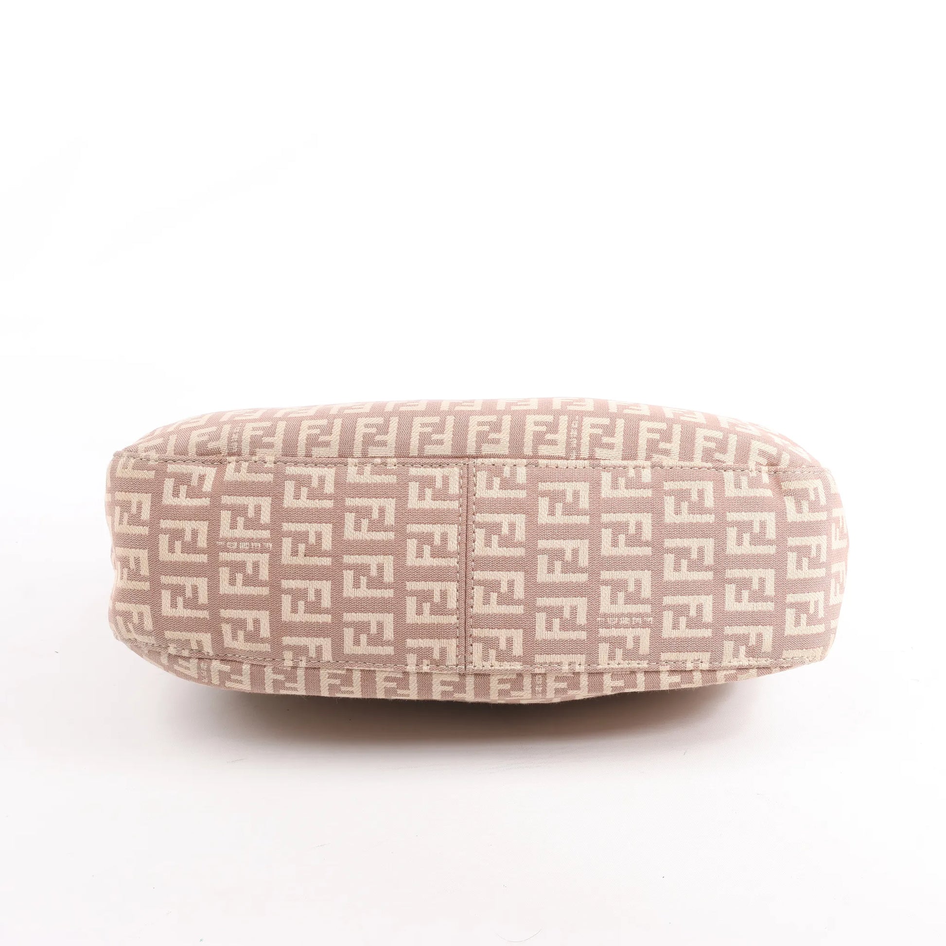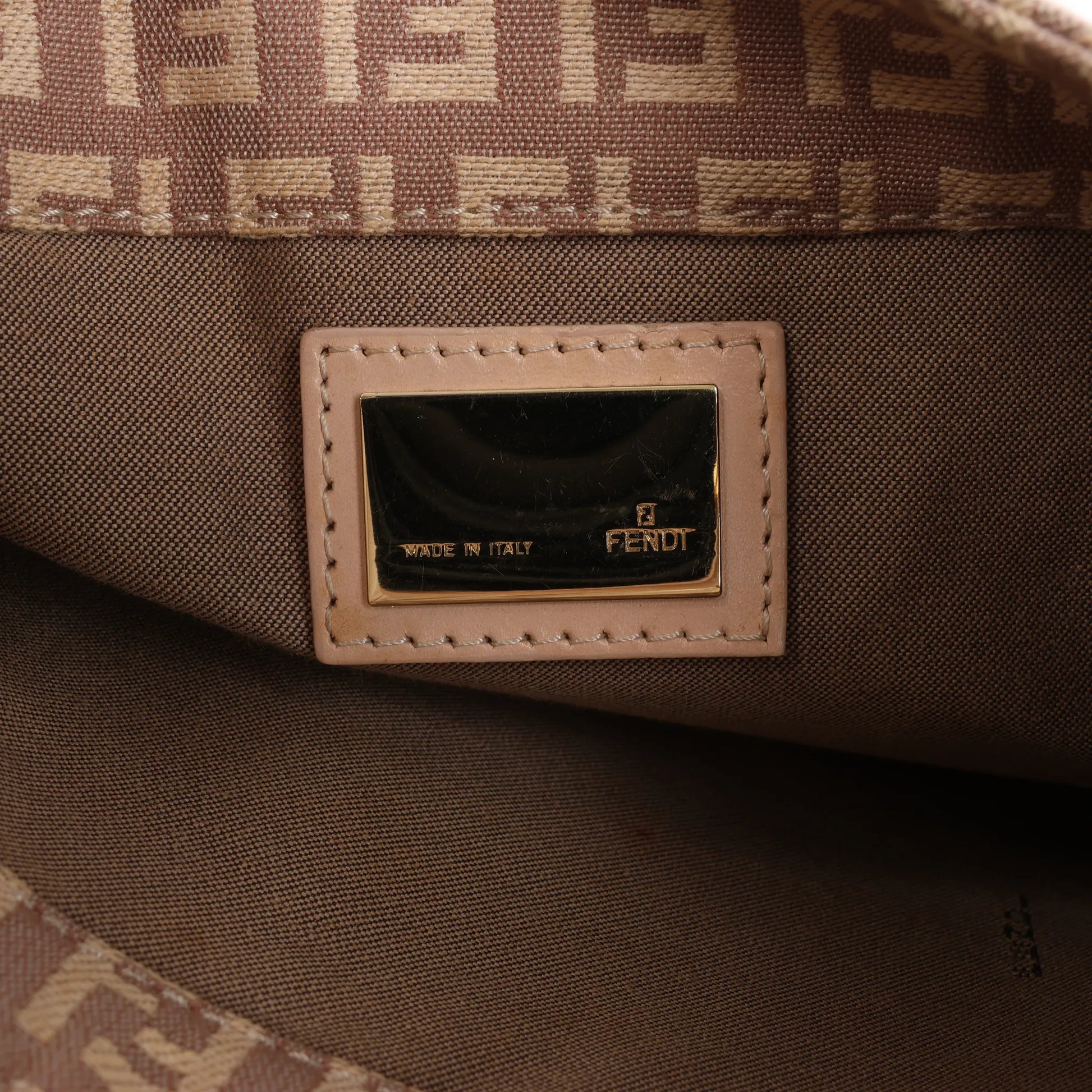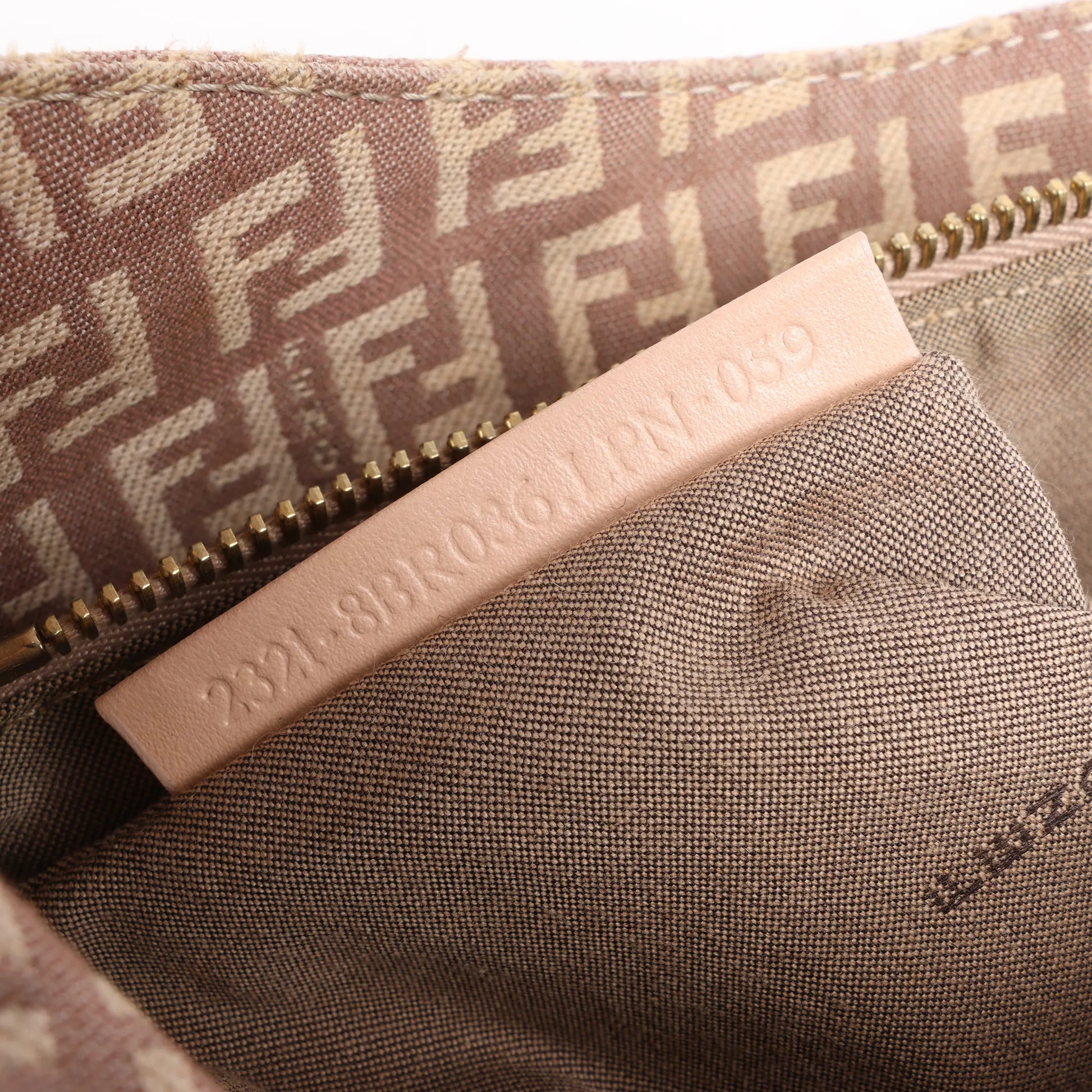 The FENDI Mamma Baguette Zucchino Shoulder Bag in Pink blends iconic Y2K flair with modern femininity. Crafted from signature Zucchino canvas and leather trim, this chic piece features a flap closure with gold-tone FF buckle for a stylish, compact silhouette.