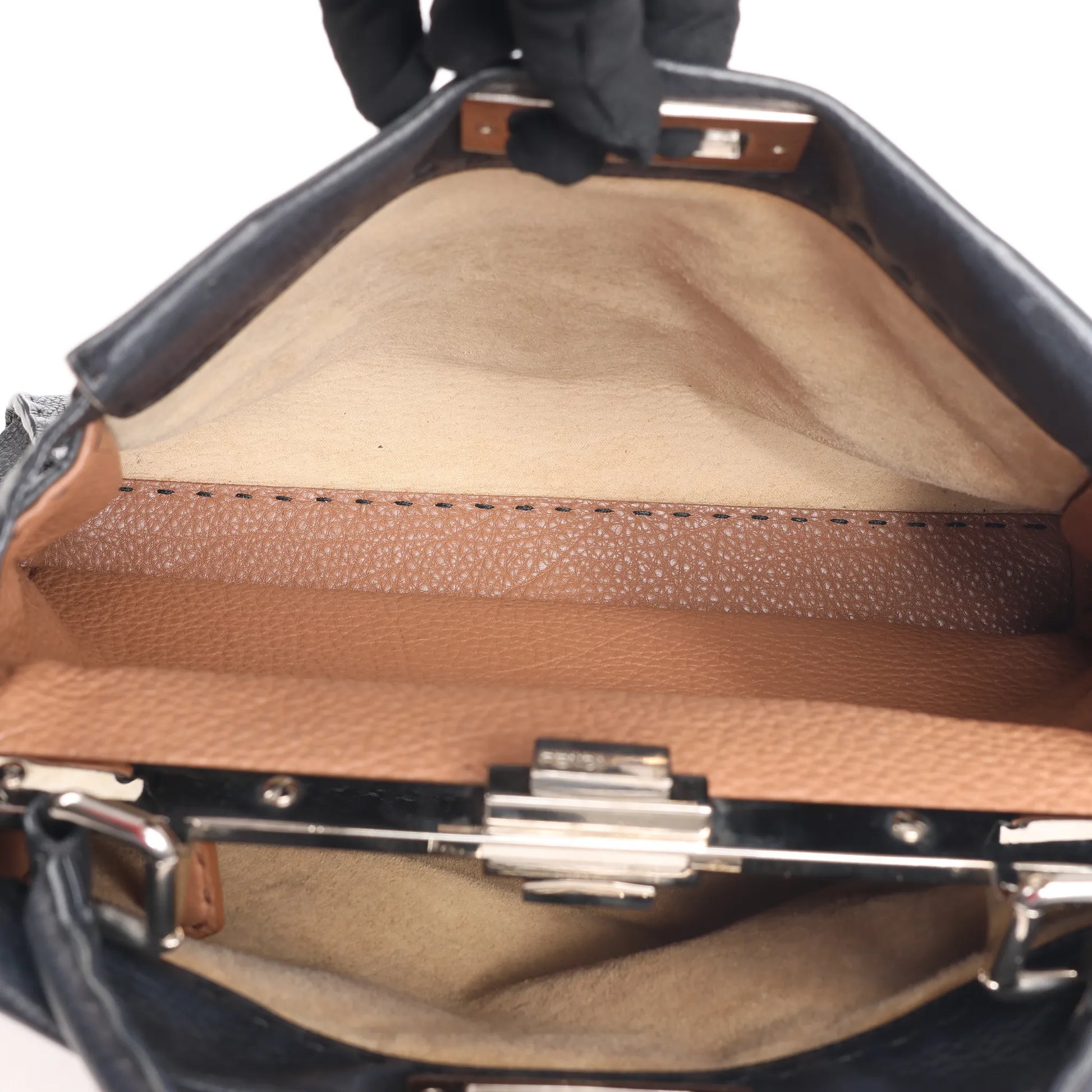 Fendi Peekaboo Regular Selleria Leather Handbag in Black 8BN226