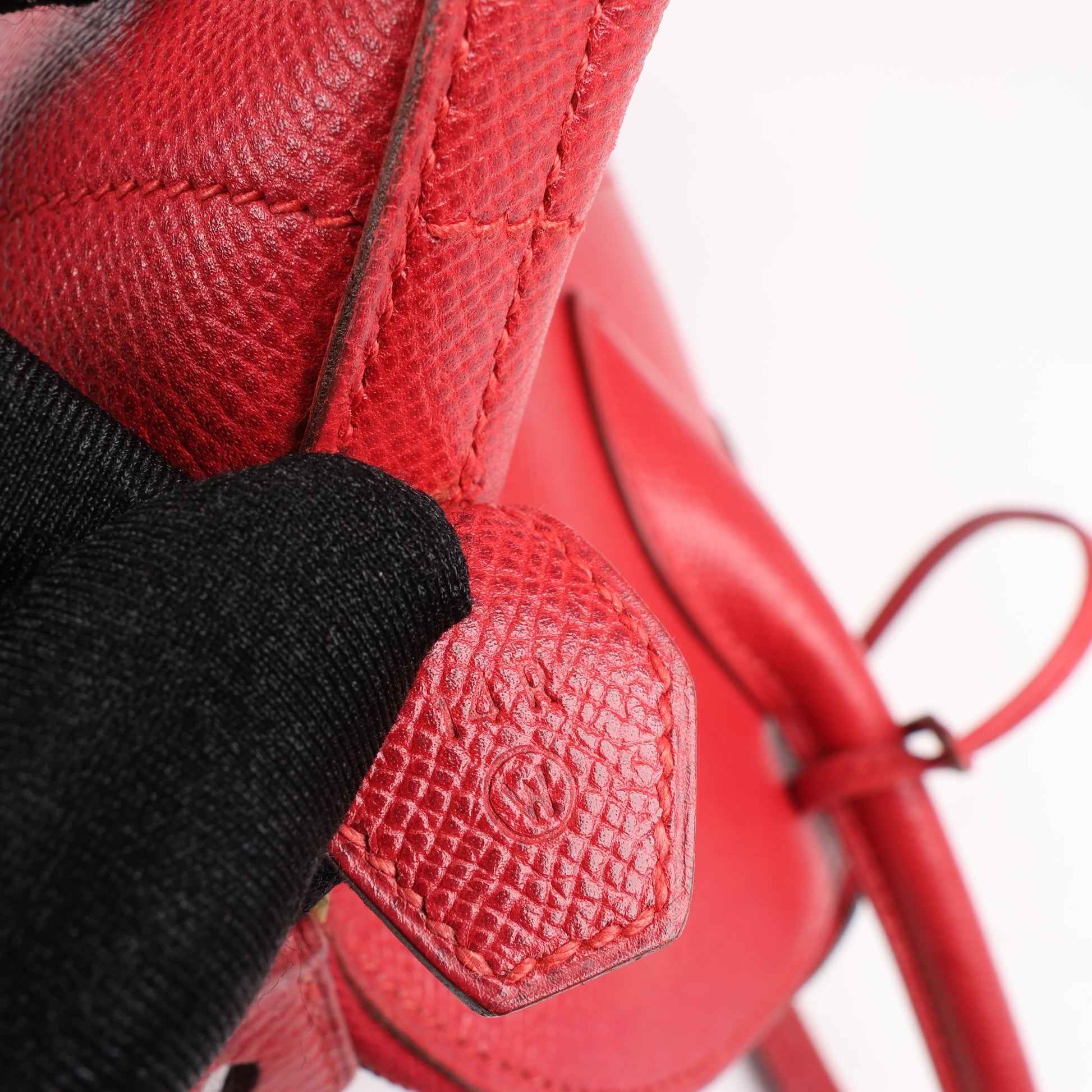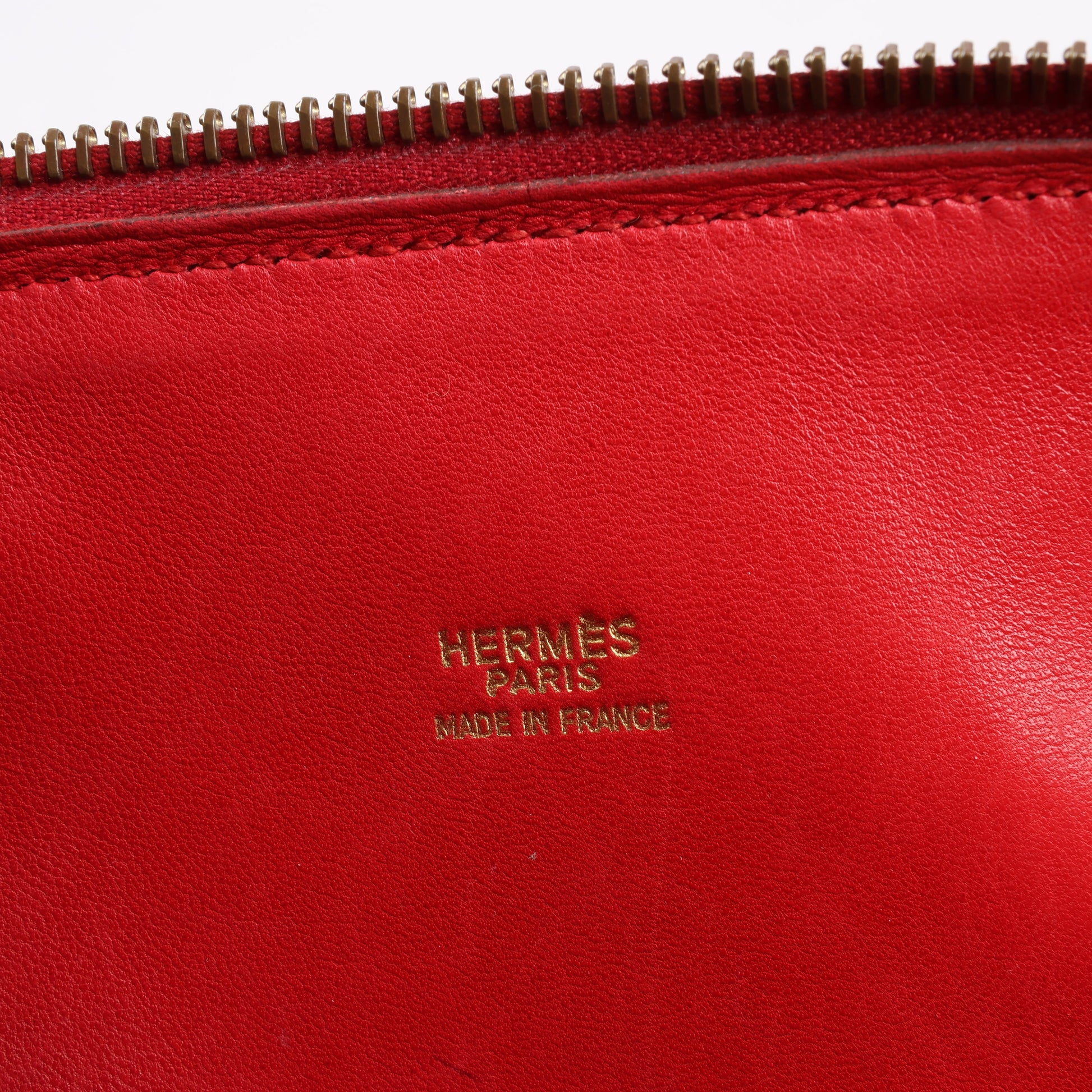 HERMES Bolide 35 Cushbell Rouge vif Gold Metal Fittings Handbag ○W:1993