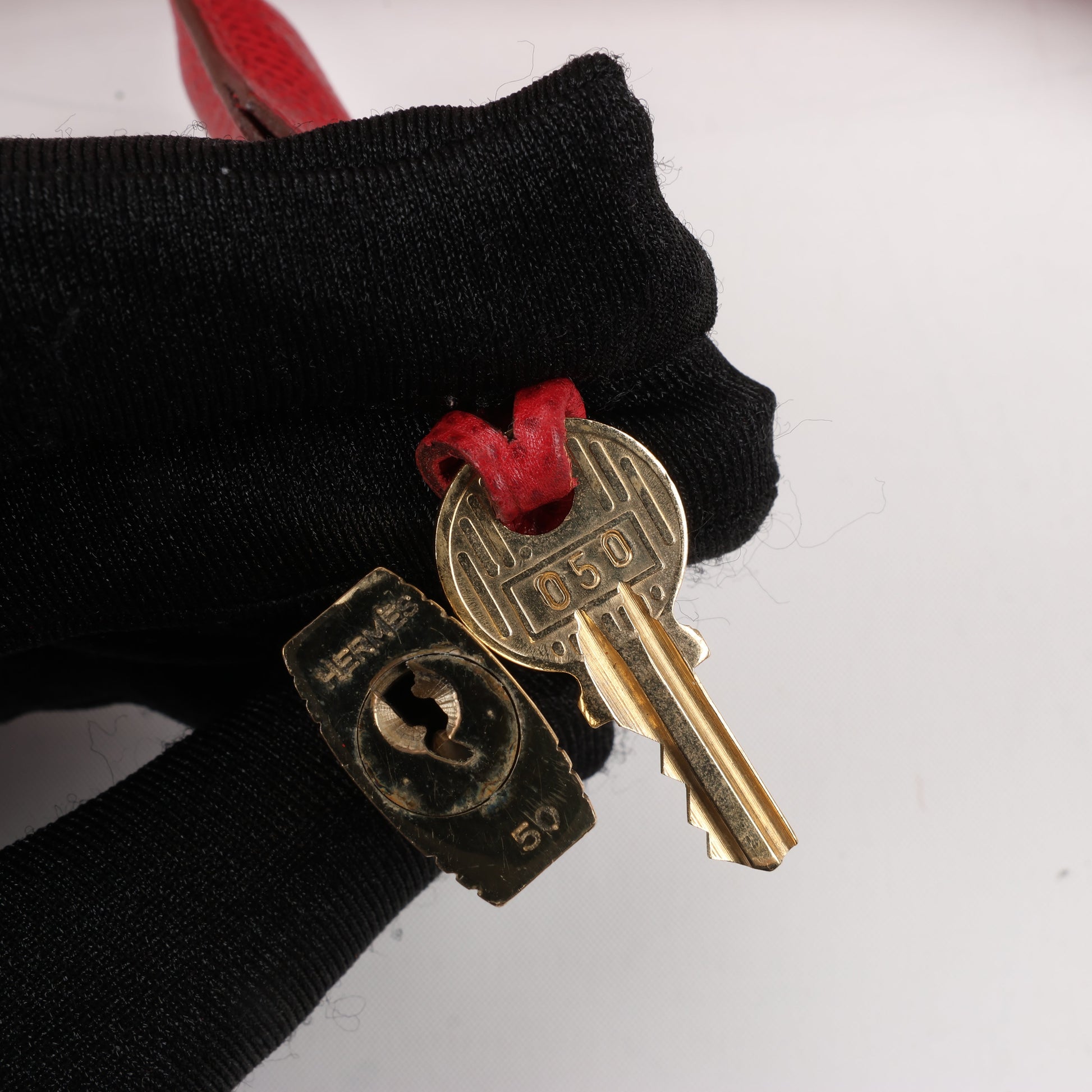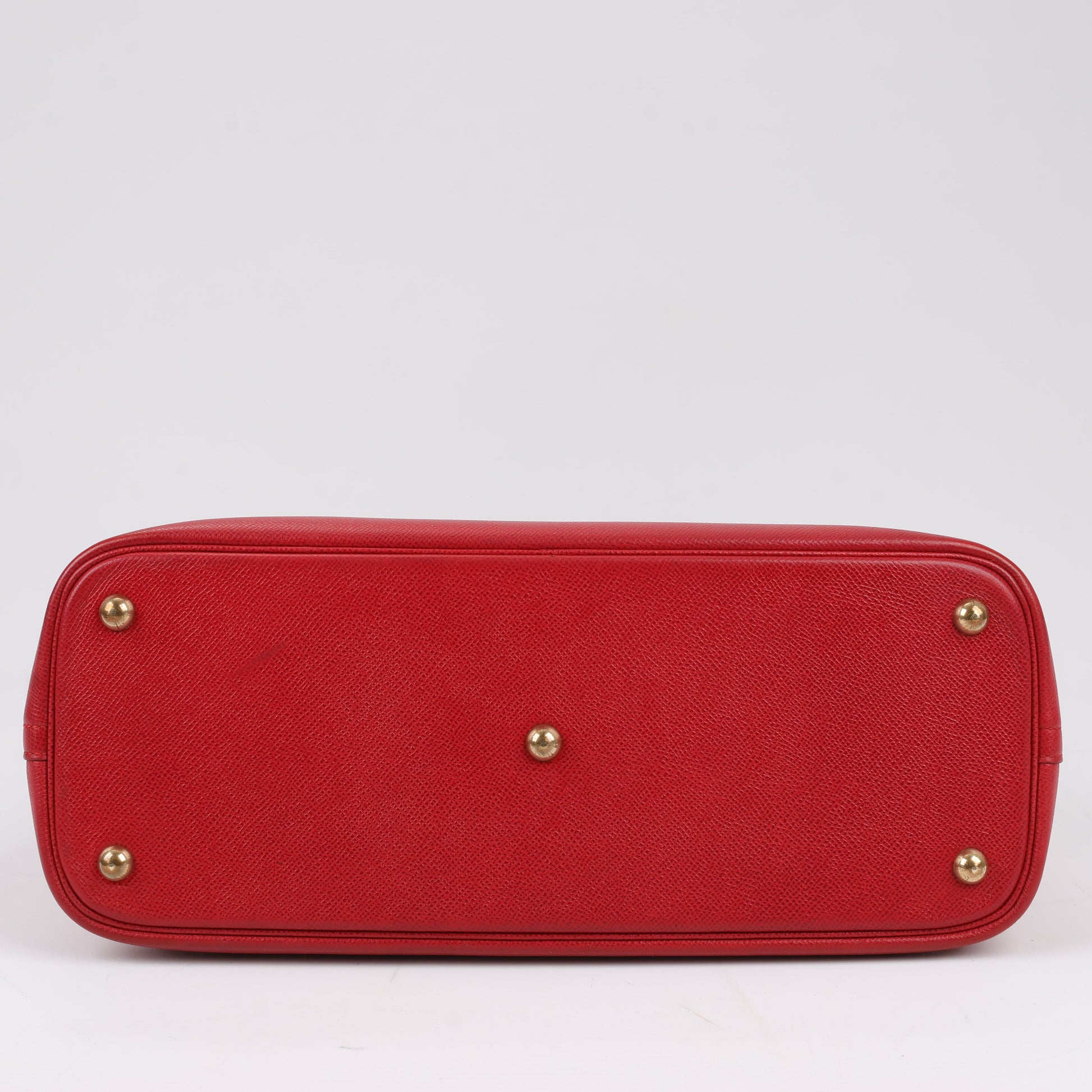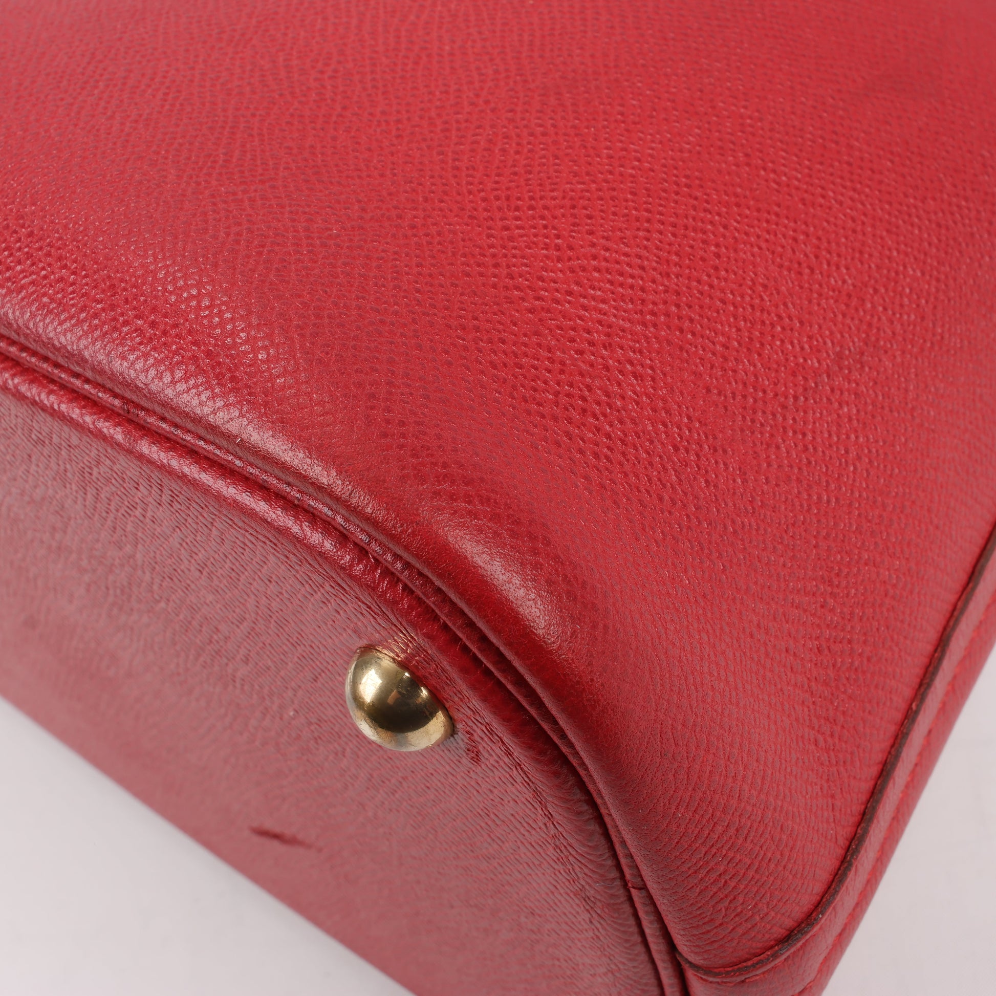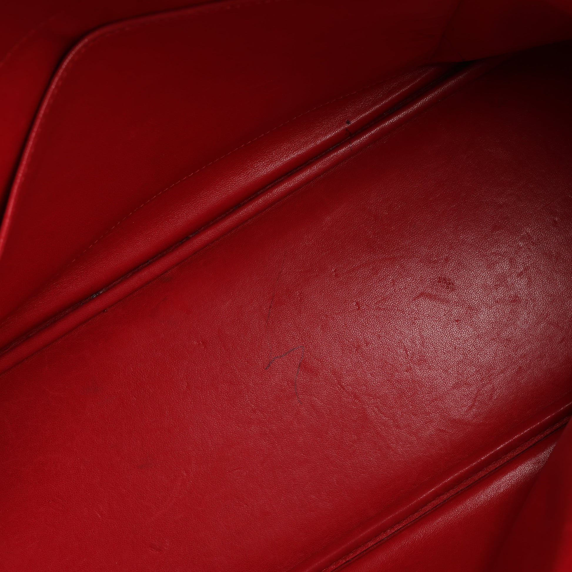 Condition Details: The exterior leather is clean and in very good condition with some light creasing. The handles are clean and firm, but has rubbings. Hardware remains shiny and crisp with hairline scratches. The interior is in very good condition, but has pen stains.