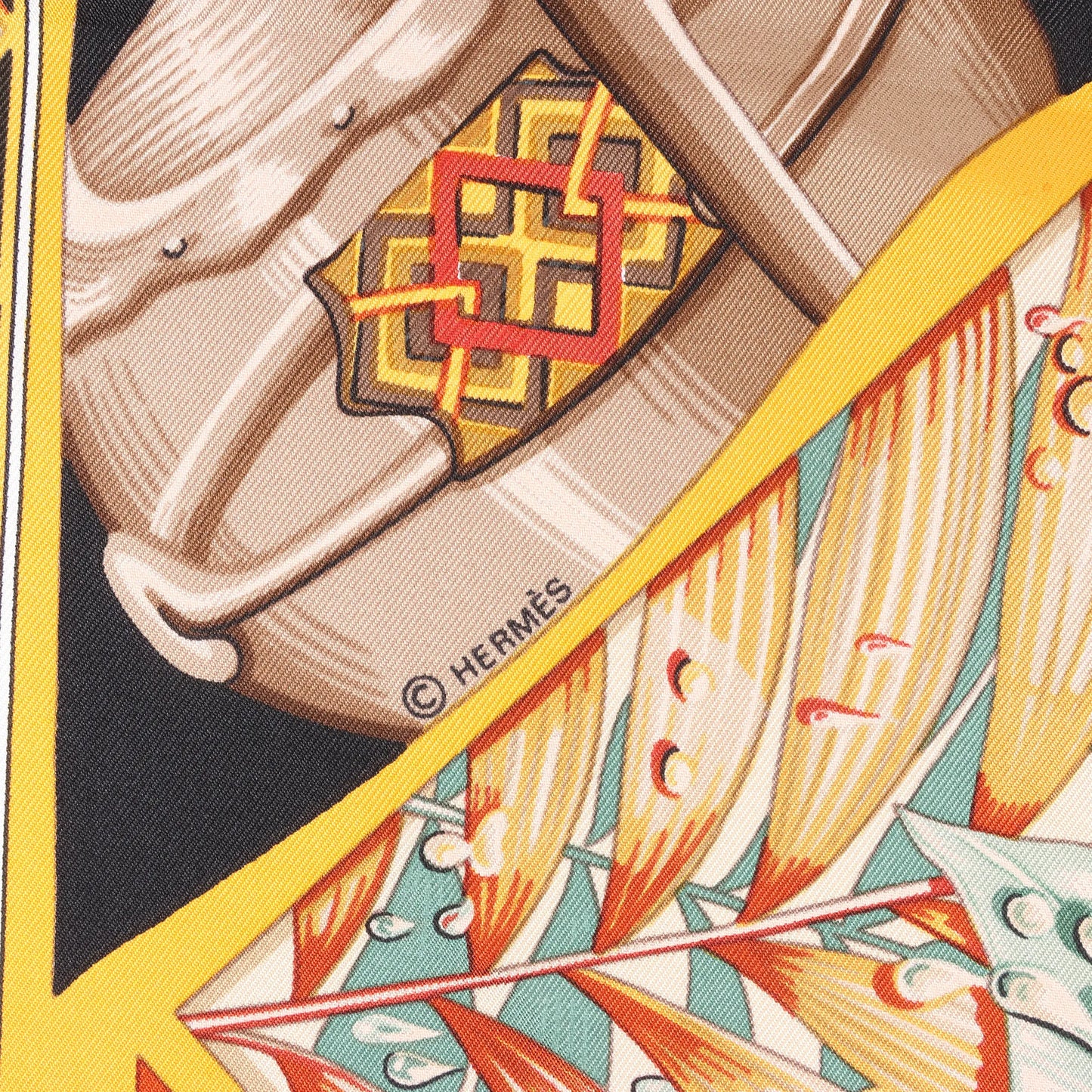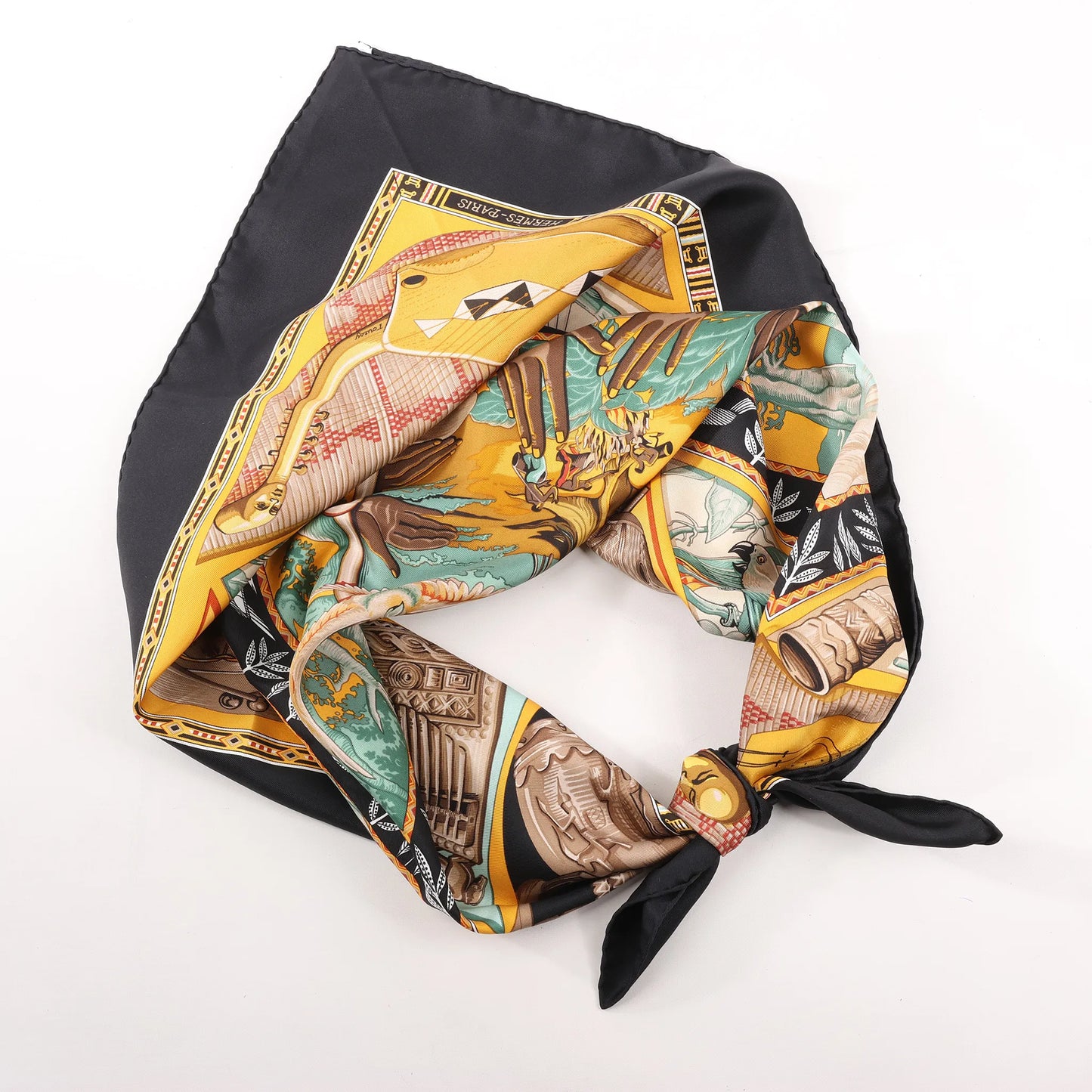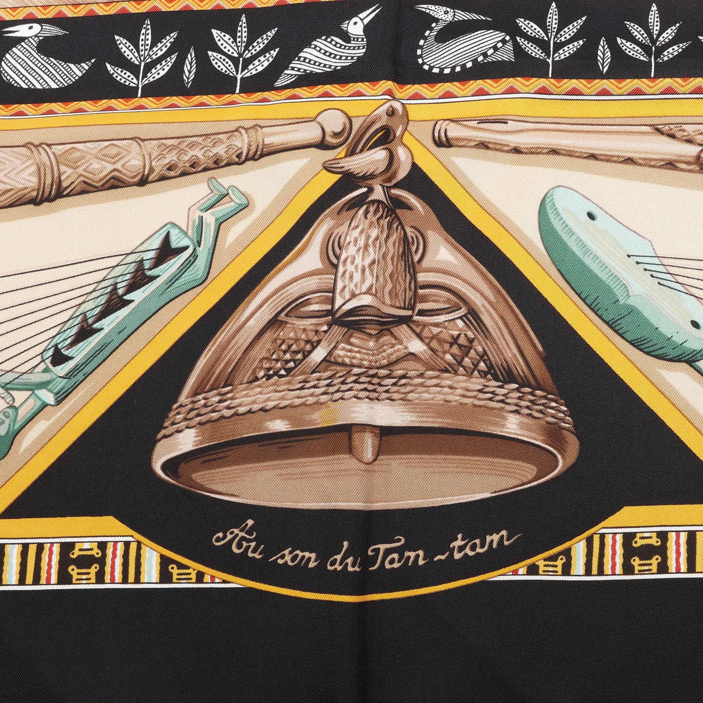 Hermès Carré 90 "Au Son du Tam Tam" Silk handkerchief in Black