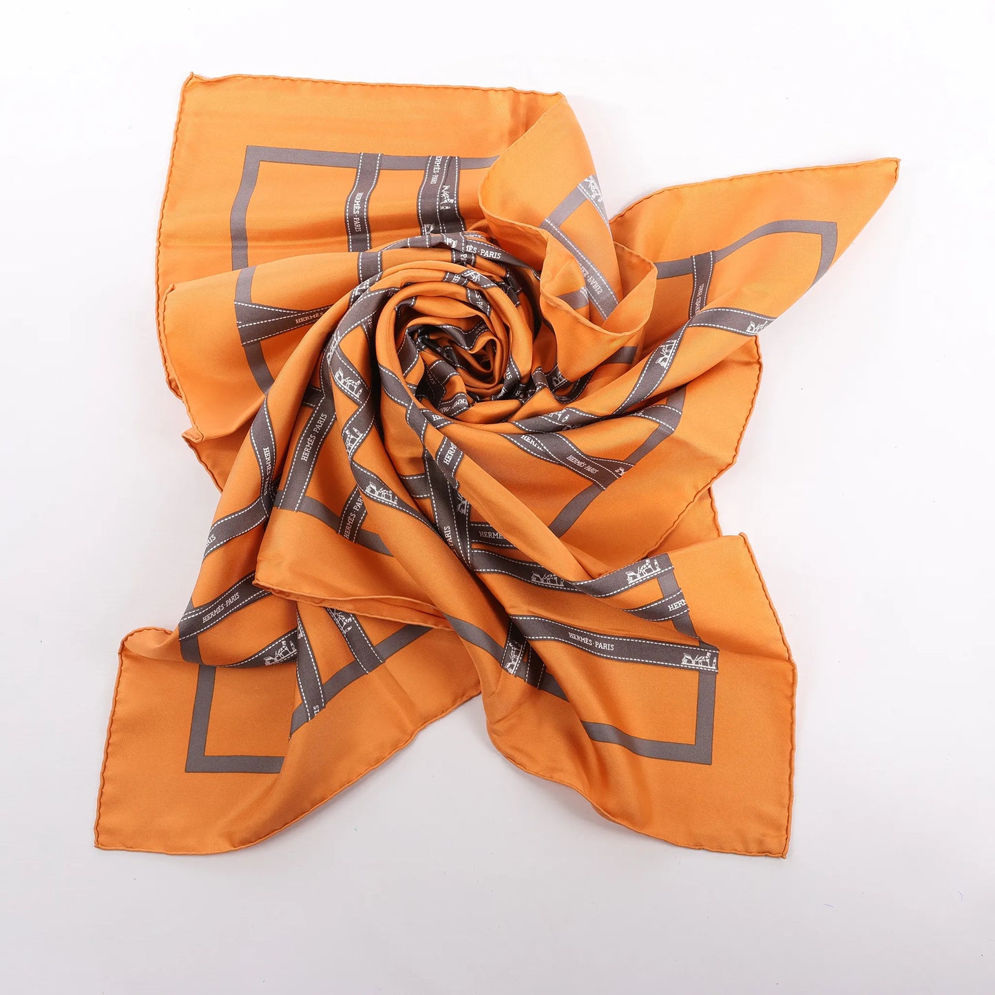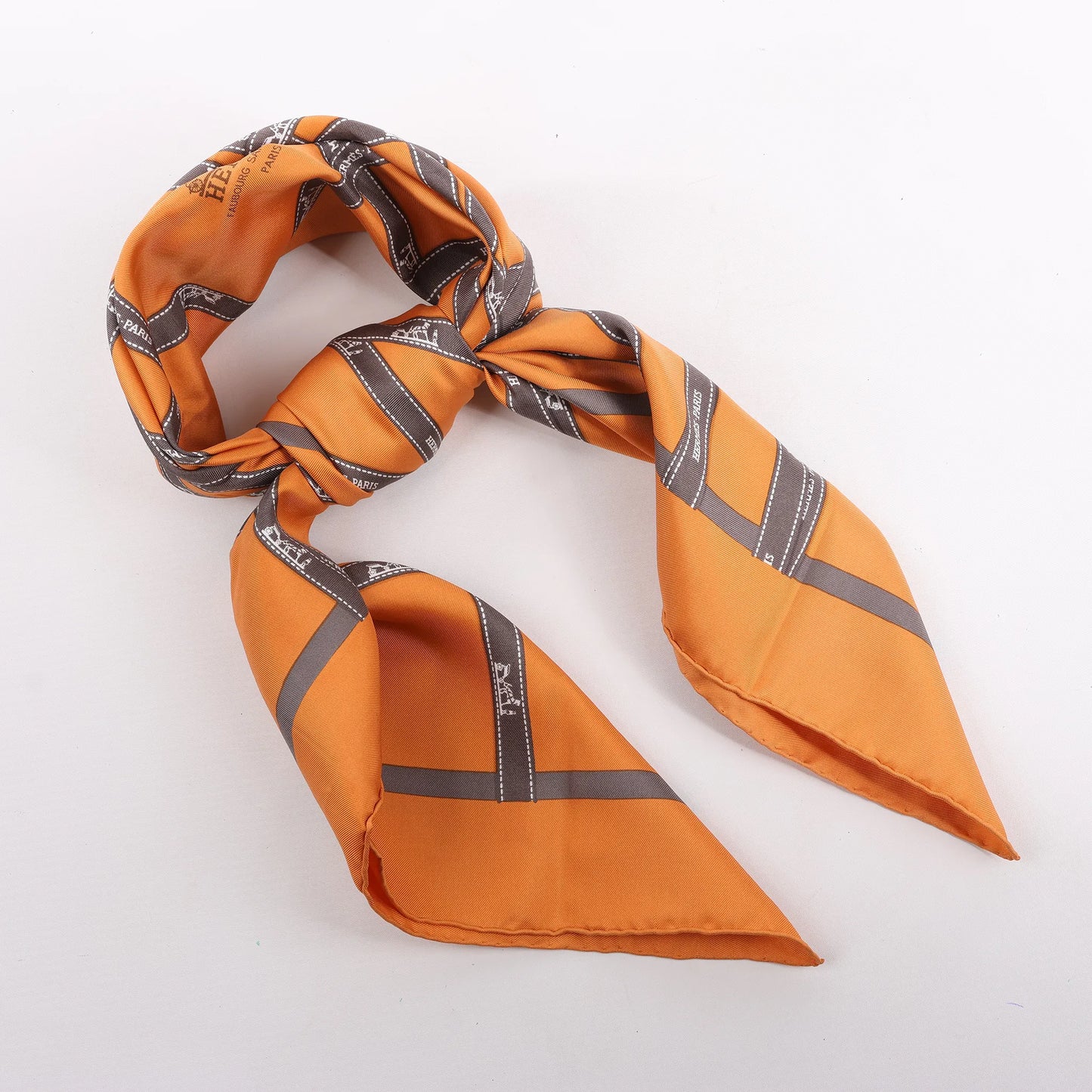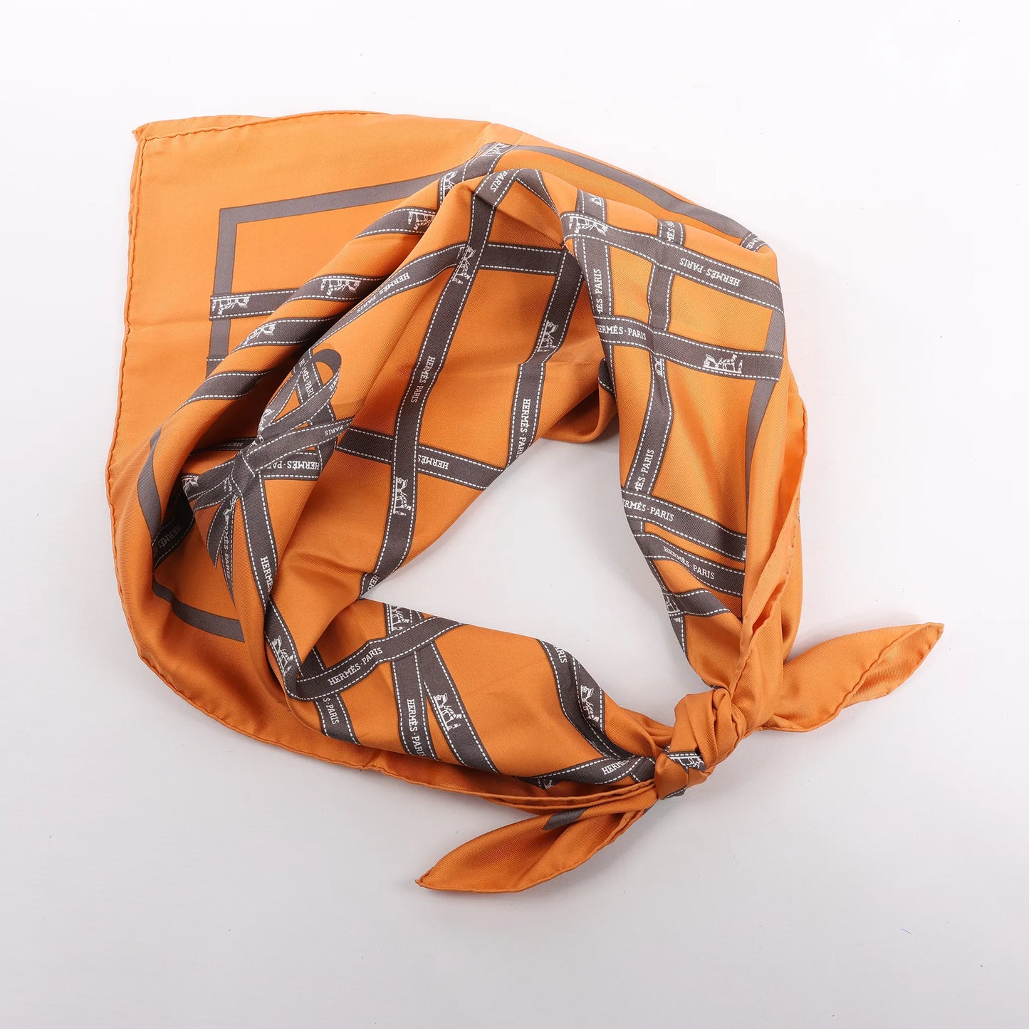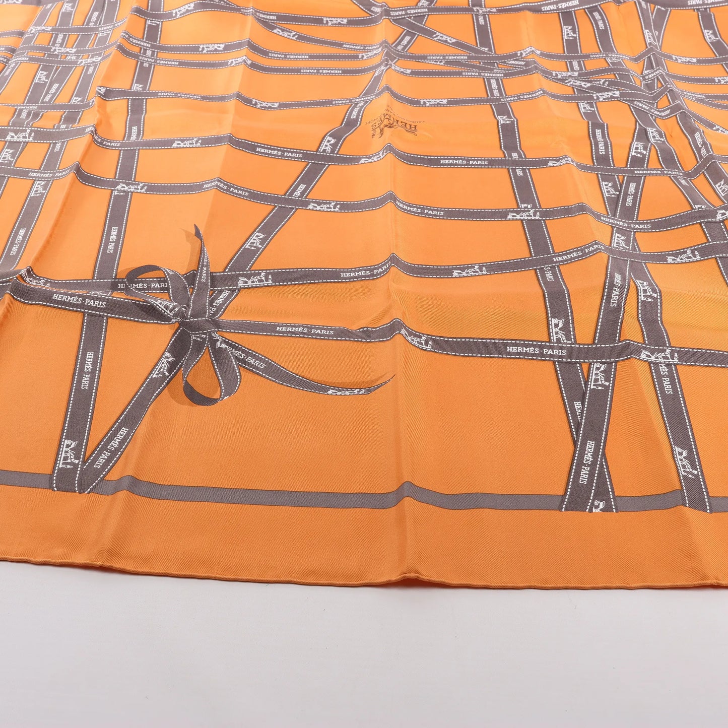 Hermès Carré 90 "Bolduc Ribbon" Silk handkerchief in Orange