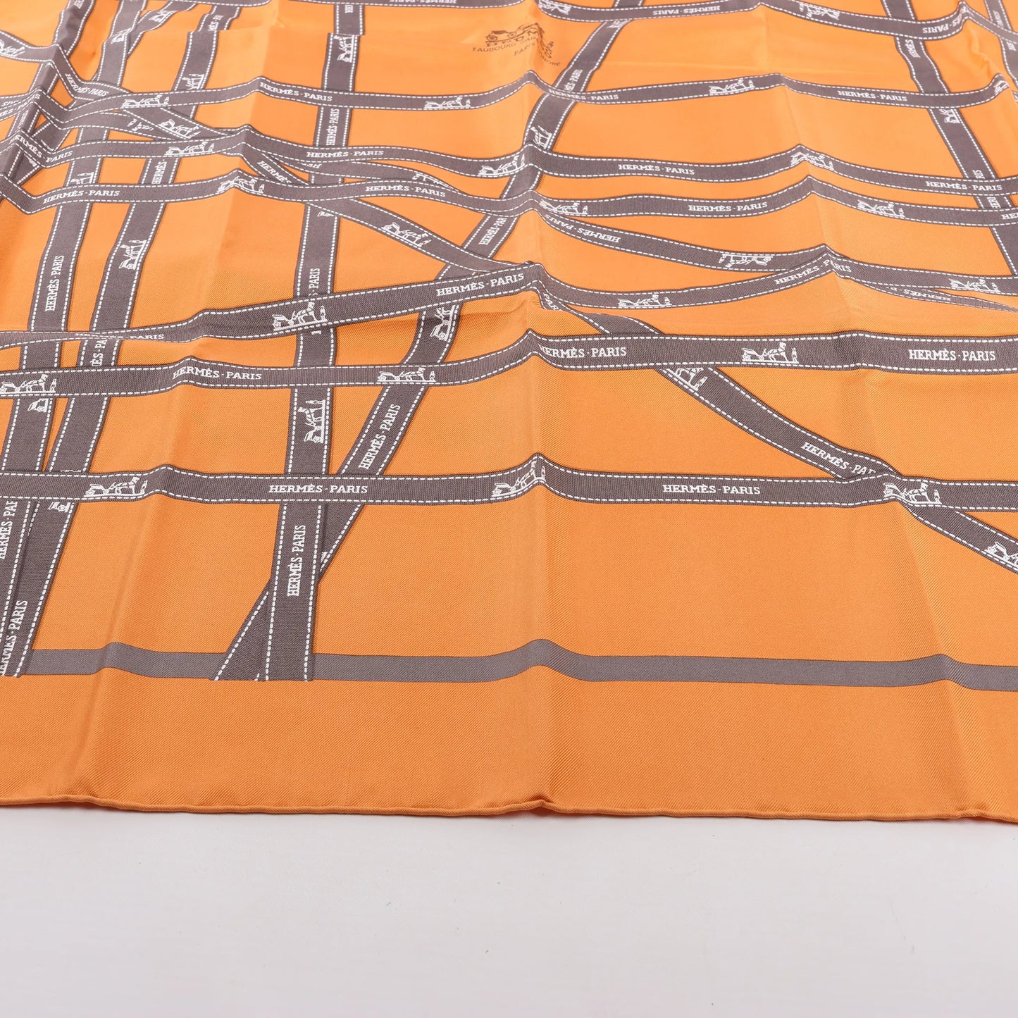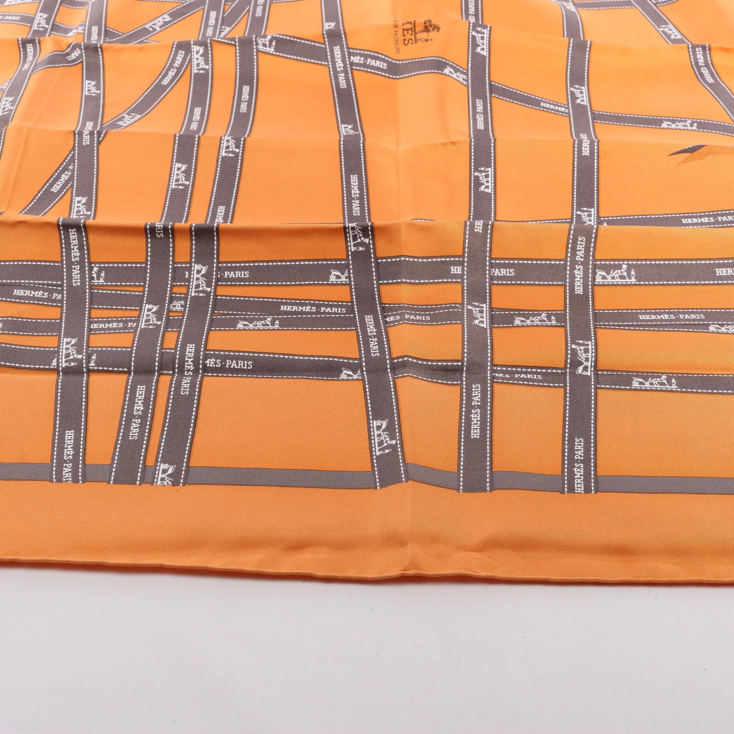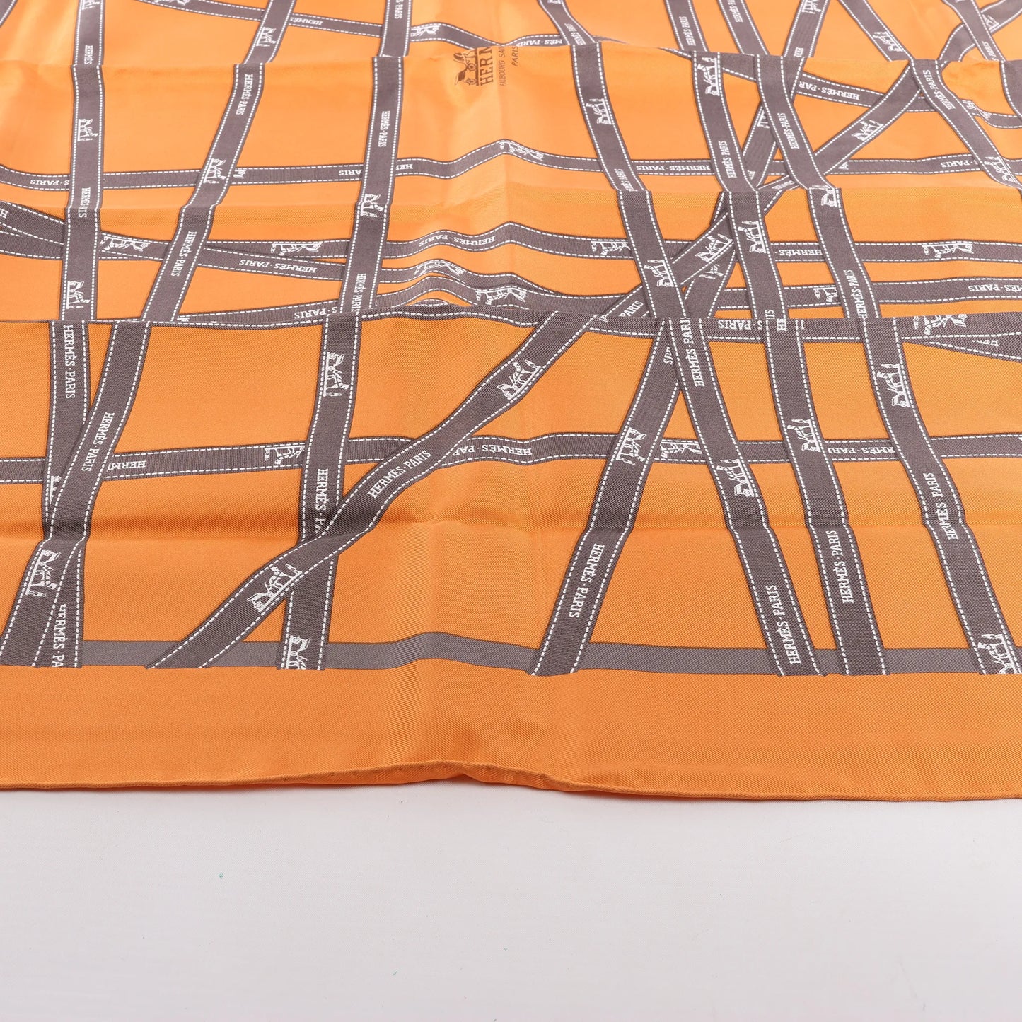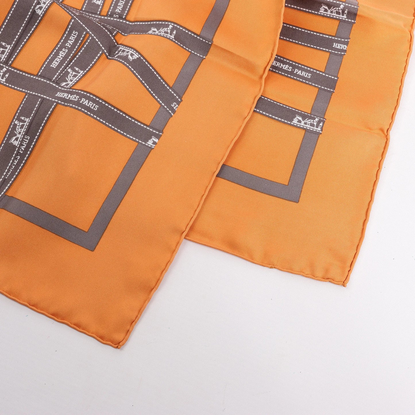 Hermès Carré 90 "Bolduc Ribbon" Silk handkerchief in Orange