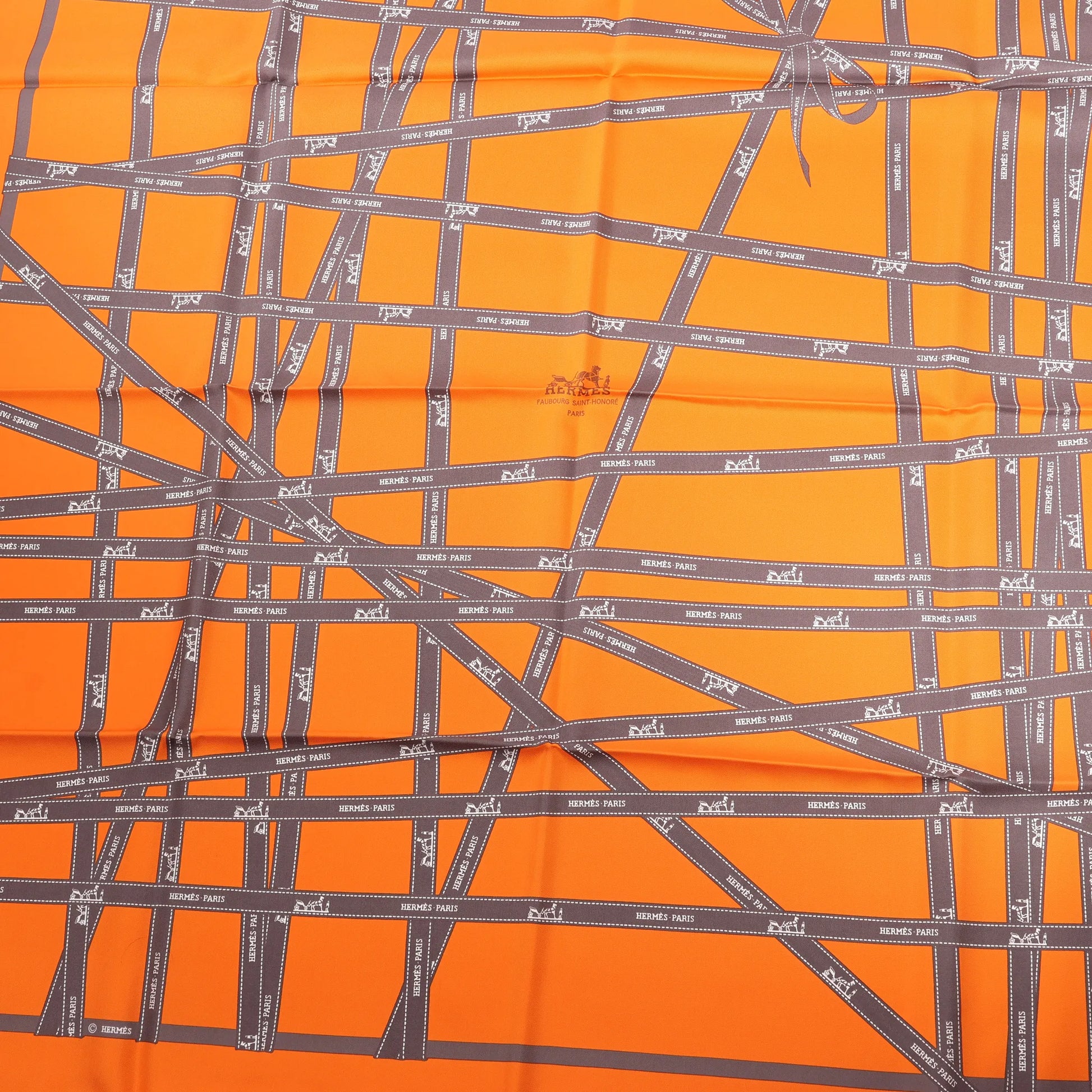 Hermès Carré 90 "Bolduc Ribbon" Silk handkerchief in Orange