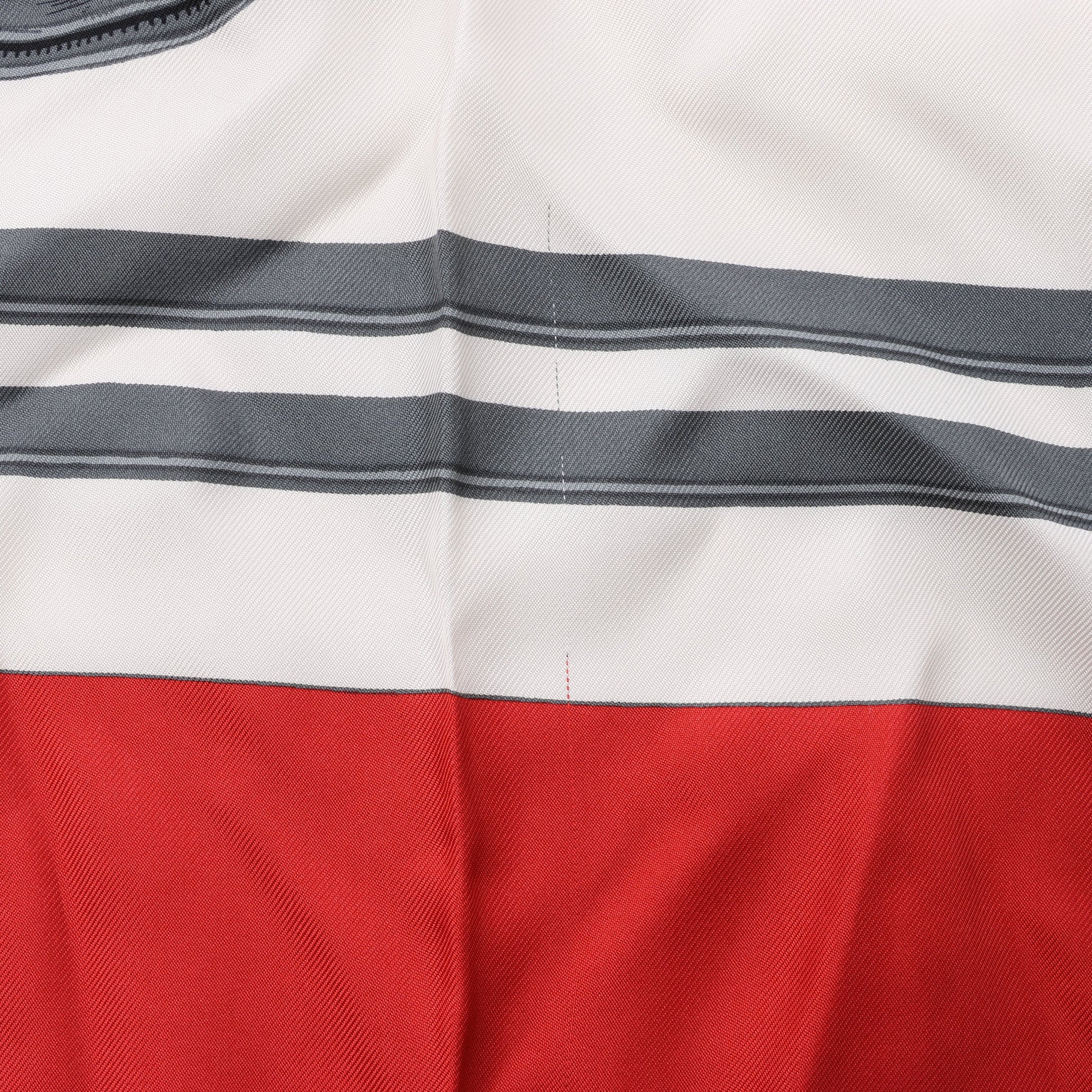 Hermès Carré 90 "Brides de Gala" scarf in red showcases an iconic equestrian motif with ornate bridles in gold and gray tones. Crafted in 100% silk, this timeless classic blends regal elegance with French heritage charm.