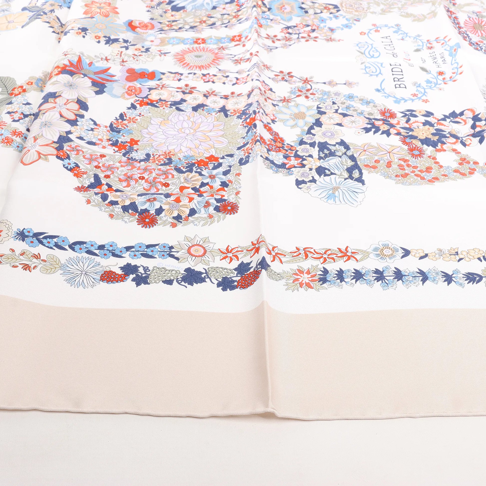 Hermès Carré 90 "BRIDES DE GALA EN FLEURS" Silk handkerchief in Beige
